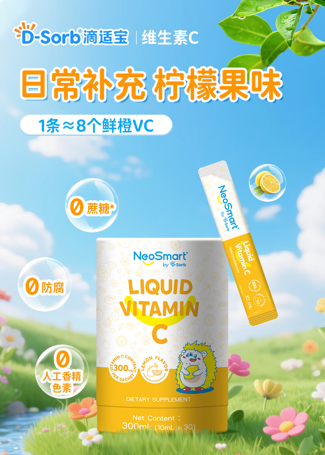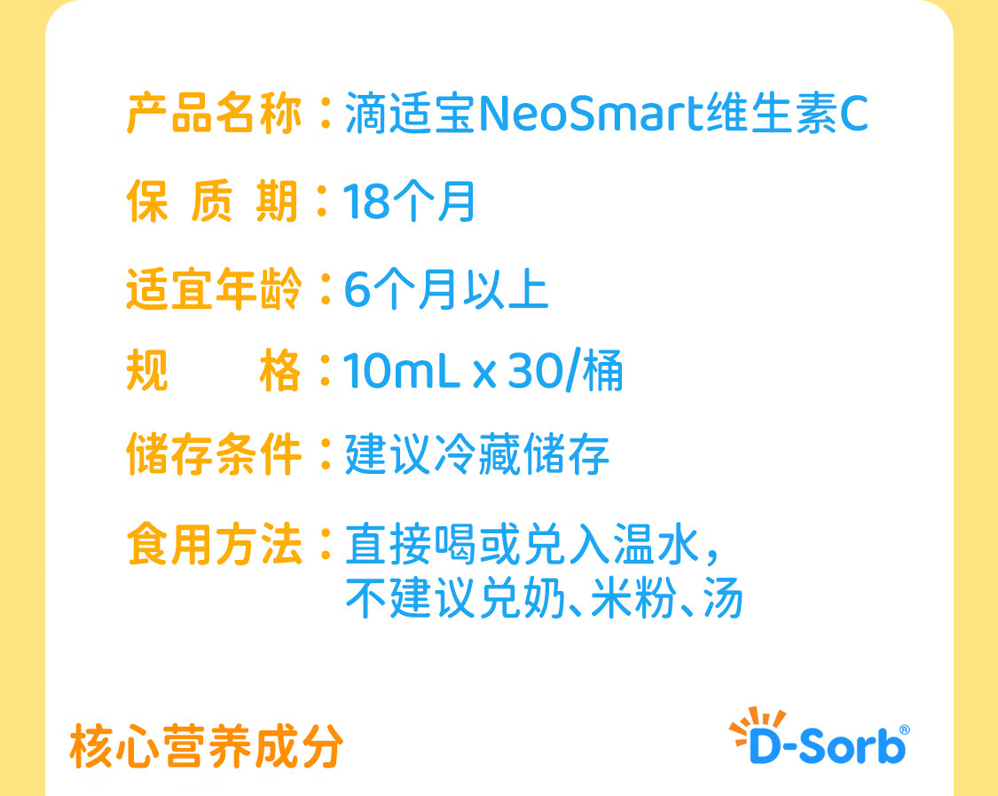 D-Sorb滴适宝 维生素C儿童vc宝宝维生素c婴幼儿抵抗力免疫力 【液体VC条】滴适宝VC 30条*1桶