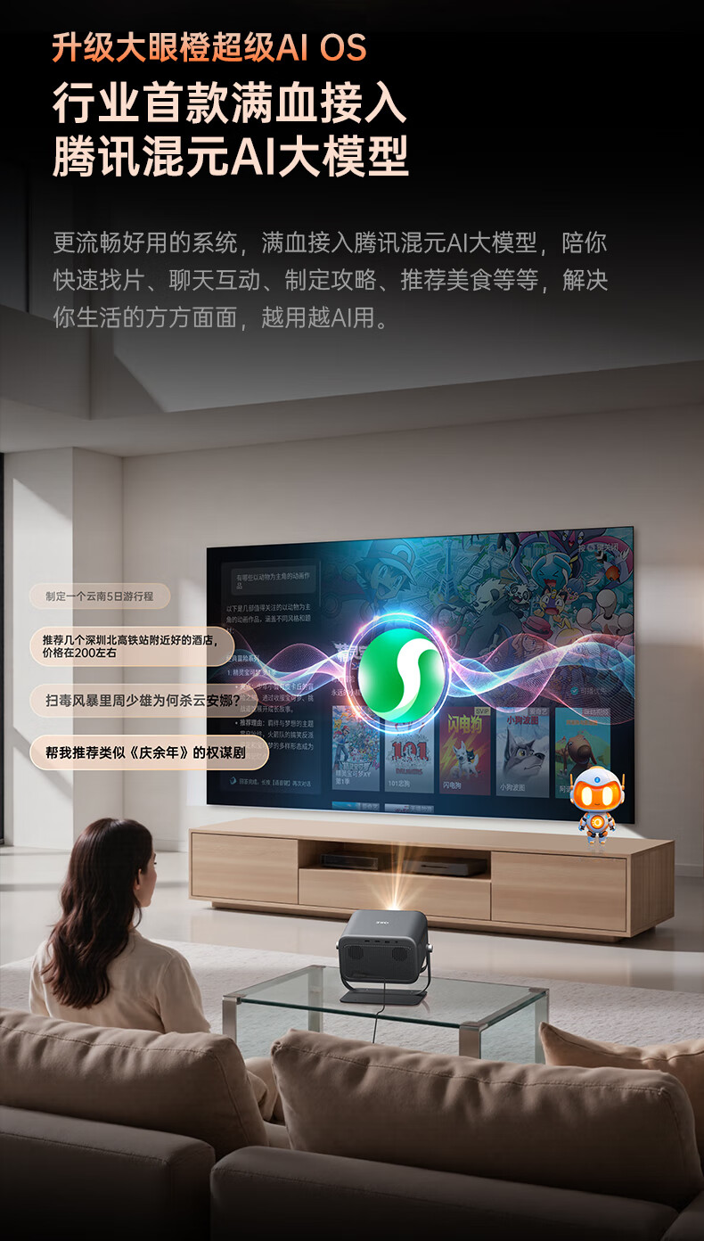大眼橙C3 Ultra云台投影仪家用卧室真1080P便携投影机智能家庭影院 国家补贴(1000CVIA MT9669)9月新品