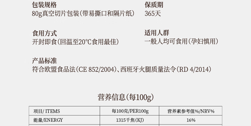 EXCELENCIA IBÉRICA西班牙伊比利亚黑猪火腿白标(前腿)切片80g