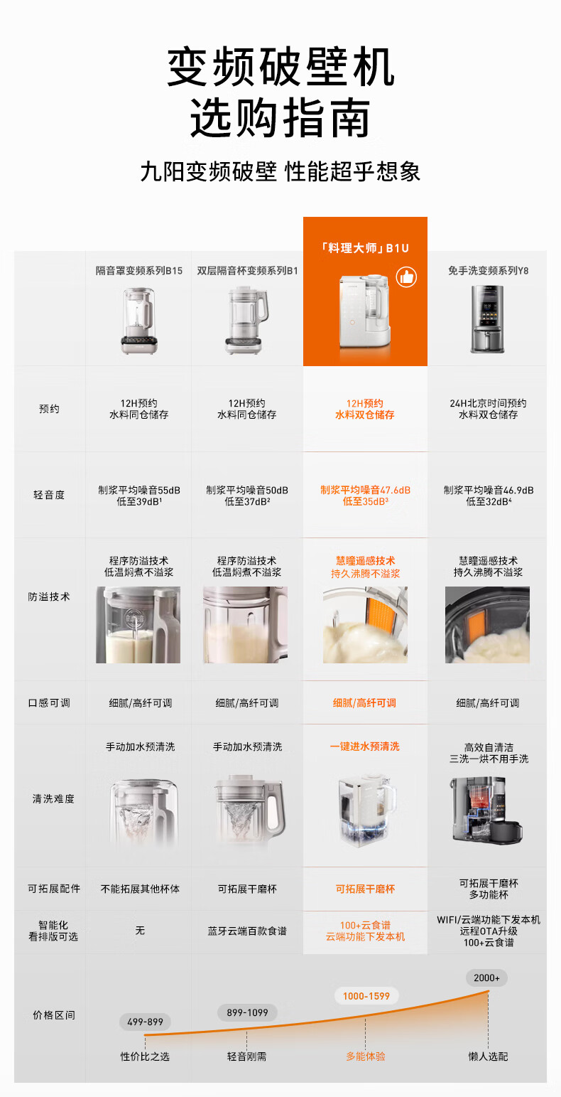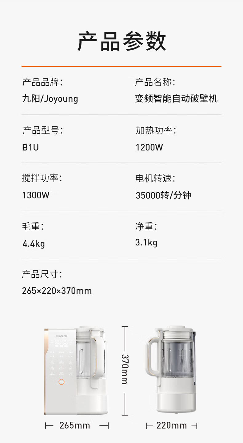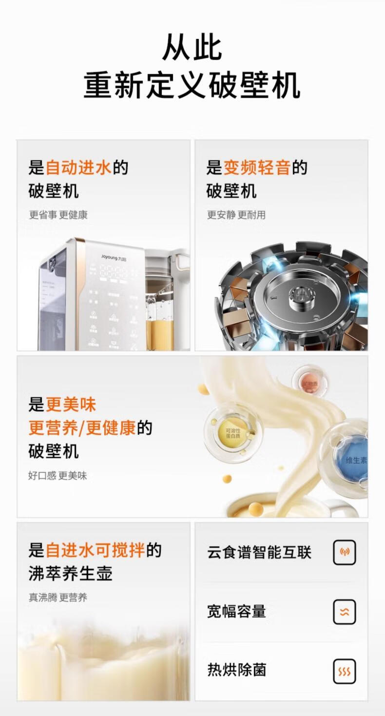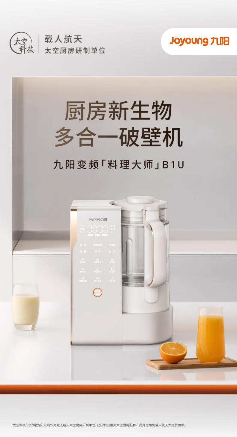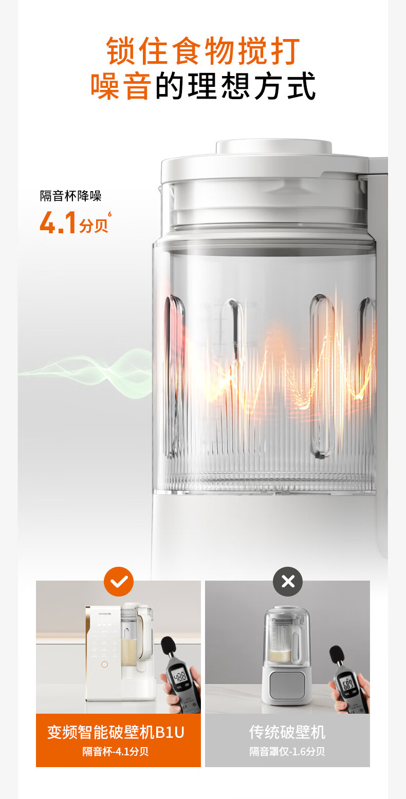 九阳(Joyoung)25年新品【厨房好物】轻音变频破壁机家用全自动水箱榨汁豆浆机1.75L降噪料理大师 B1U国家补贴