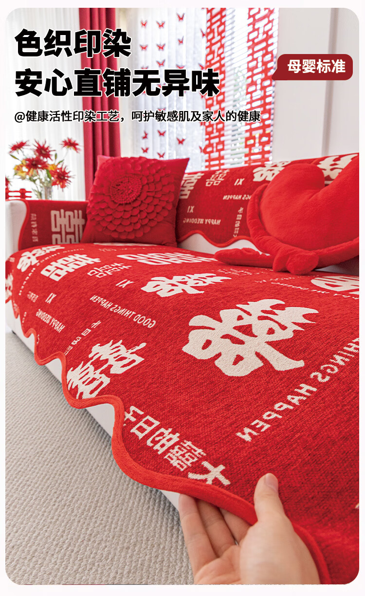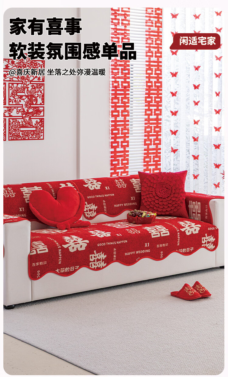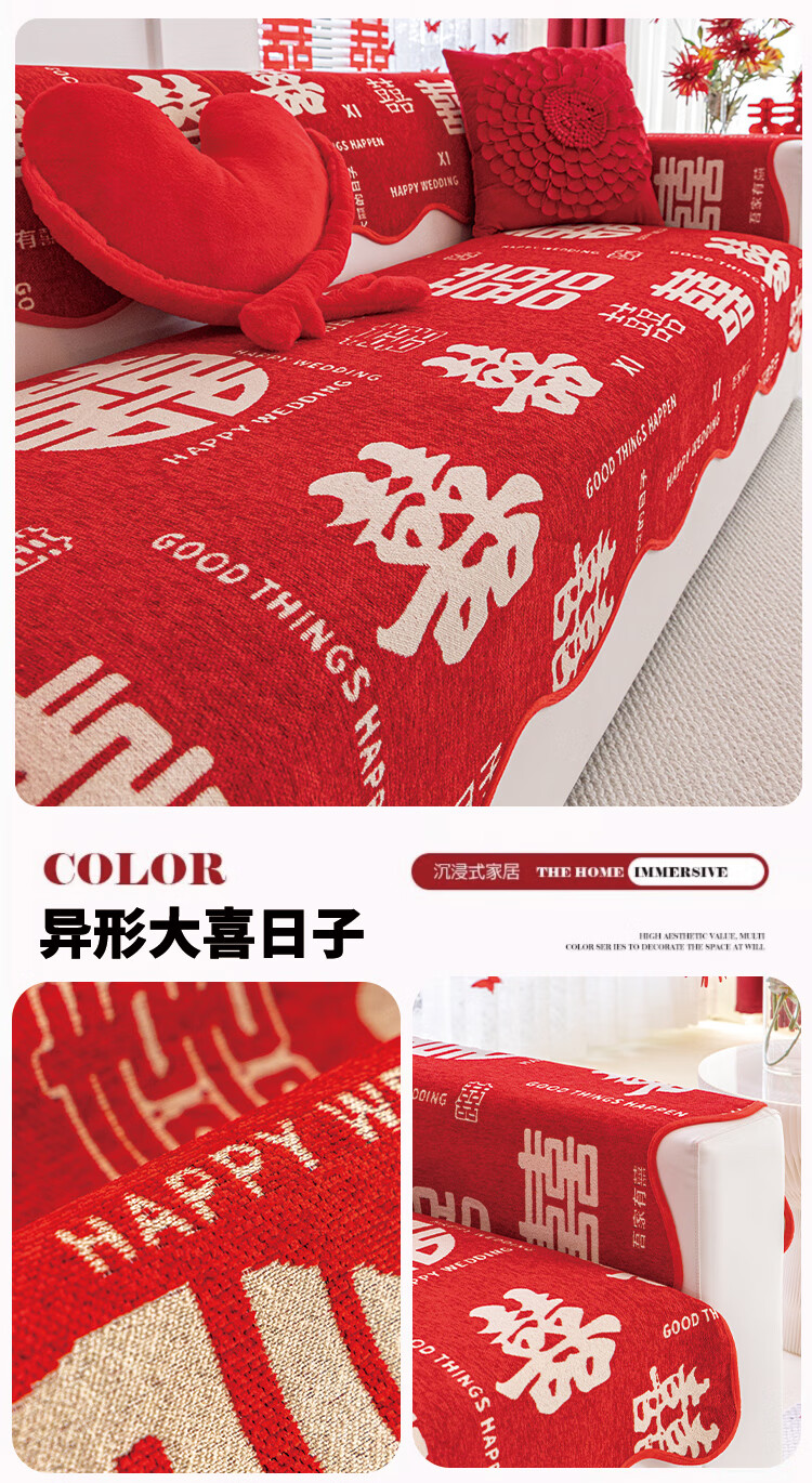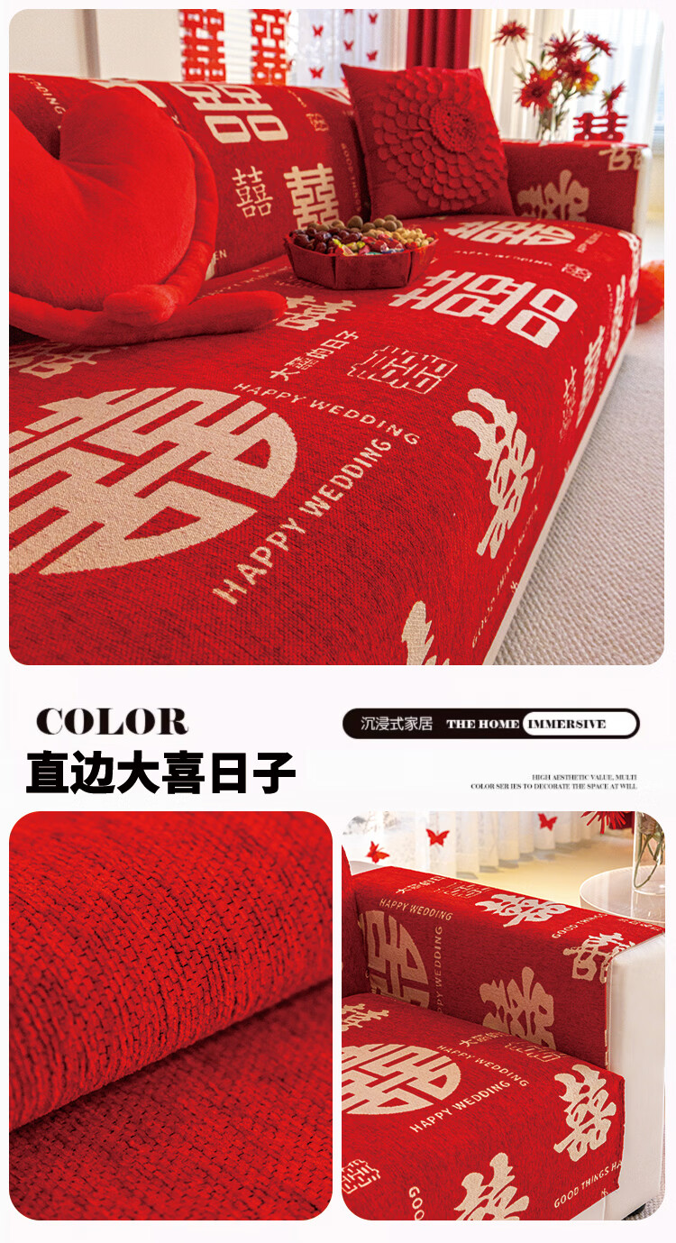 金拾美月红色喜庆沙发垫四季通用2026新款结婚布置高级感防滑皮沙发坐垫 异形大喜日子 70cm*70cm