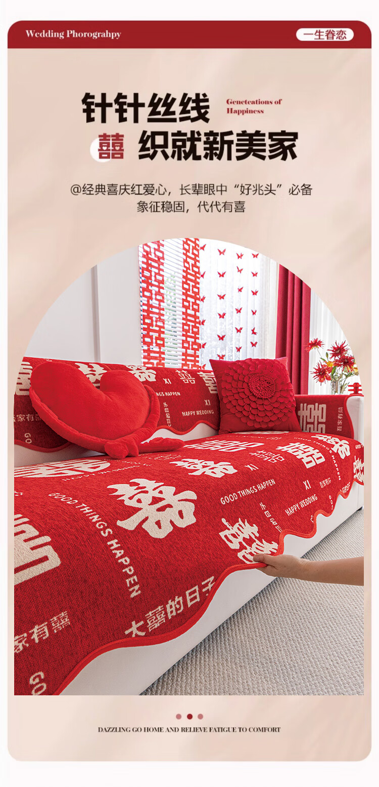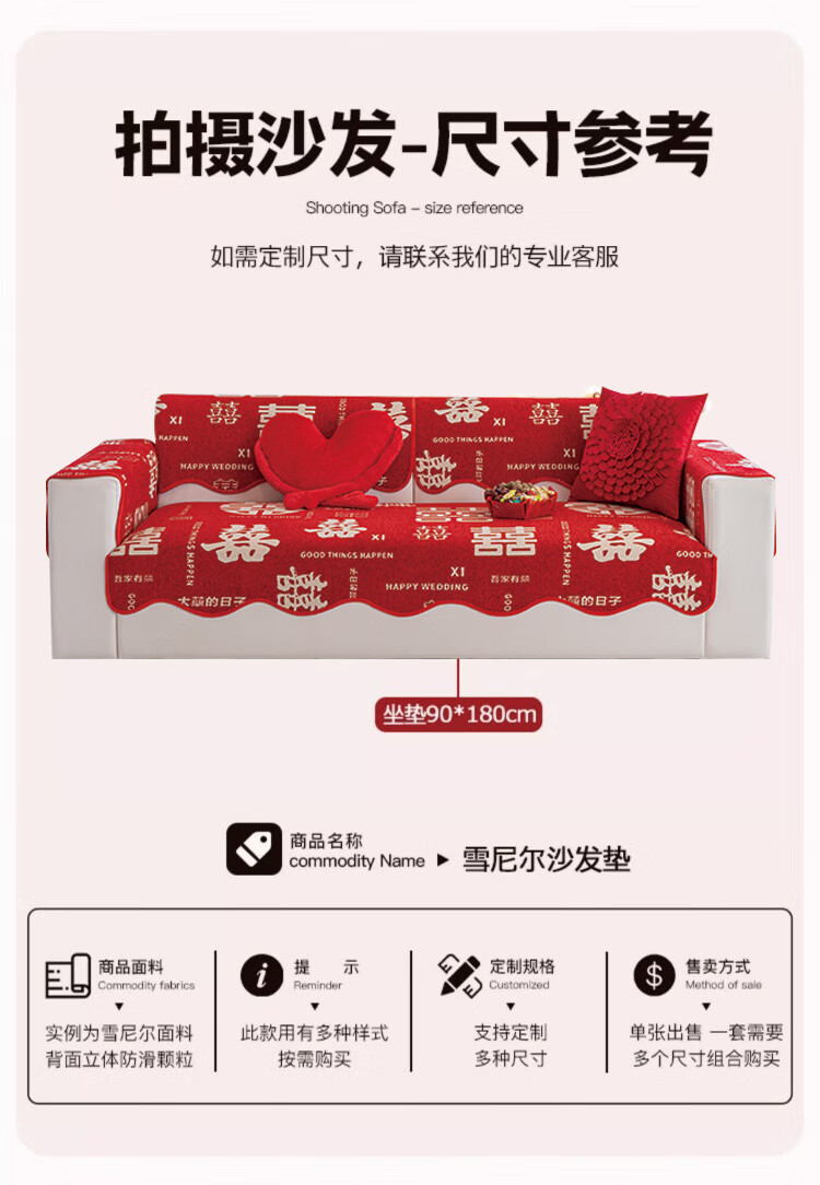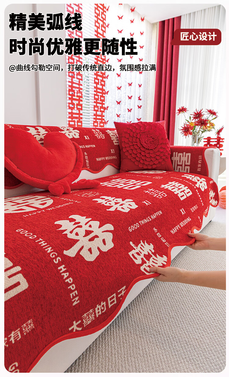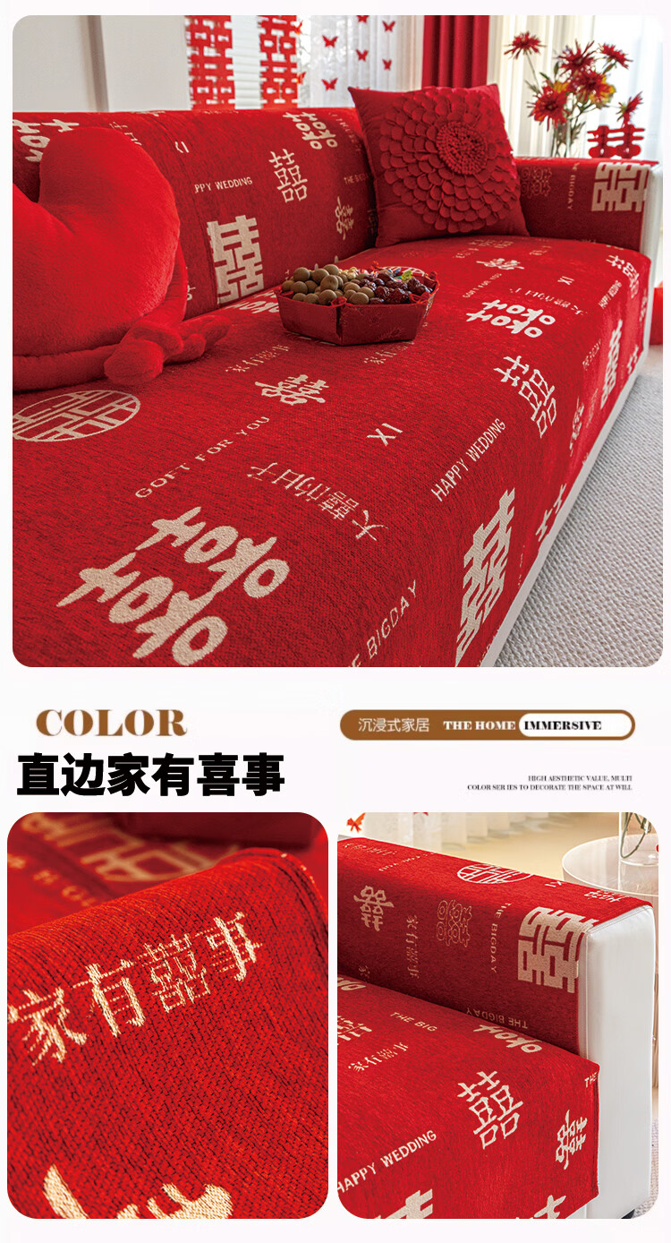 金拾美月红色喜庆沙发垫四季通用2026新款结婚布置高级感防滑皮沙发坐垫 异形大喜日子 70cm*70cm