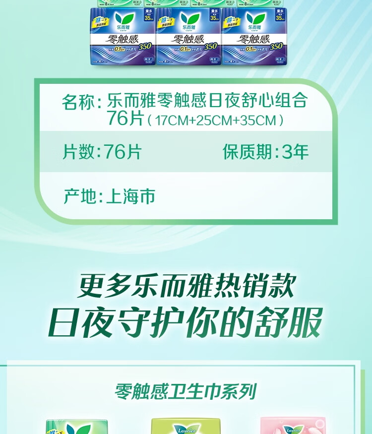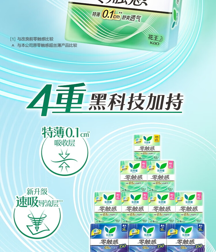乐而雅花王零触感特薄日夜舒心卫生巾组合10包76片姨妈巾京东自营新国标