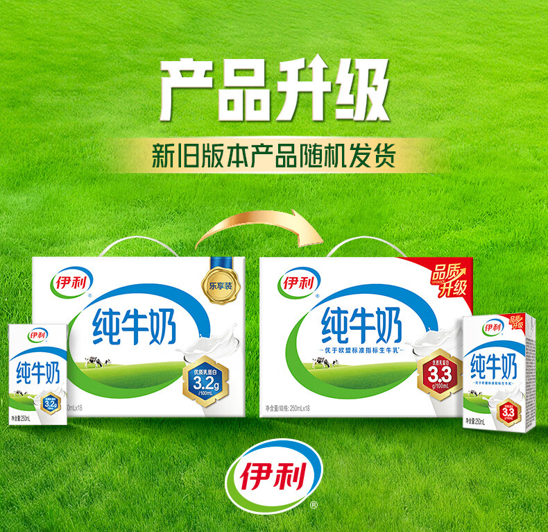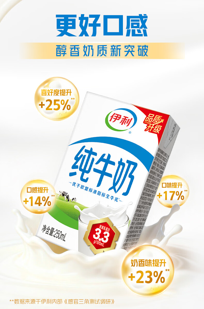 伊利纯牛奶18盒 全脂牛奶优质乳蛋白 营养早餐伴侣 年货礼盒 250ml*18盒/箱