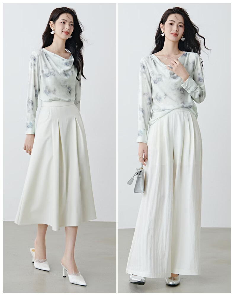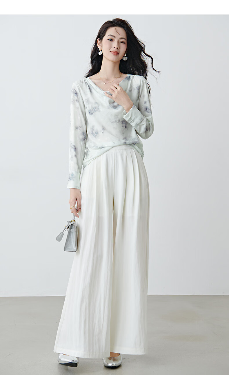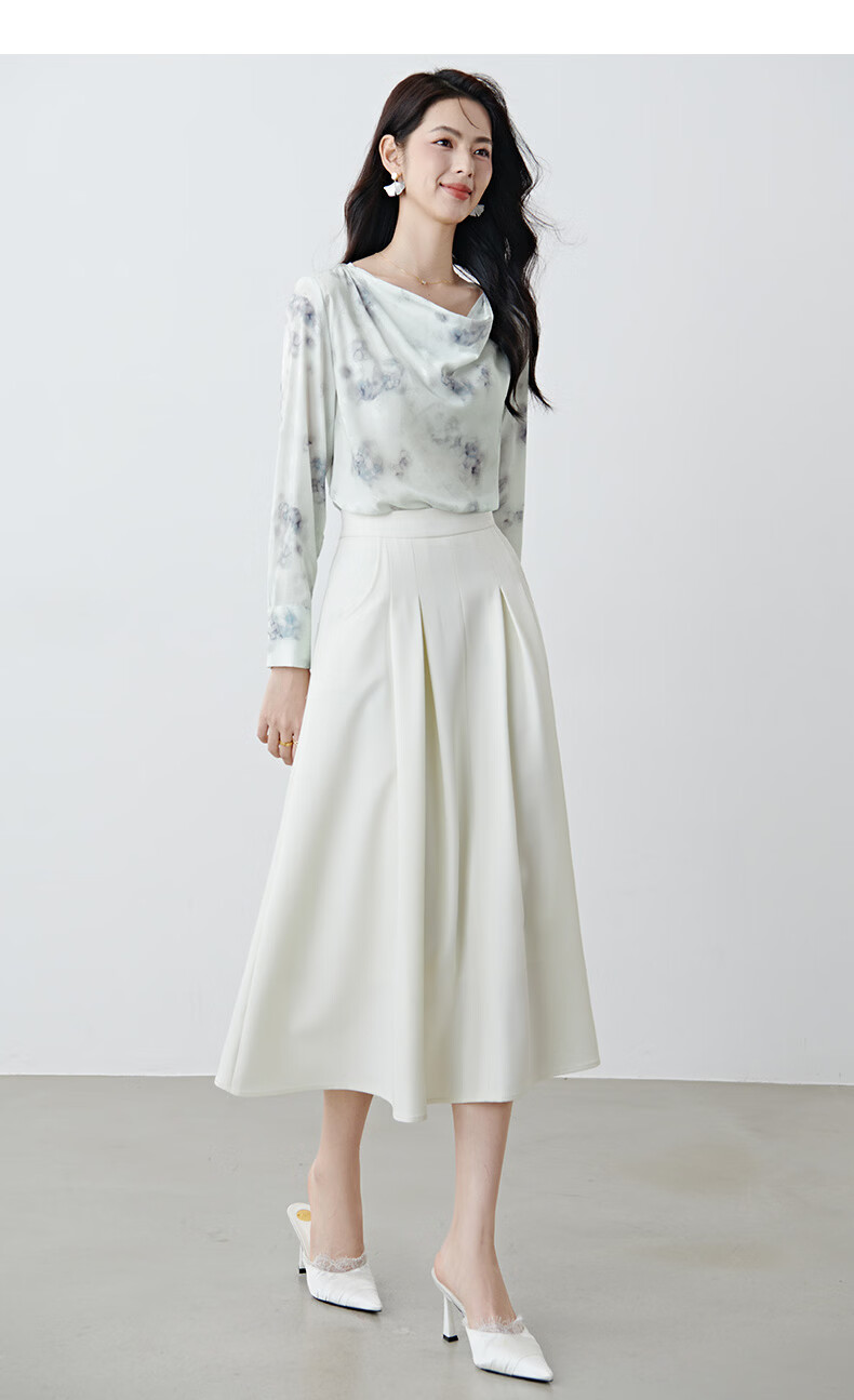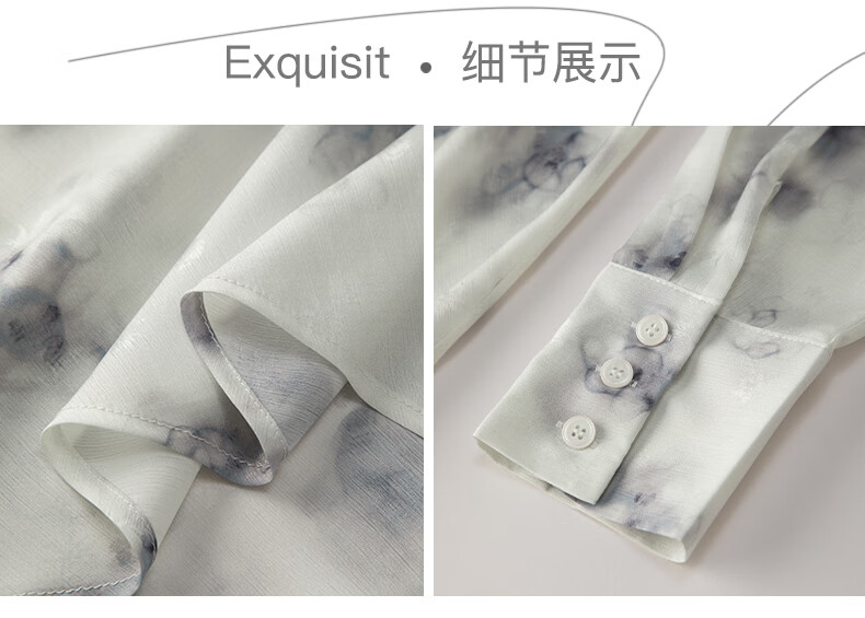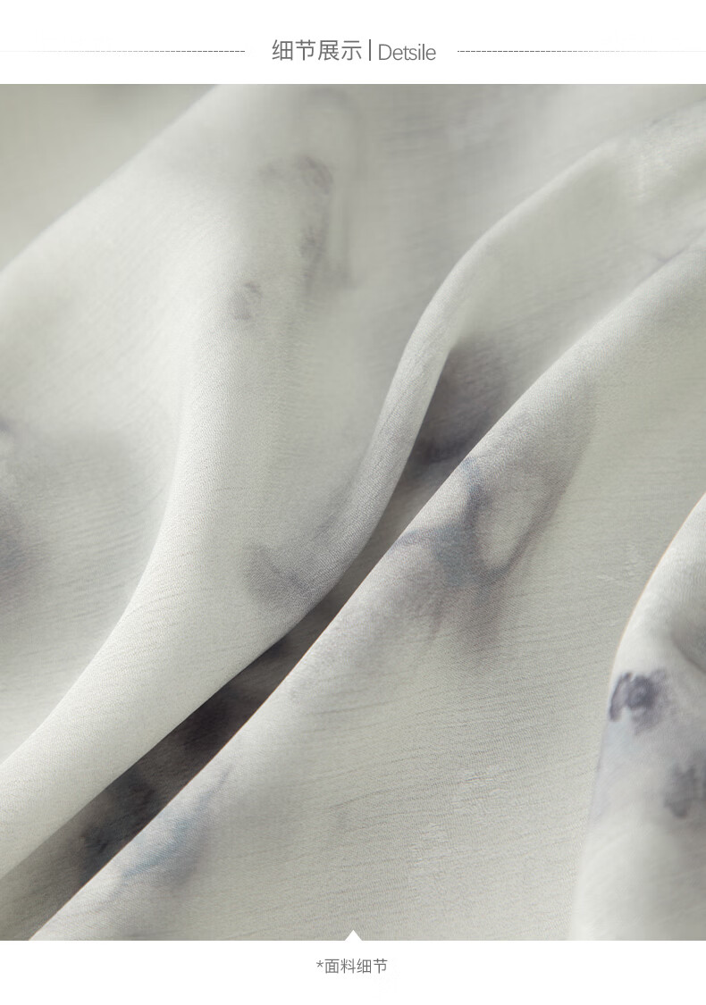 晚白2026年春款法式不规则荡领烟雨水墨印花上衣清新雅致缎面衬衫女 花色 L