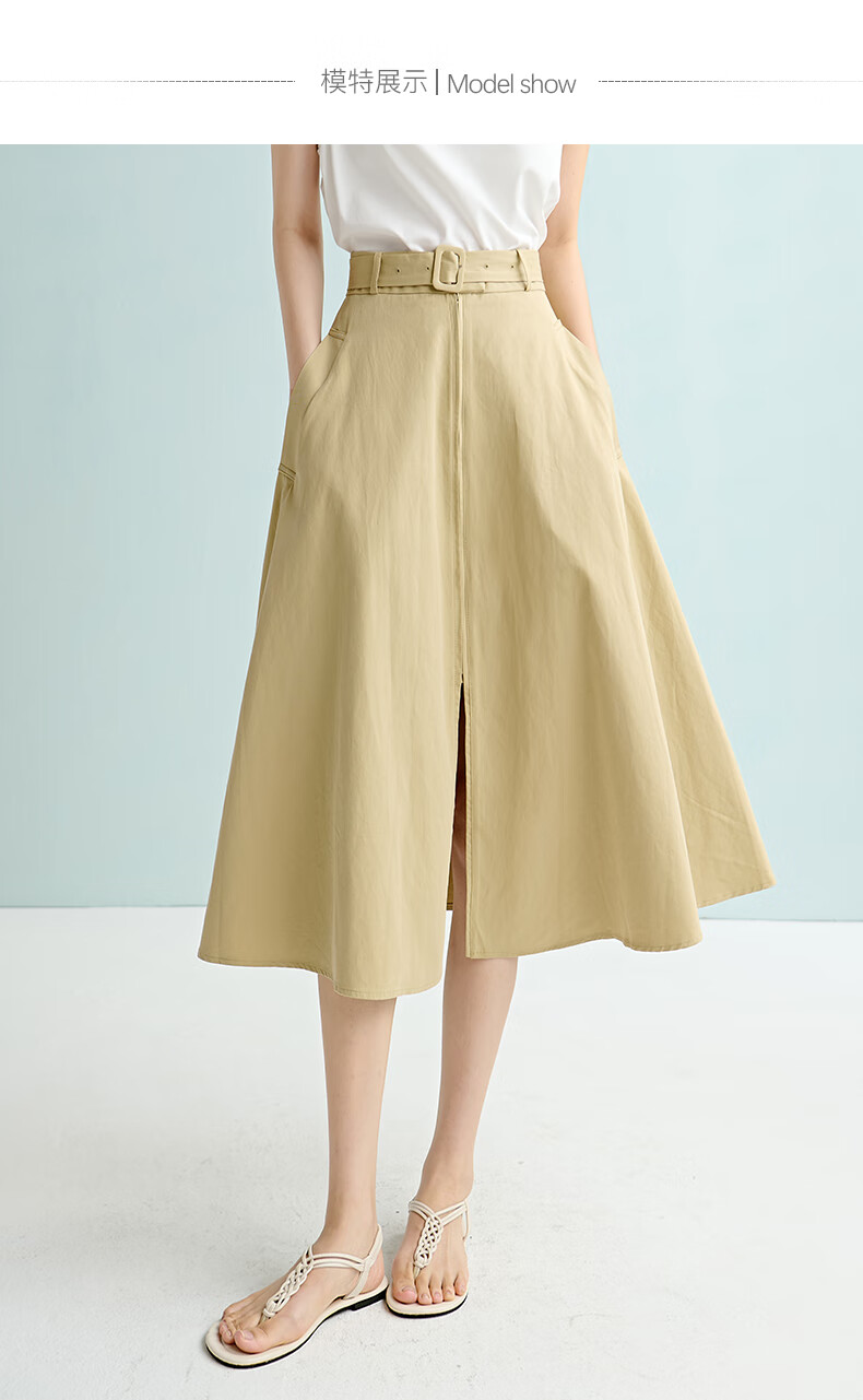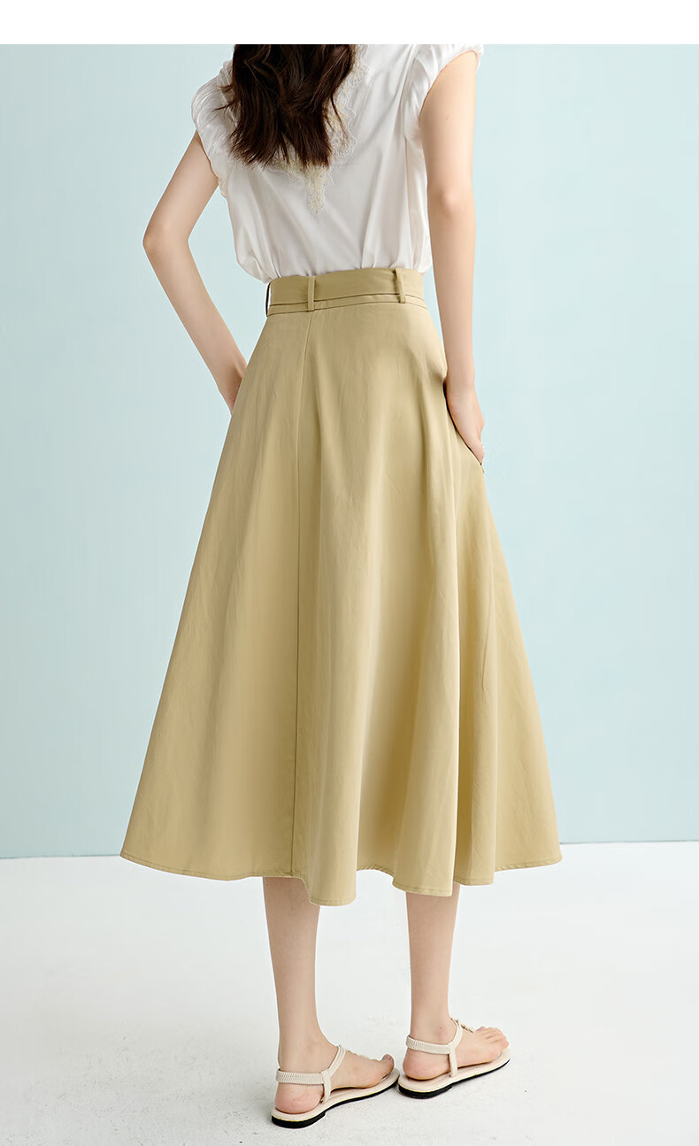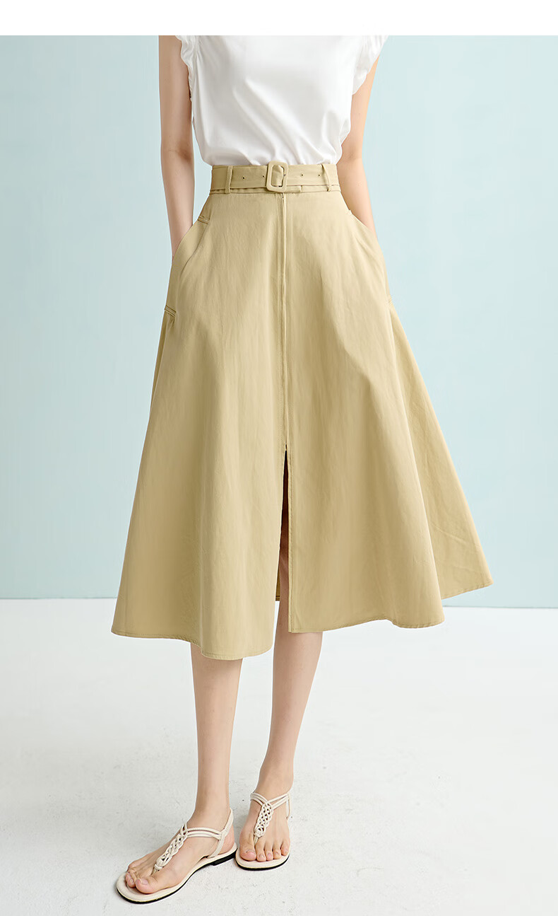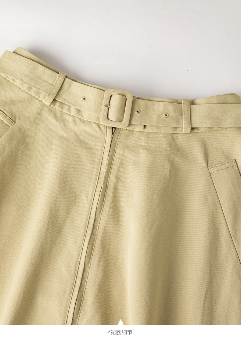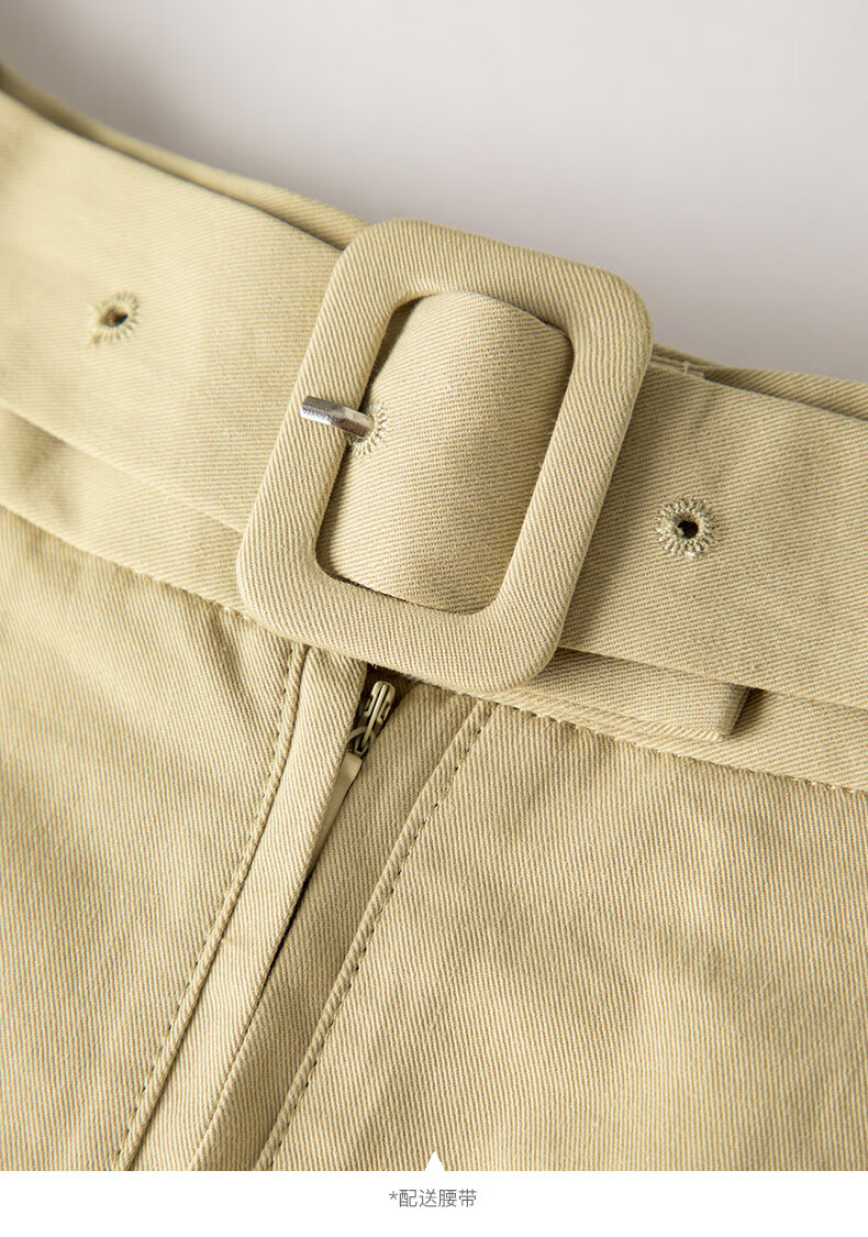 晚白【断码清仓】2026年春季时尚半裙休闲纯色全棉亲肤高腰半身裙 卡其色 M