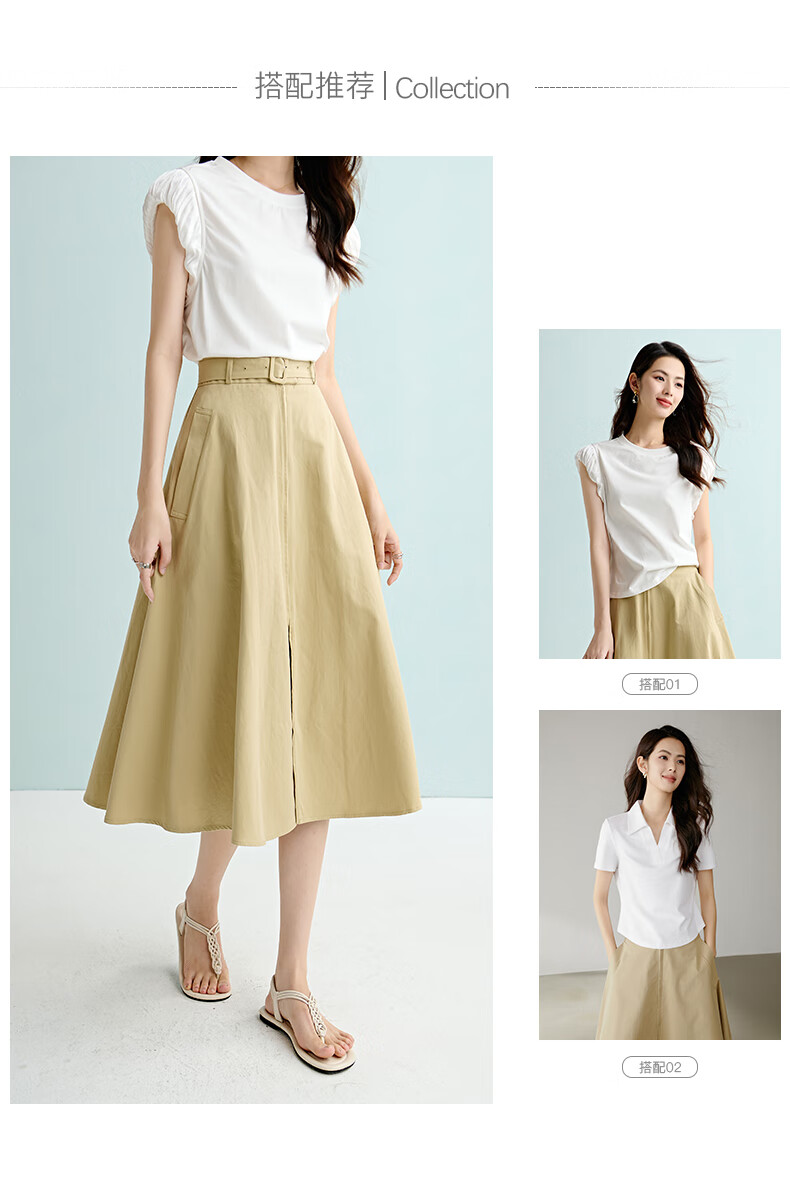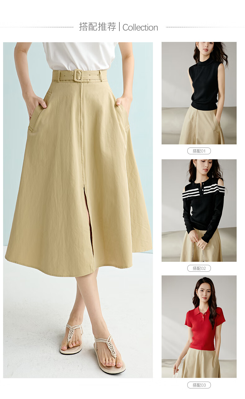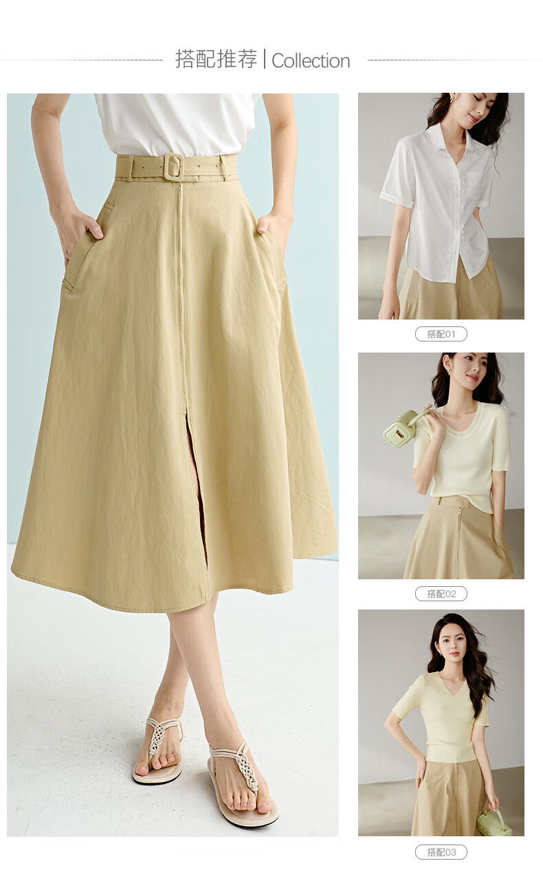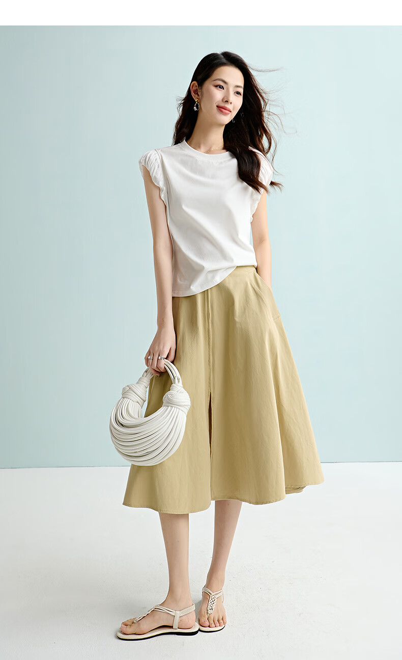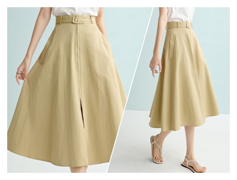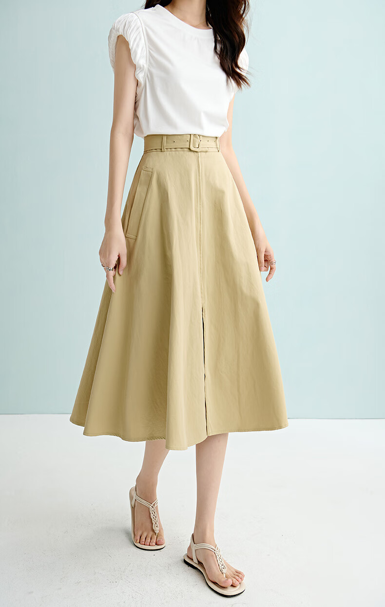 晚白【断码清仓】2026年春季时尚半裙休闲纯色全棉亲肤高腰半身裙 卡其色 M