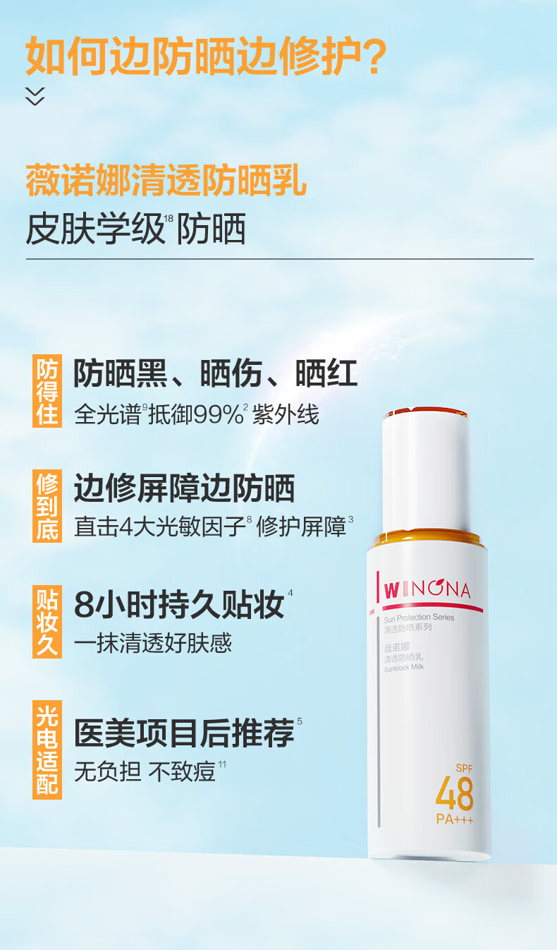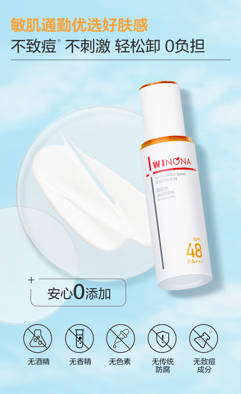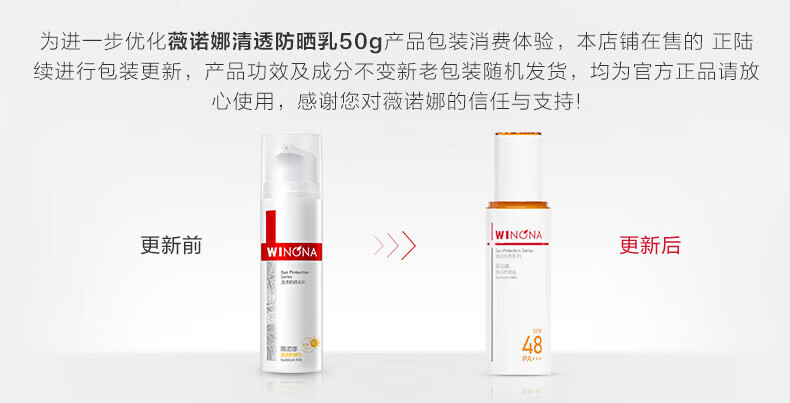 薇诺娜清透防晒乳50g SPF48PA+++ 温和清爽轻薄高倍防晒隔离