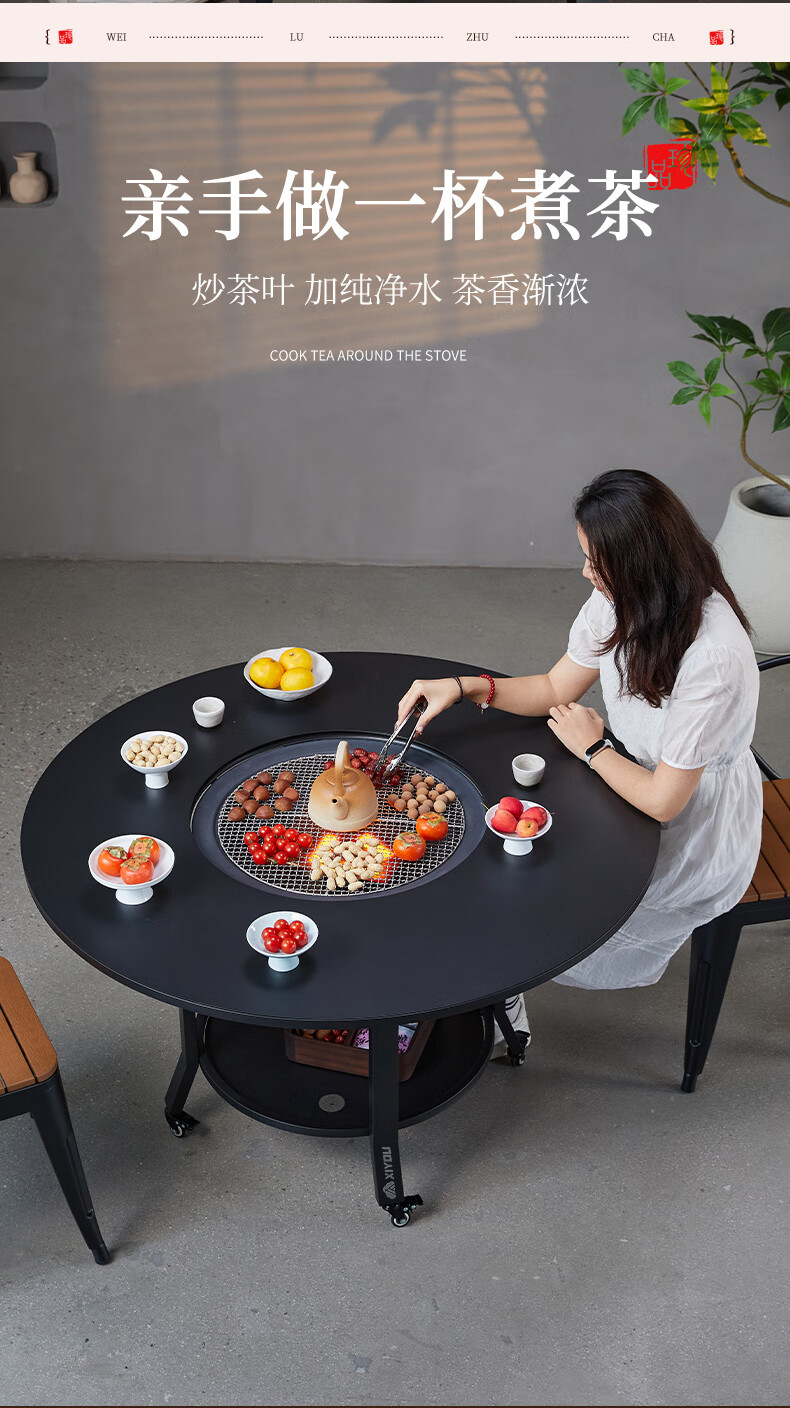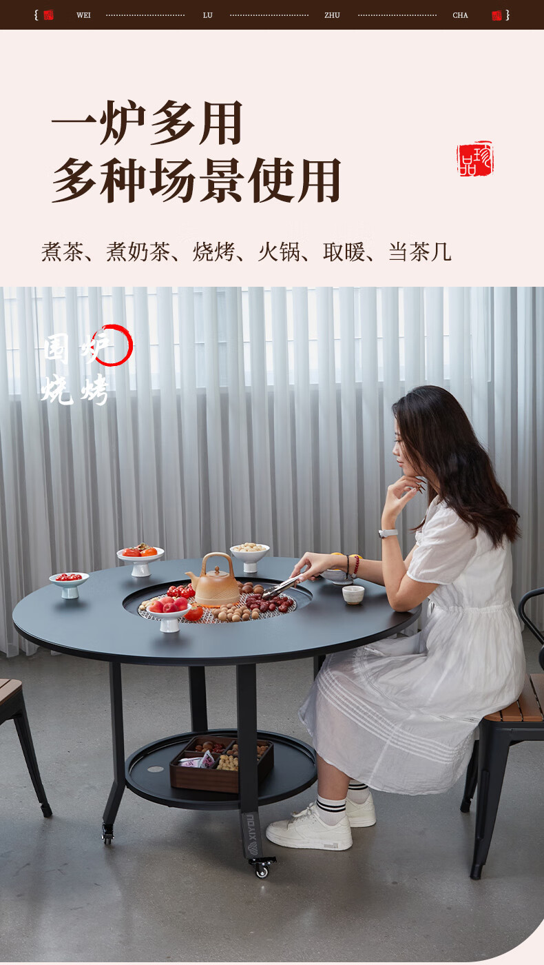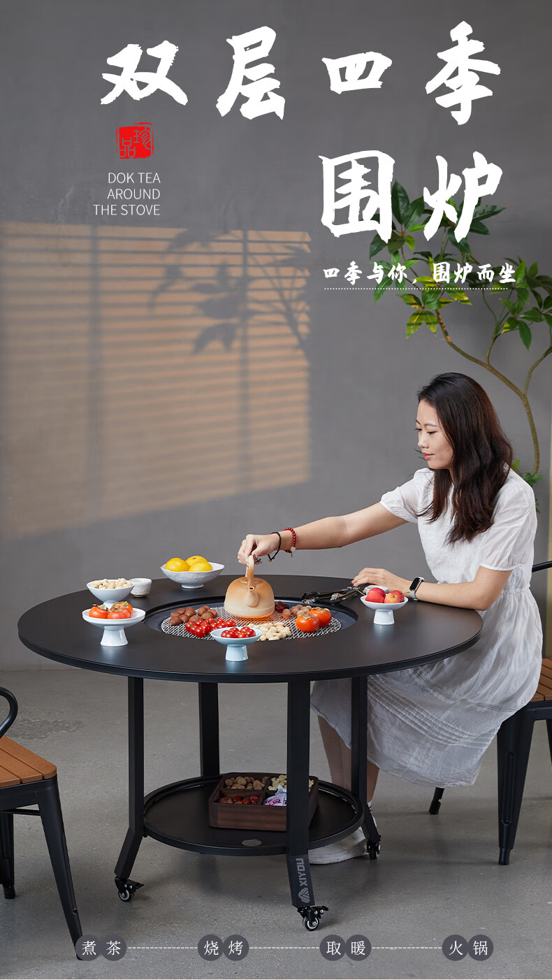嘻由围炉煮茶炭电两用家用室内烧烤炉套装户外取暖盆加高庭院插电碳炉 【100烧烤桌+烤网+5斤木炭】 【一桌两用】桌板秒变茶几盖