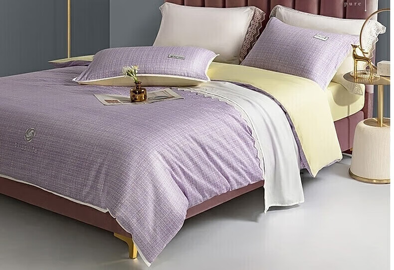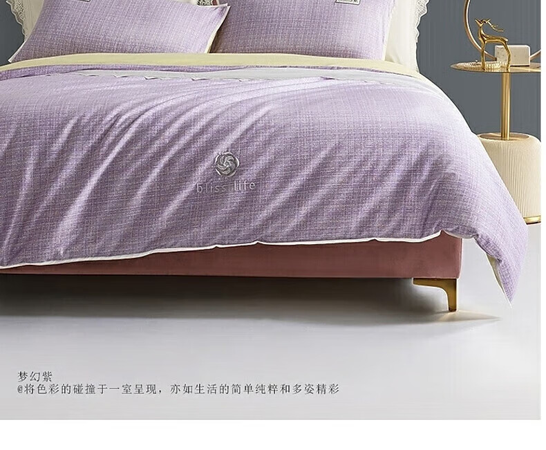 百丽丝出品床上四件套60s小香风长绒棉纯棉套件被套床单三件套 可莎蜜儿(梦幻紫) 床单款 (被套150*210cm)