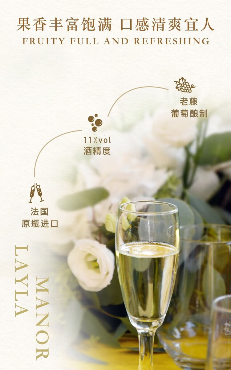 LAYLA【法国蕾拉】原瓶进口水晶甜白葡萄酒微醺果酒750mlX6瓶整箱送礼