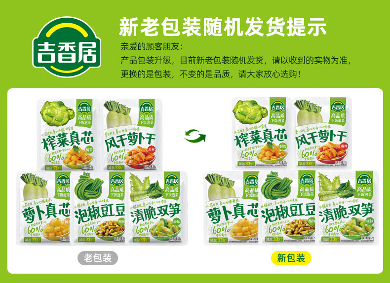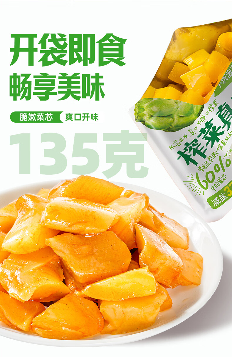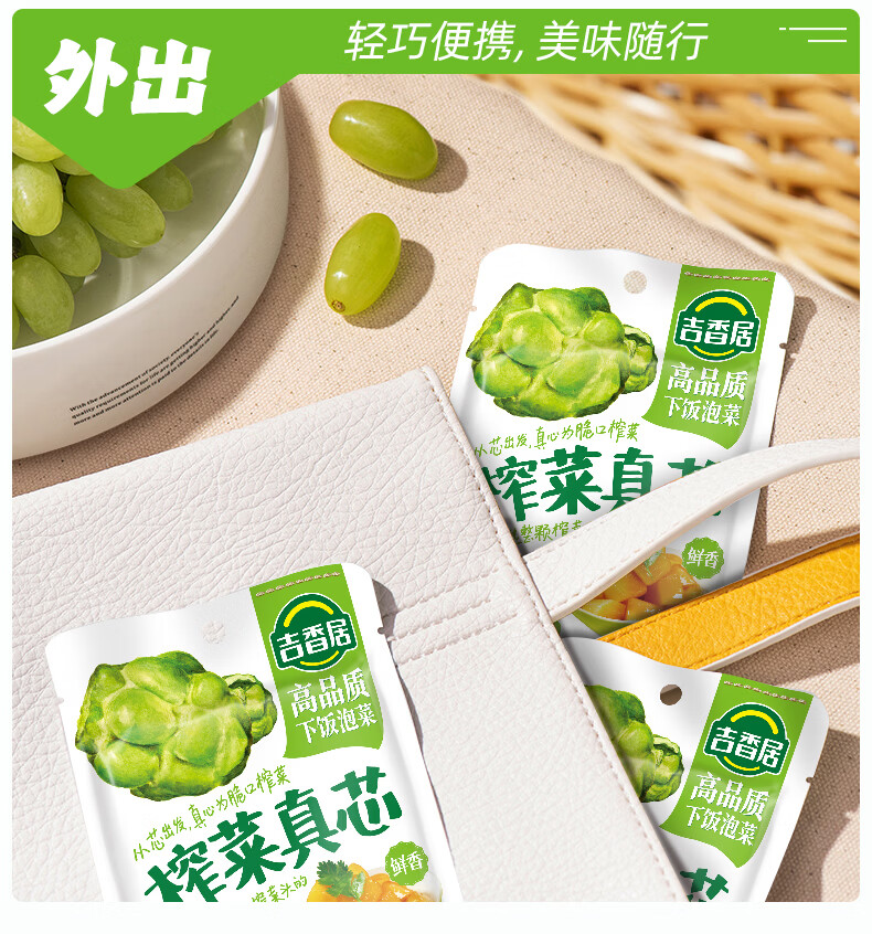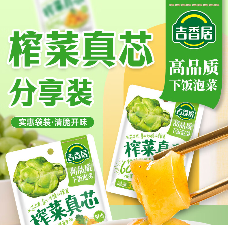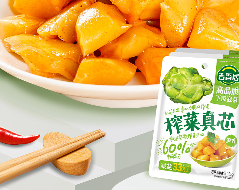 吉香居榨菜真芯 榨菜芯0添加脂肪135g*3包减盐清淡下饭菜咸菜
