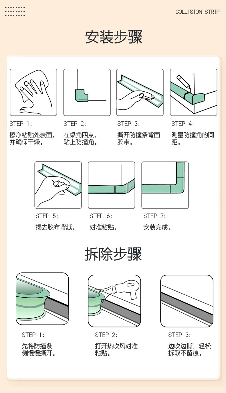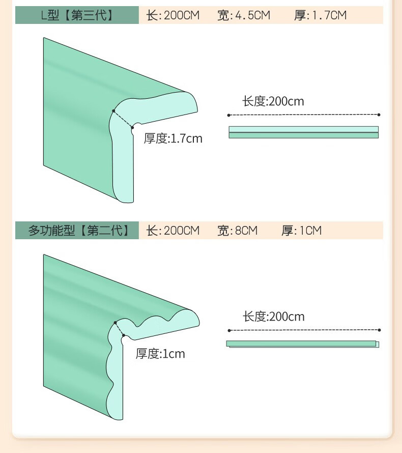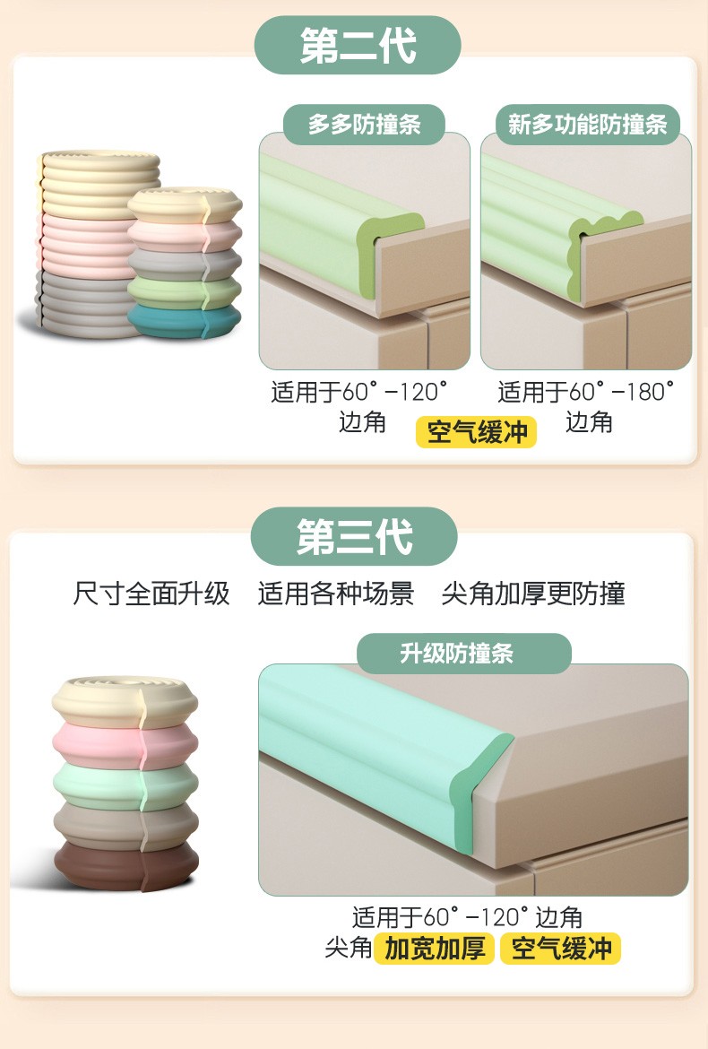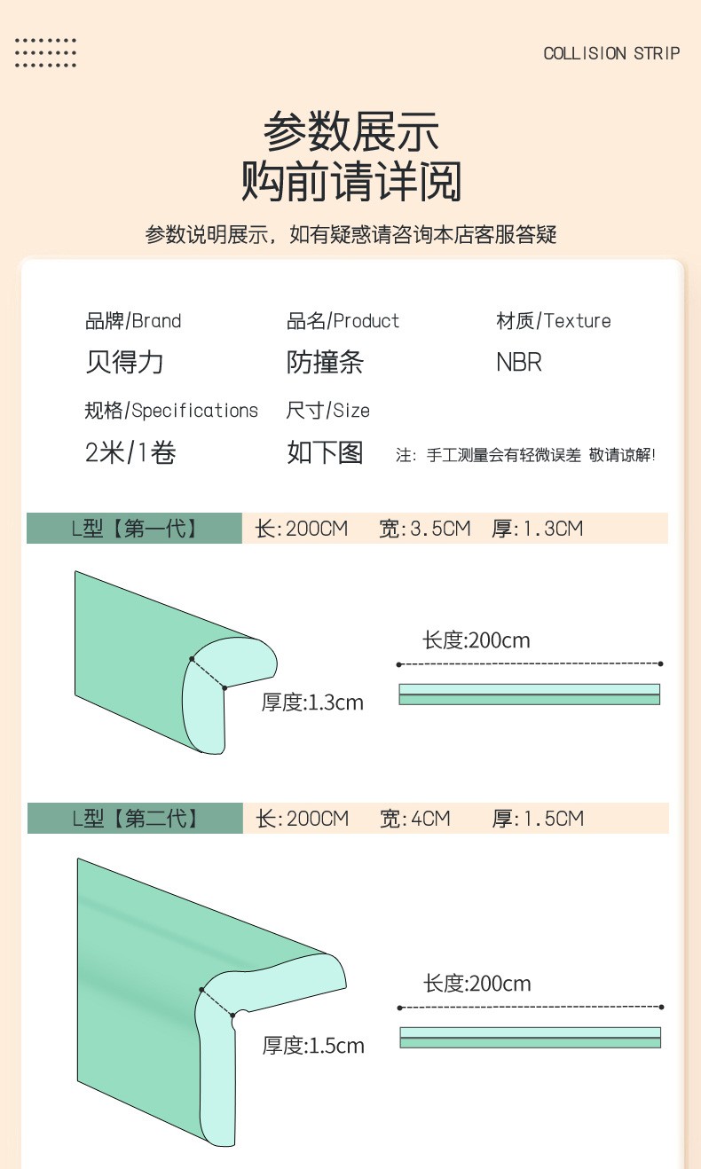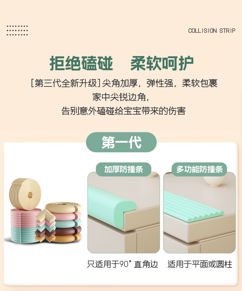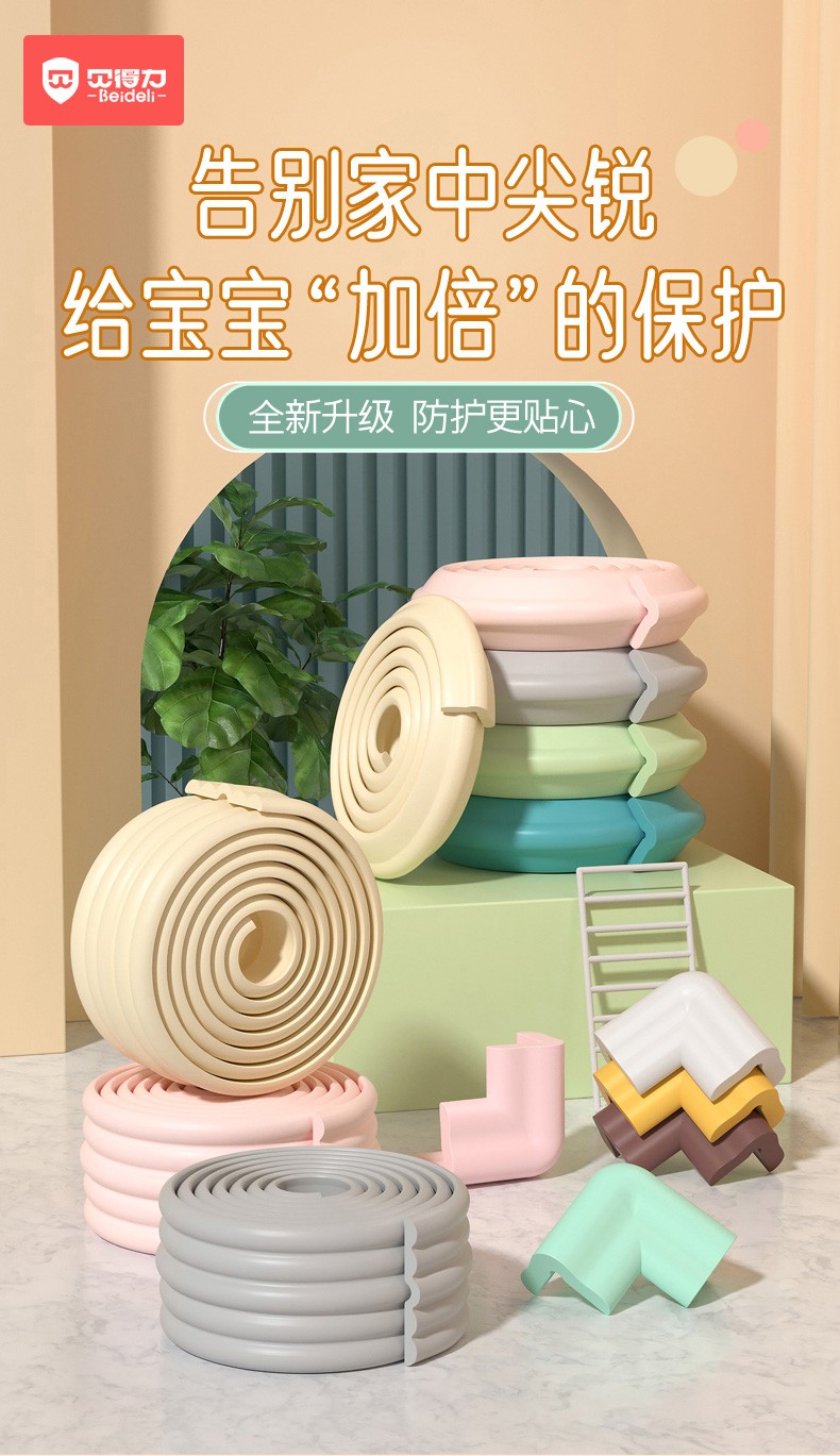 贝得力(BEIDELI)防撞条儿童防护墙角家用海绵防磕碰墙贴软包桌子保护婴儿安全包边 L型米白一条 2米 拍1米+1米=2米条+4米胶