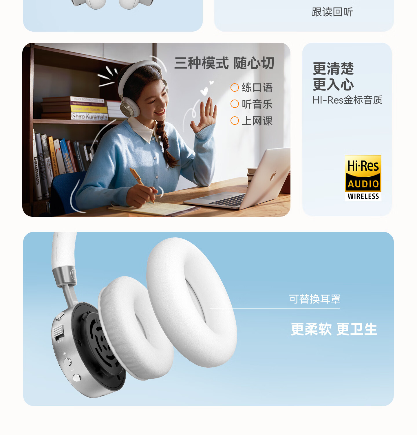 望舒泽【新品上市】onesuze 追光同频礼盒头戴式蓝牙耳机2026年新款学生诵读耳返网课背书学习专用降噪 追光同频礼盒