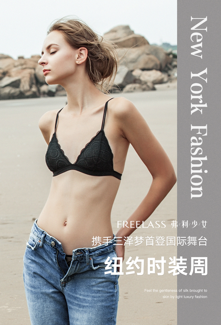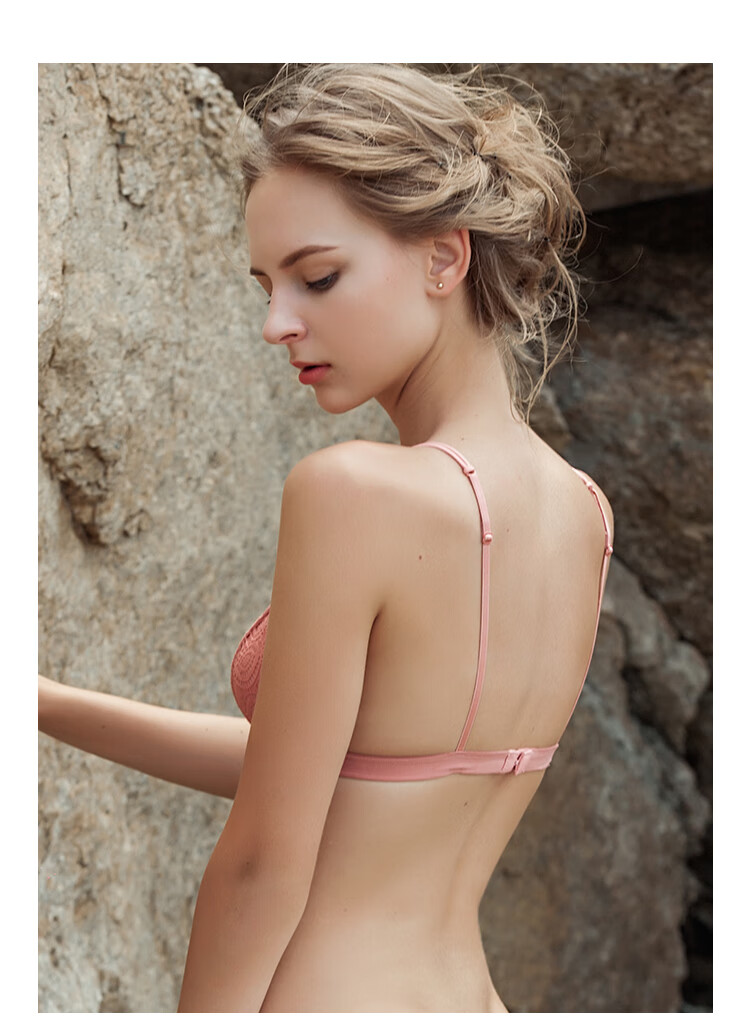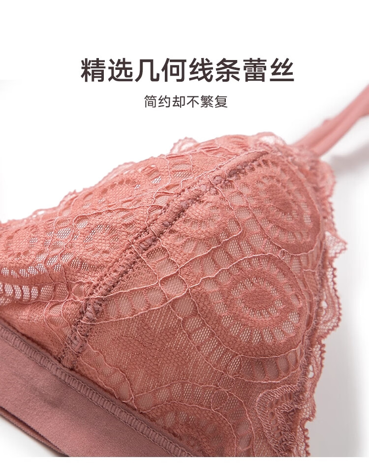 弗利少女法式蕾丝内衣女士无钢圈超薄文胸透气胸罩小胸 纽约时装周秀场款 珊瑚色 M (适合70AA/A/B)