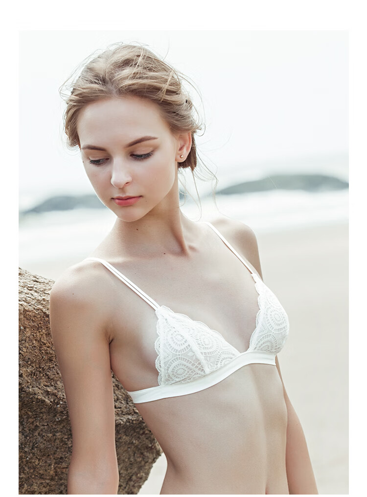 猫人【刘亦菲同款】内衣女聚拢小胸不空杯蕾丝美背抹胸三角杯文胸 冰蓝盒装 【蕾丝提拉 性感美背】 XL 【推荐38/85ABC 约 120-135斤】