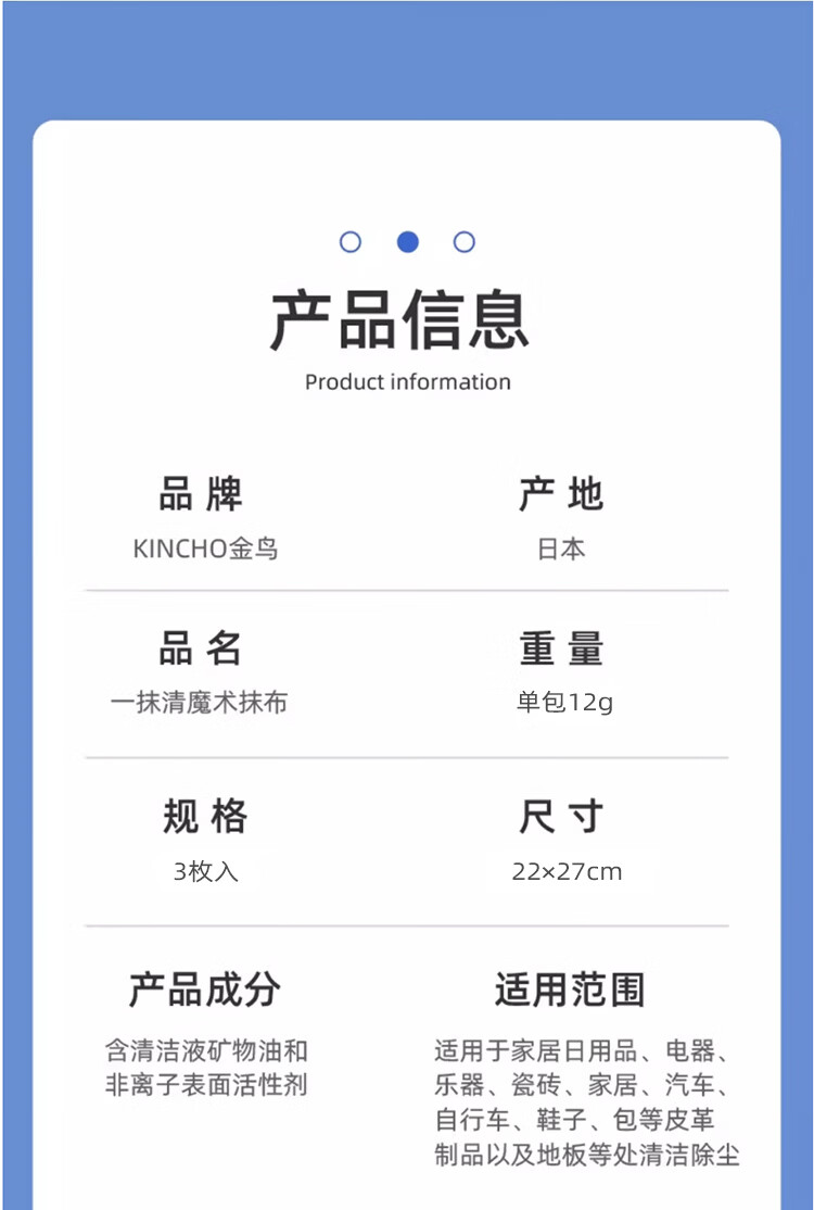 KINCHO金鸟无纺布抹布环保吸油精密仪器设备一次性日本进口 3枚5包装(15枚)