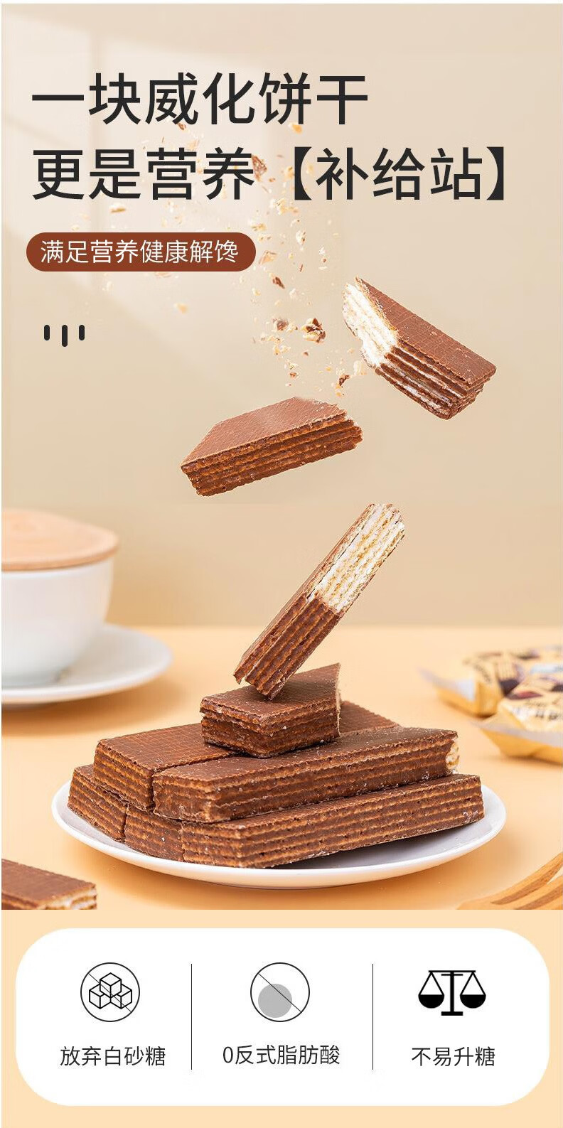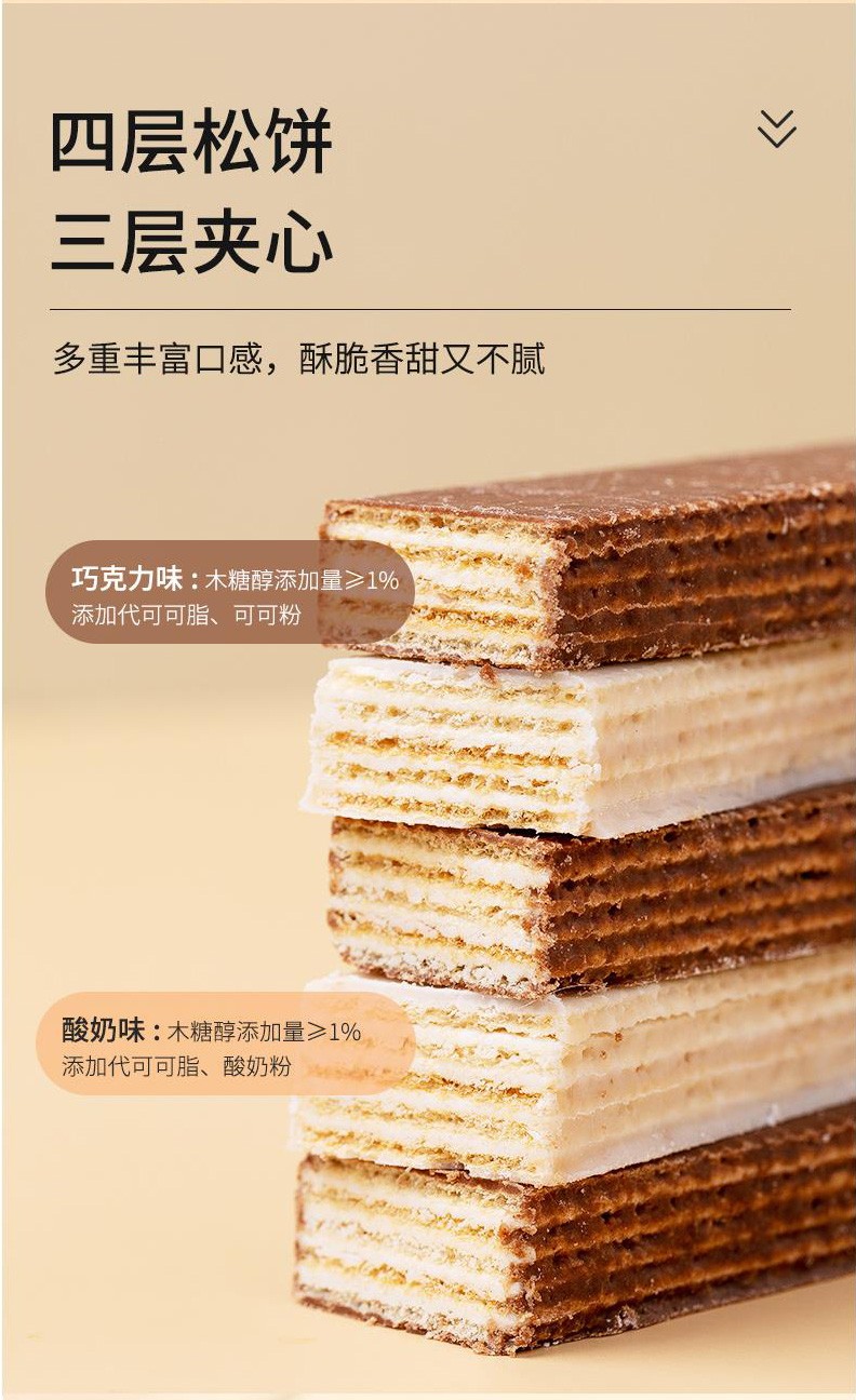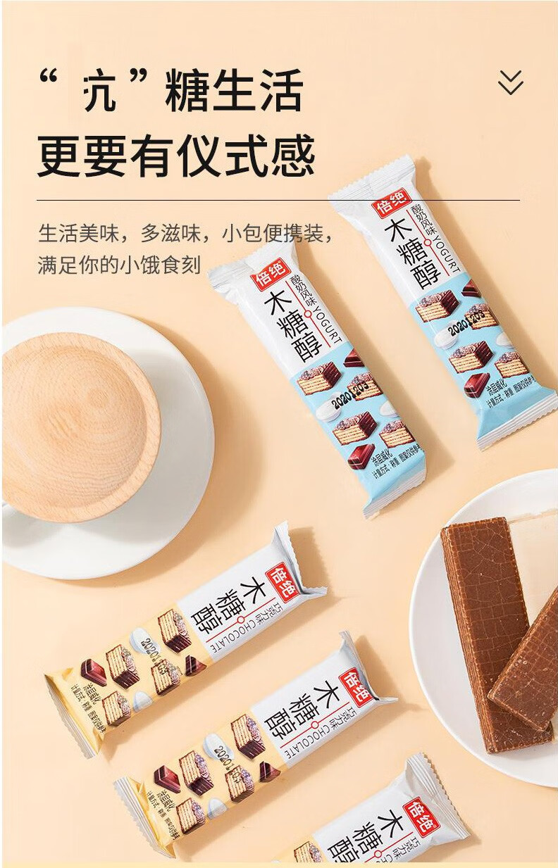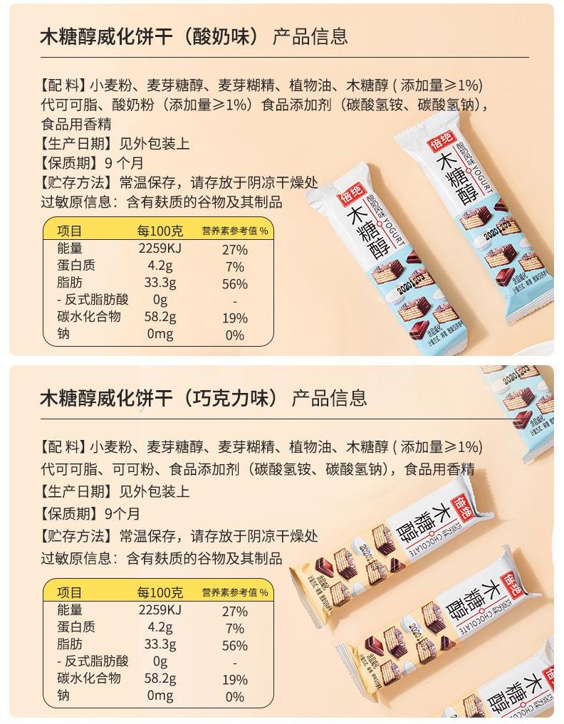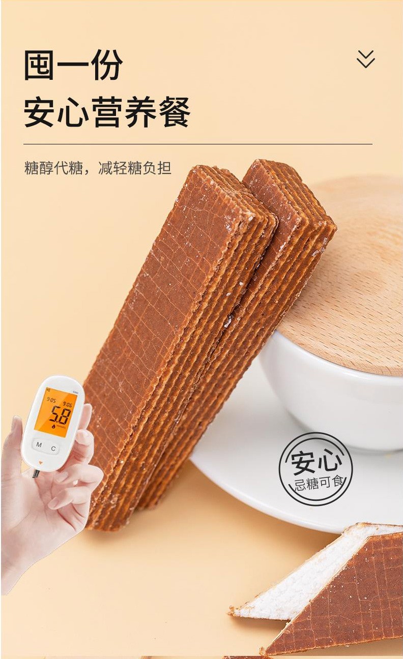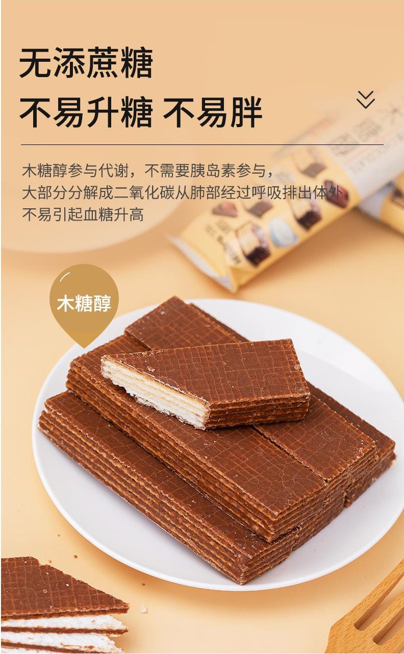 倍绝木糖醇威化饼干无糖精食品老年人抗饿代餐不易长胖零食品专用 巧克力威化饼干 500g*1箱