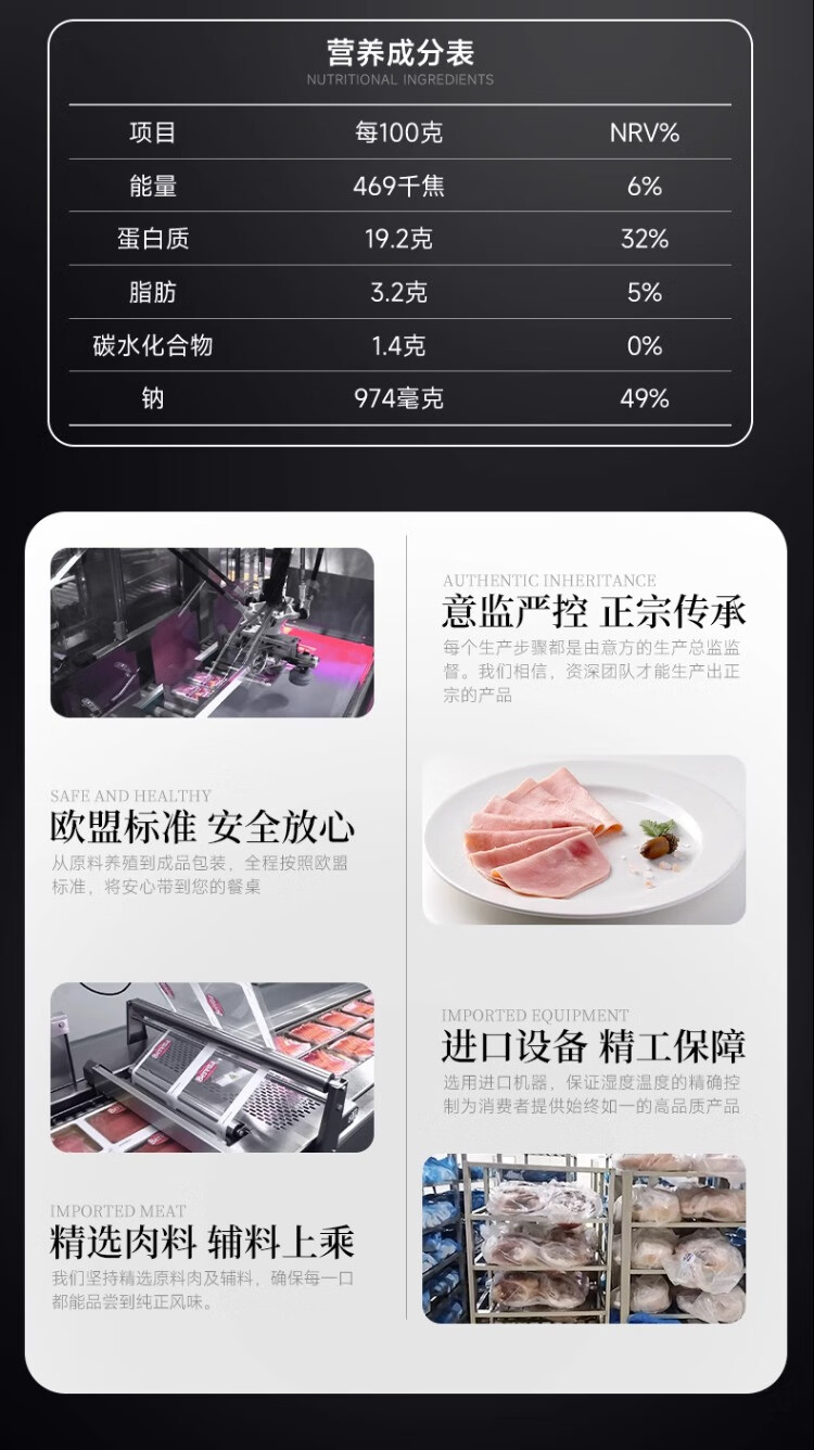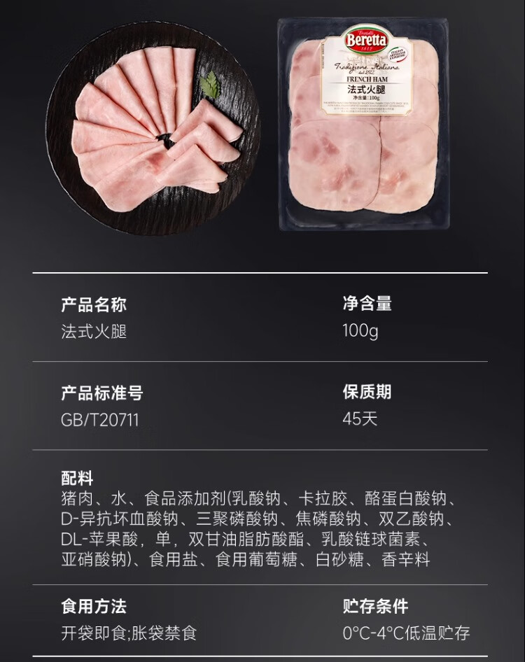 FRATELLI BERETTA进口法式火腿100g 开袋即食 三明治食材 火腿切片 年货节送礼推荐 法式火腿100g
