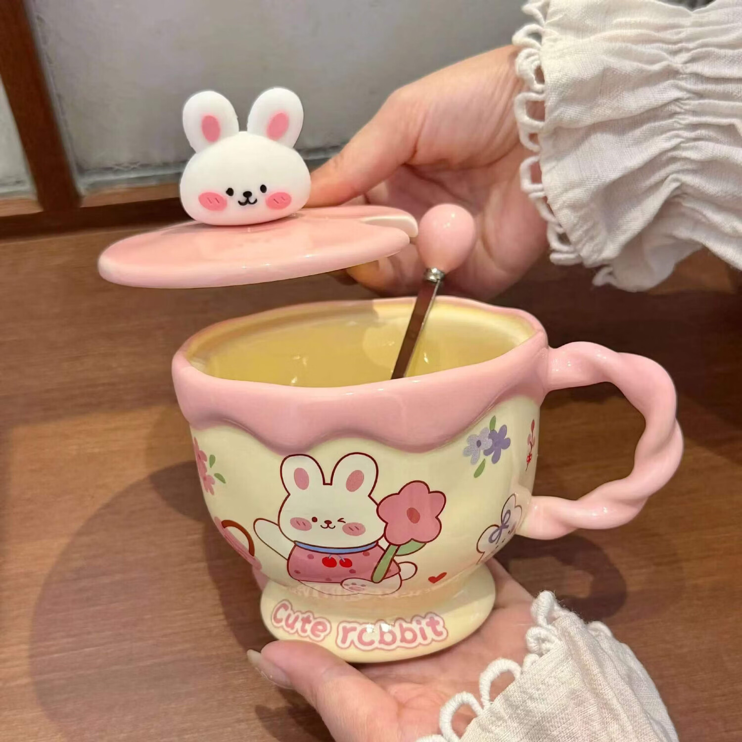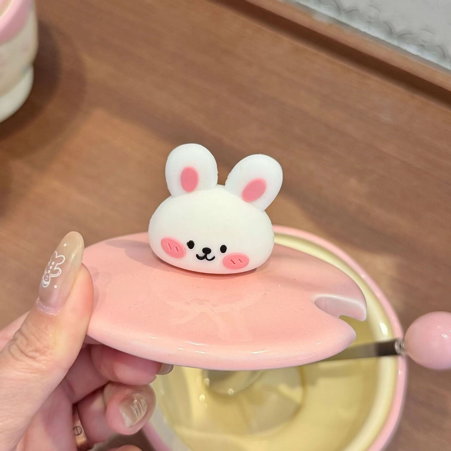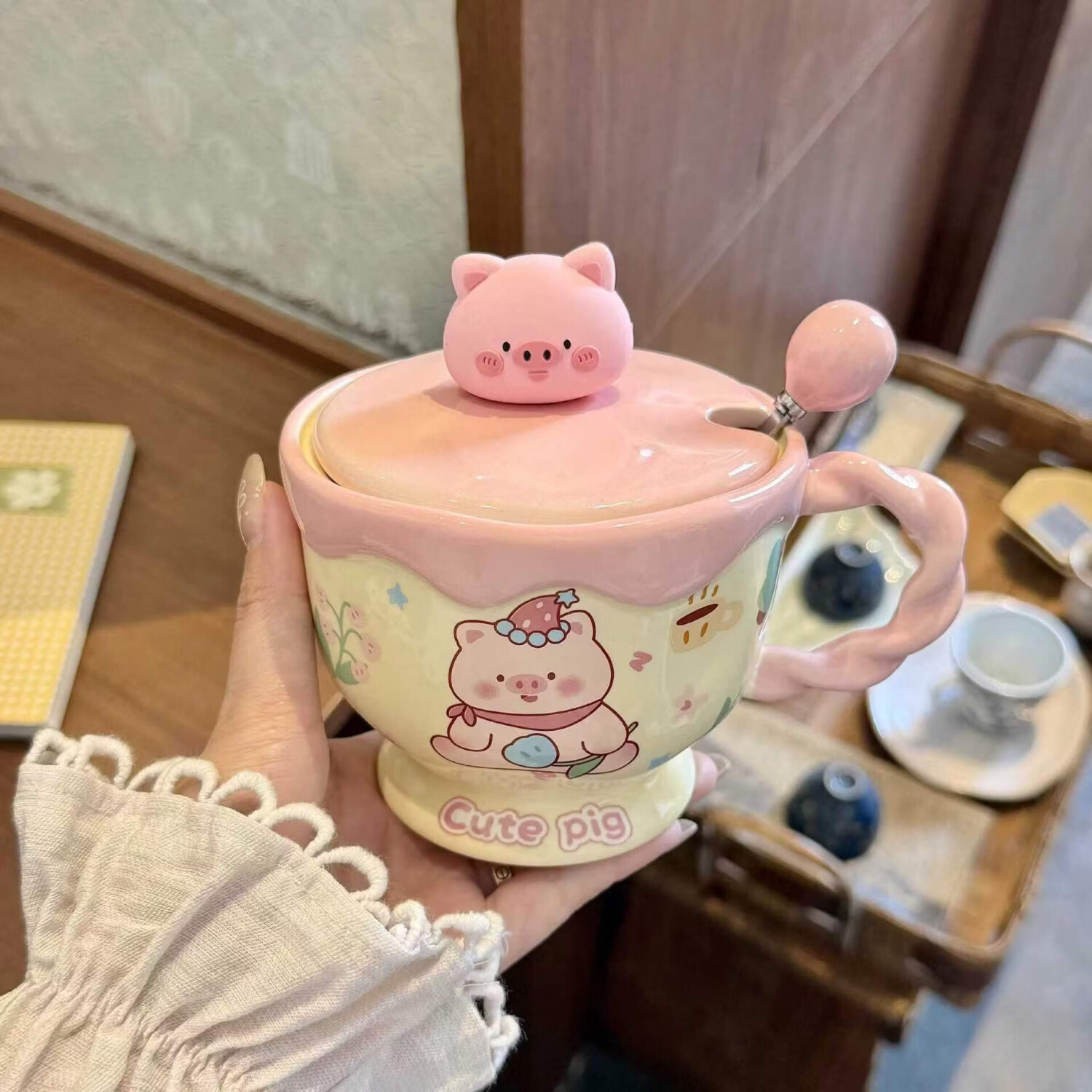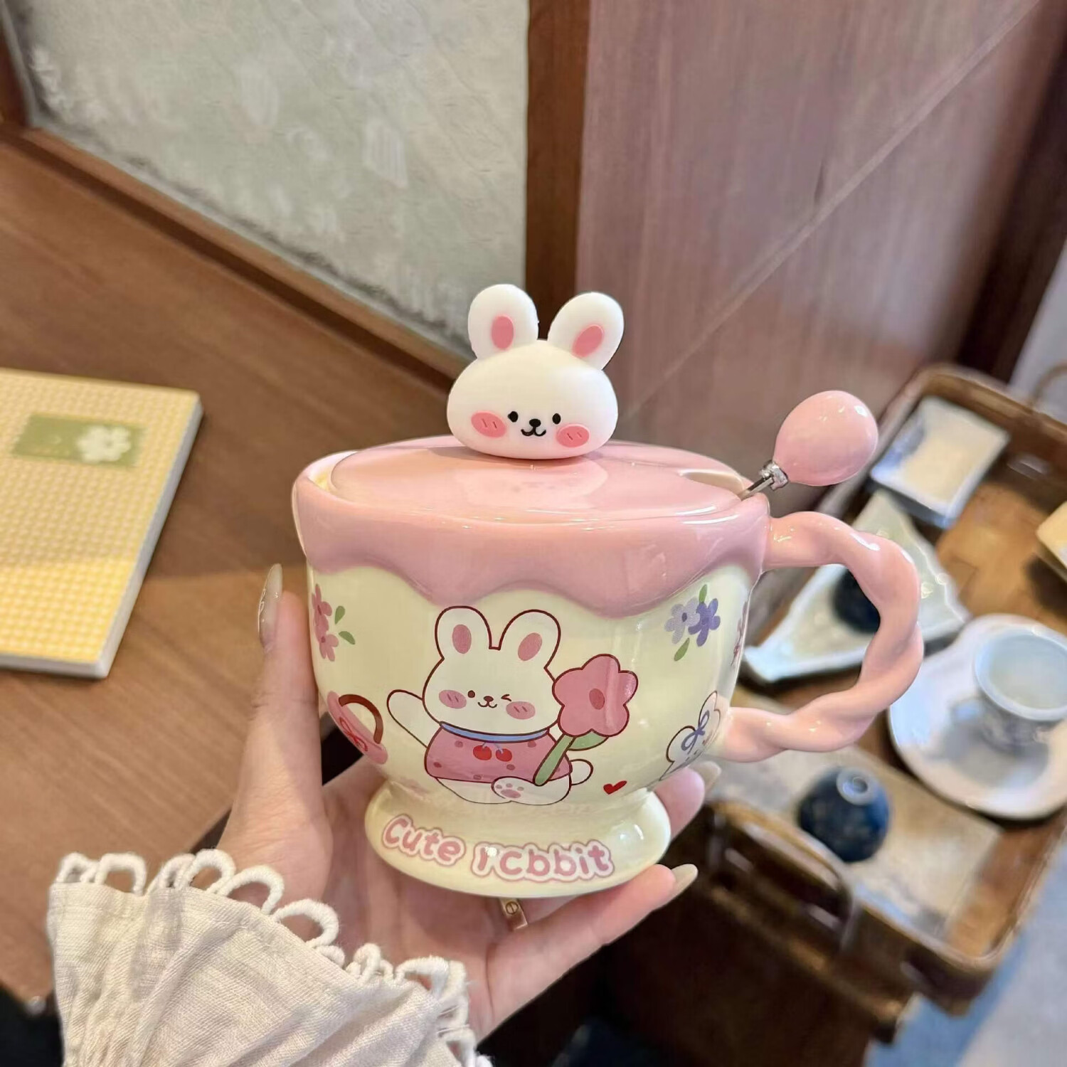 儿童陶瓷水杯 ins奶油小兔伴手礼女生可爱马克杯男实用带盖伴手礼 奶油萌宠杯-棕色小狗【杯+盖+勺】