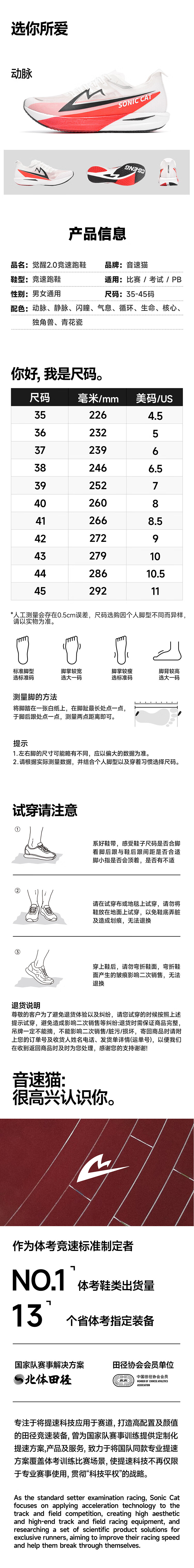音速猫 x 北京体育大学丨觉醒2.0全掌碳板跑鞋秋冬加厚款田径训练跑步鞋 动脉 【秋冬加厚款】 42
