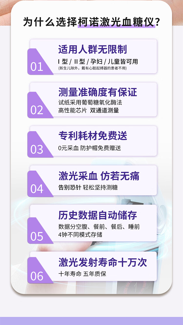 柯诺激光血糖仪家用医用免扎针微创微痛精准智血糖仪测血糖一体机 2.【京东金榜产品】白色激光血糖仪配100试纸+帽