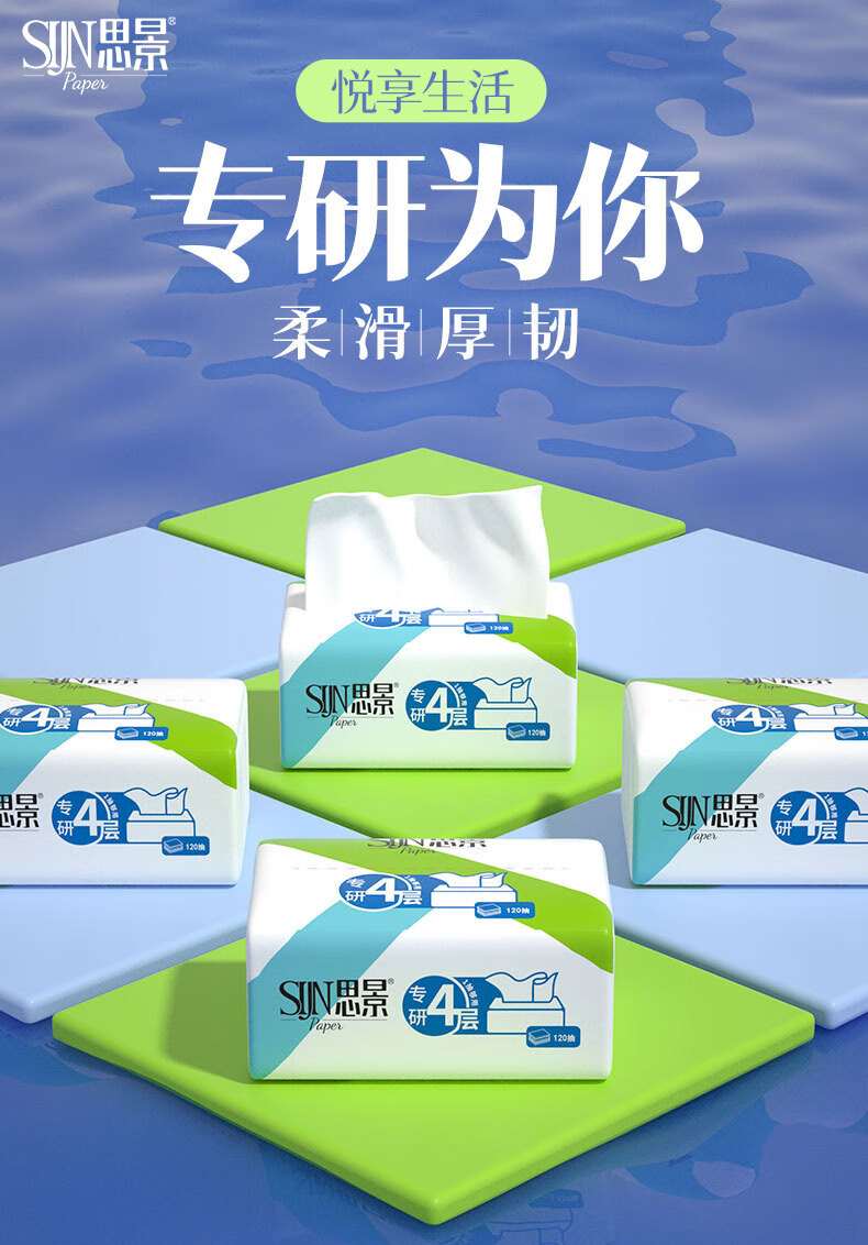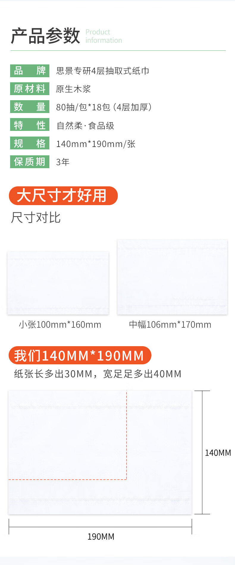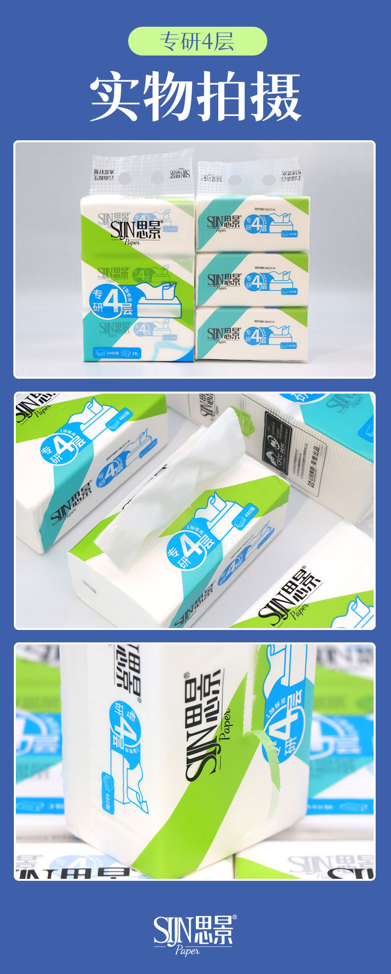 思景专研系列抽纸4层加厚18包纸巾经典无香家用抽纸学生实惠装大尺寸 抽纸 4层 80抽*18包 整箱装