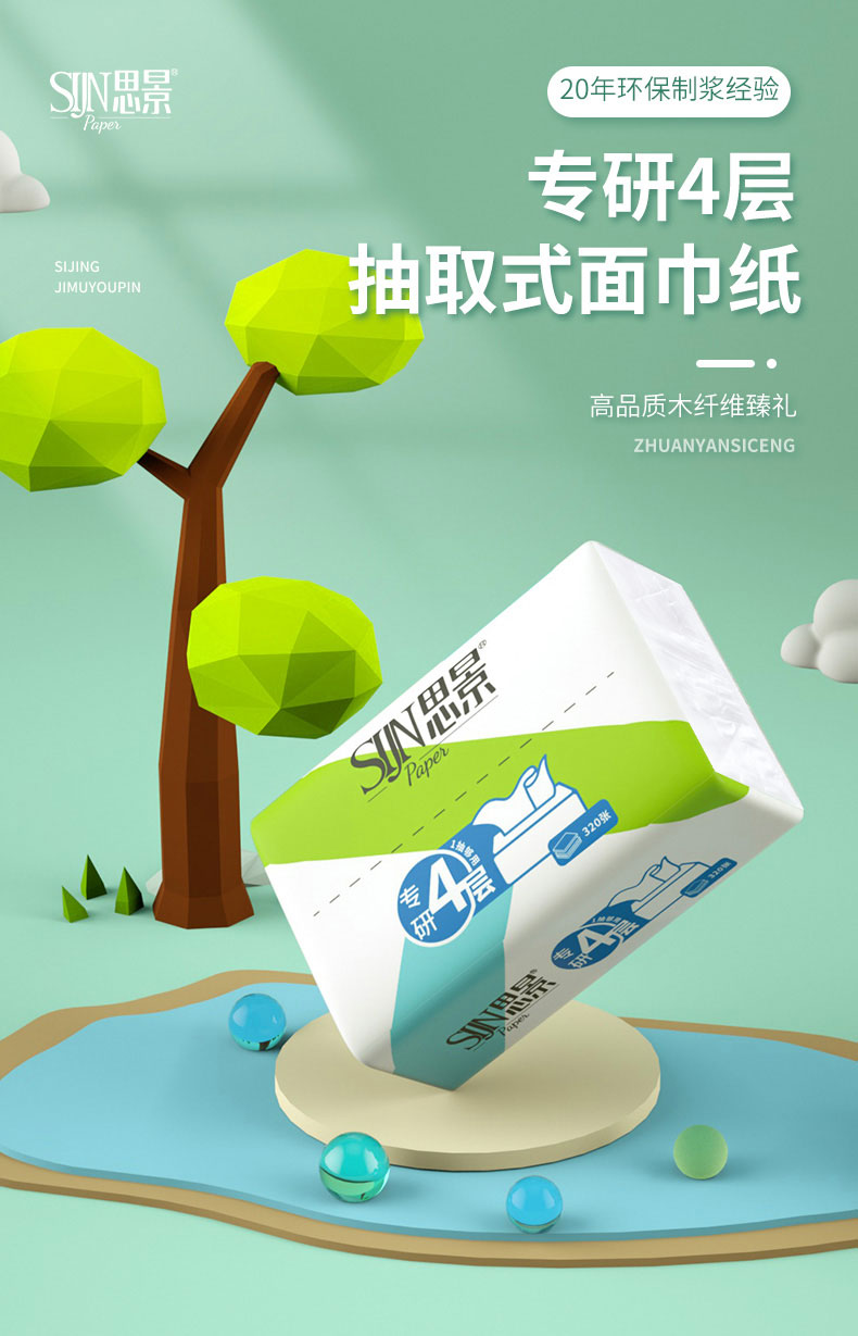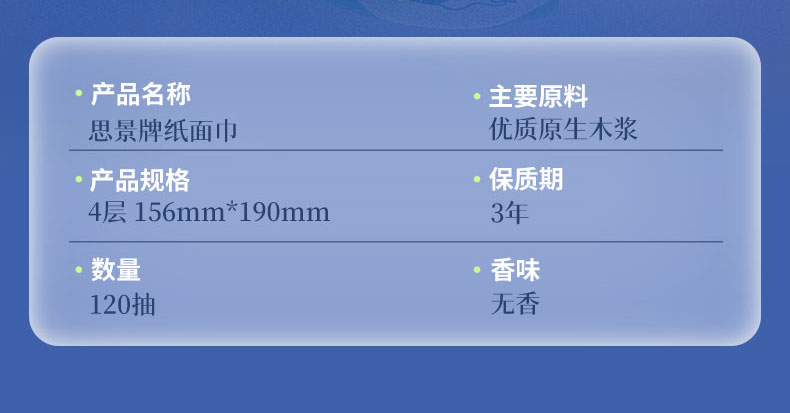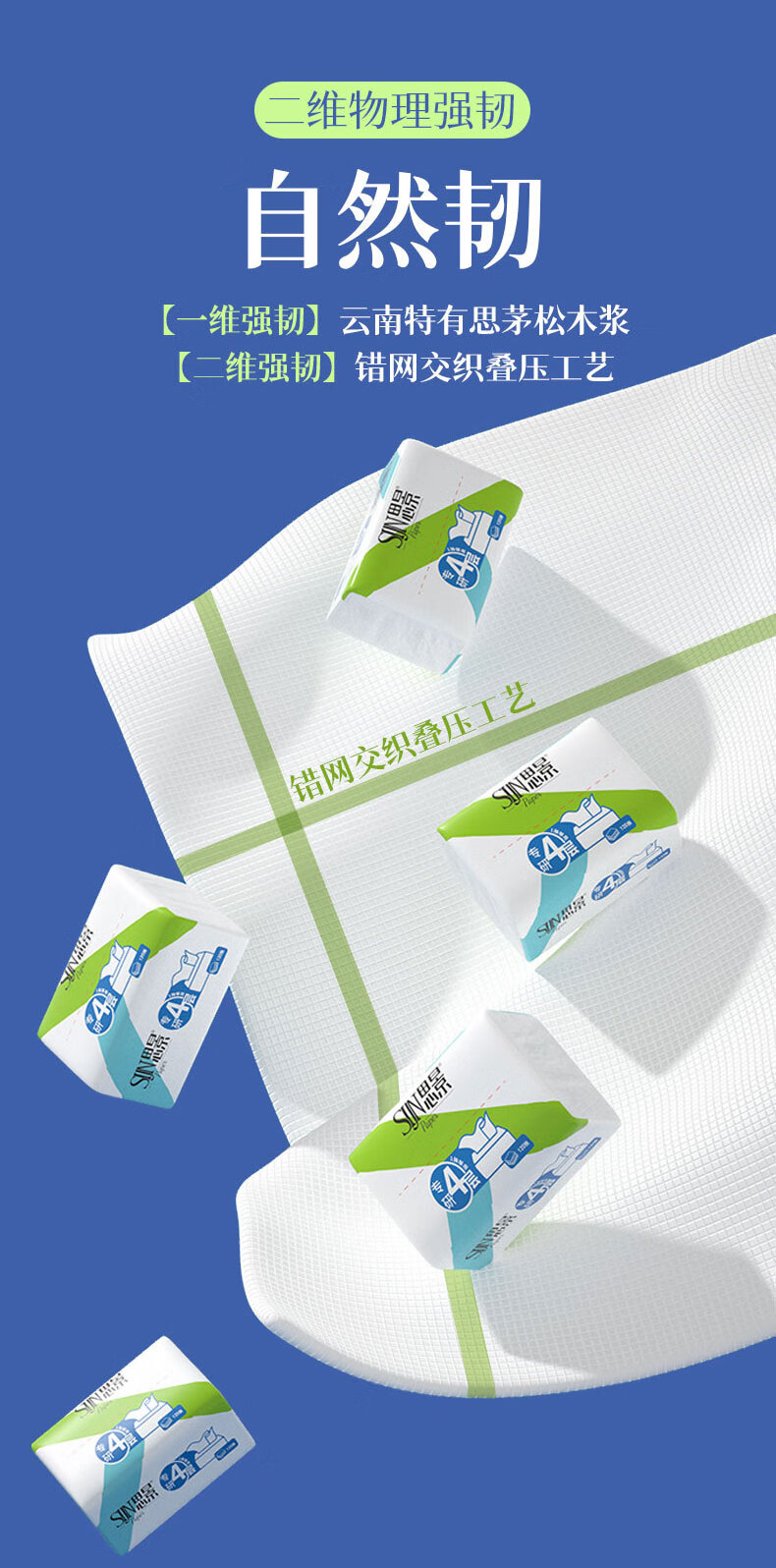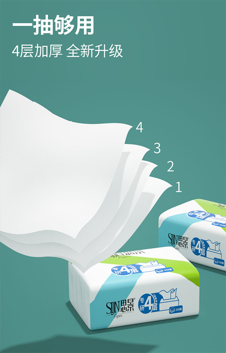 思景专研系列抽纸4层加厚18包纸巾经典无香家用抽纸学生实惠装大尺寸 抽纸 4层 80抽*18包 整箱装