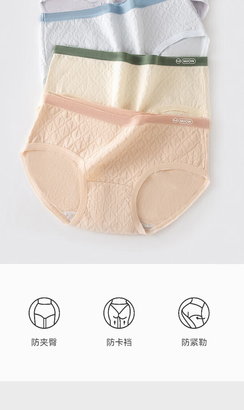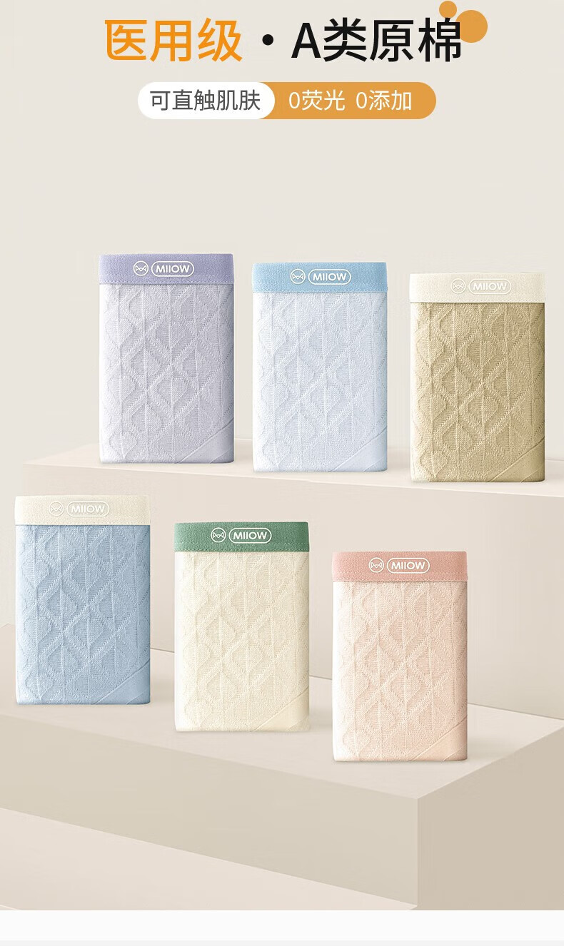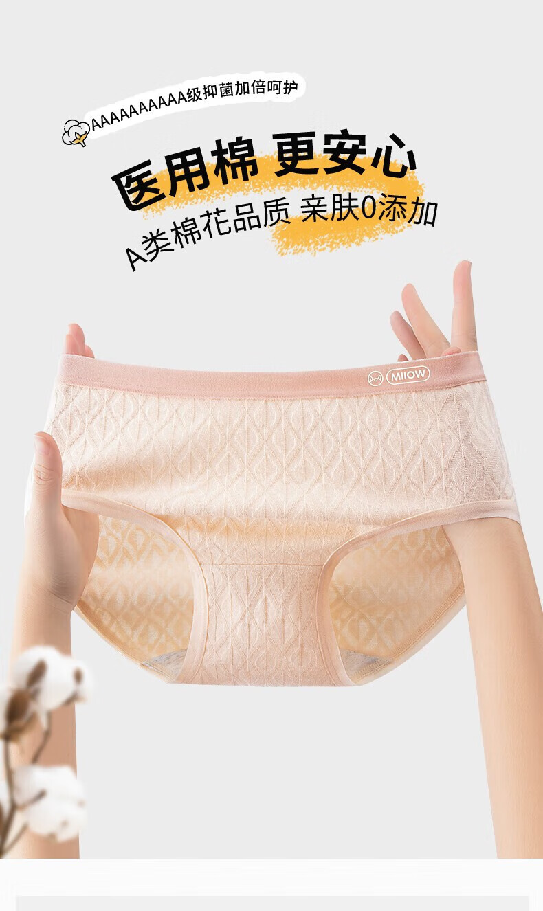 猫人(MiiOW)纯棉内裤女内裤全棉裆新款A类医用级中腰少女纯棉三角裤 【3条装】云粉+浅蓝+奶杏 XL 【115-135斤】