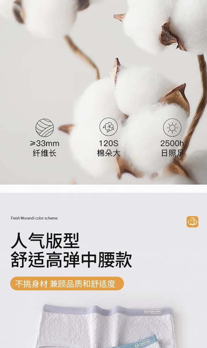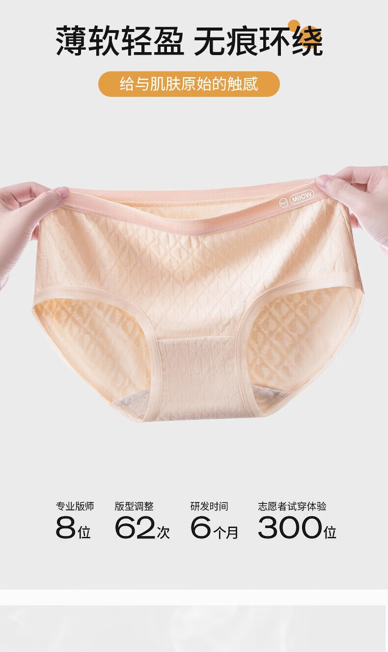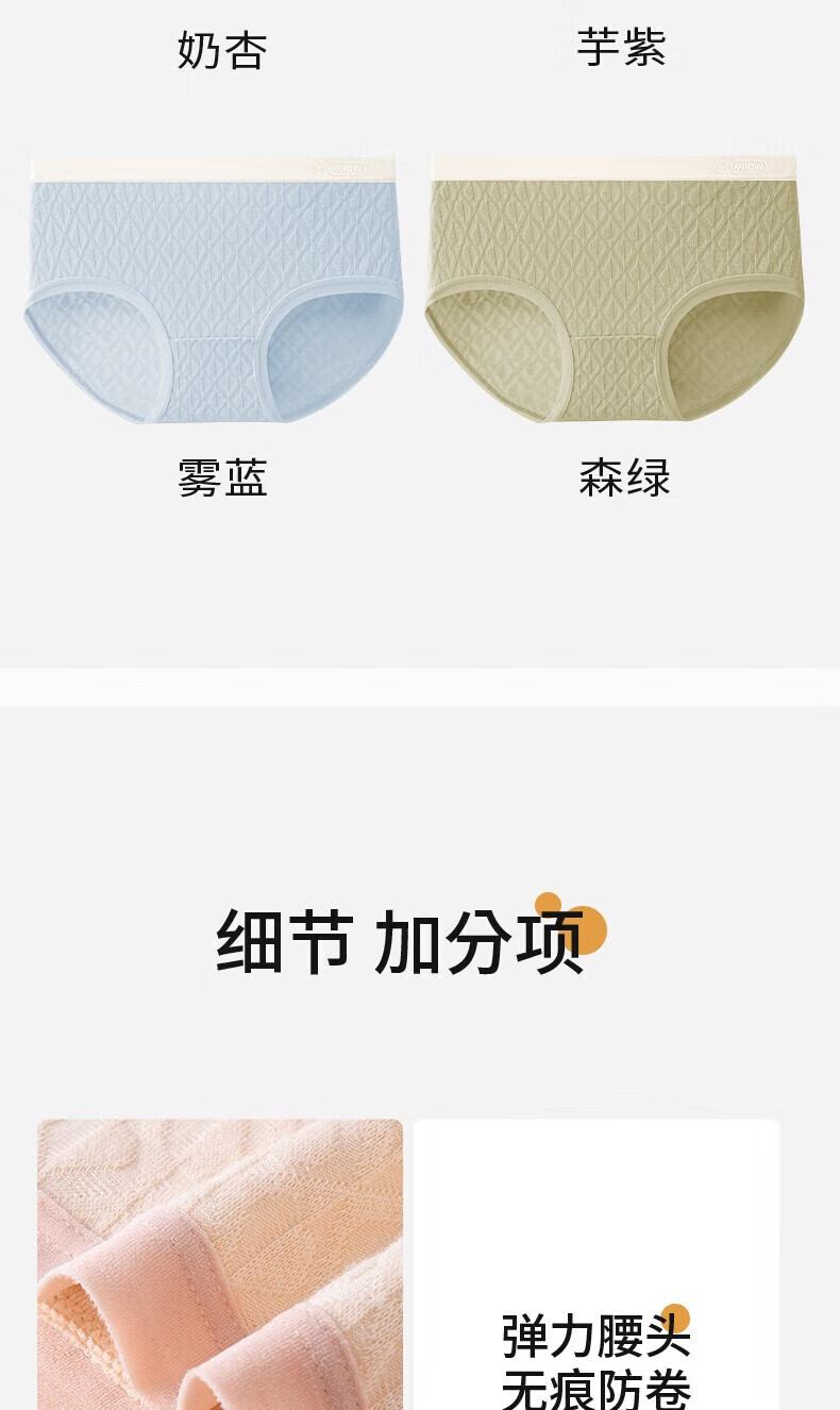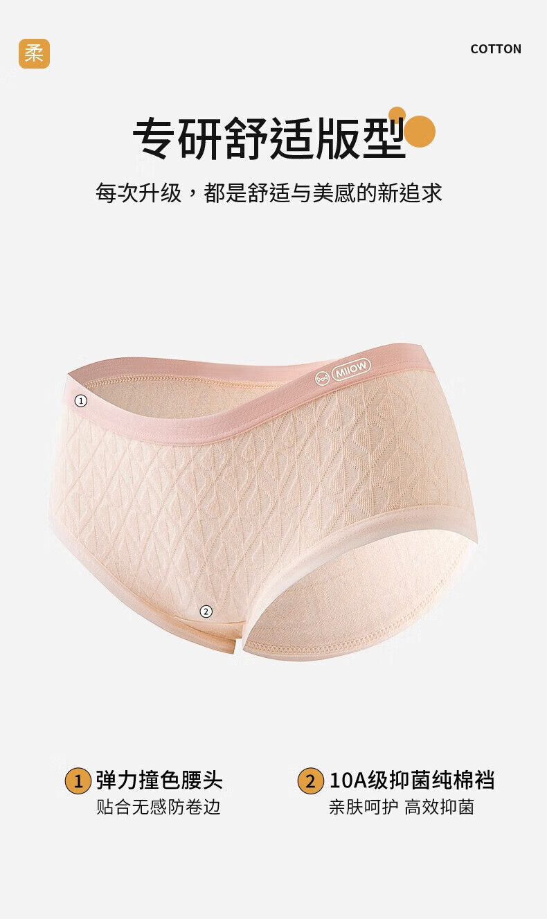 猫人(MiiOW)纯棉内裤女内裤全棉裆新款A类医用级中腰少女纯棉三角裤 【3条装】云粉+浅蓝+奶杏 XL 【115-135斤】