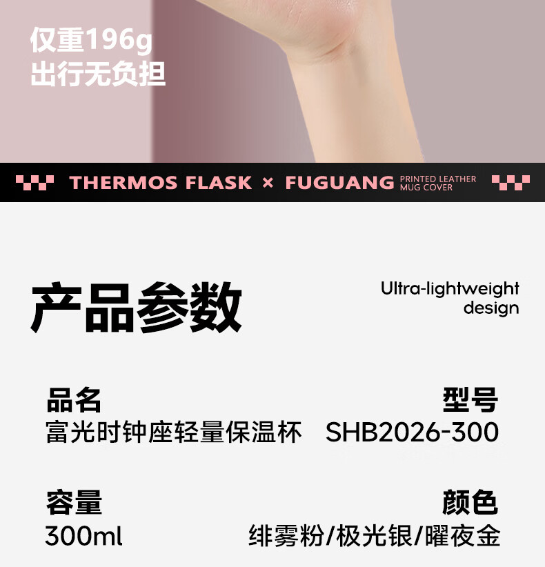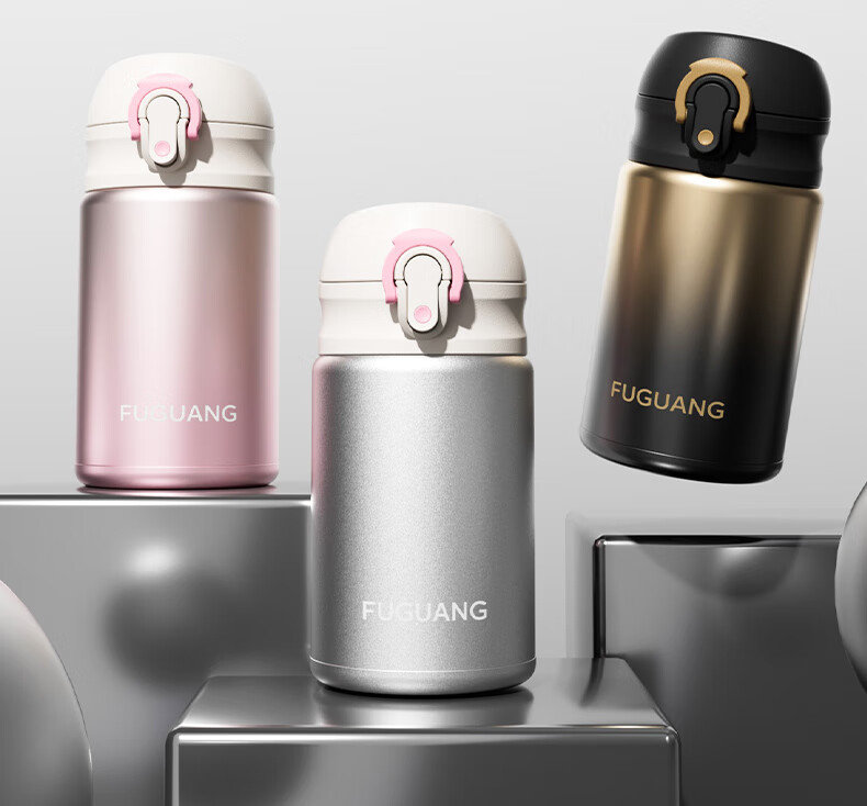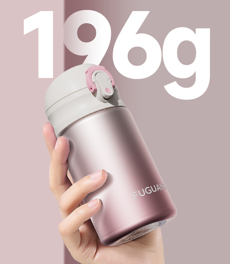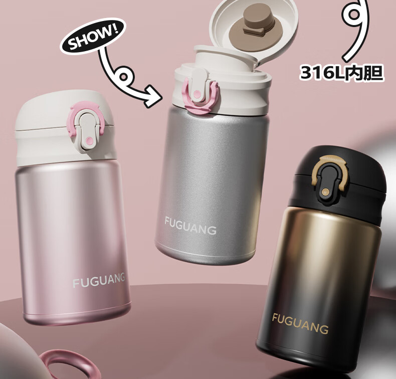 富光保温杯男女生便携可爱学生316L不锈钢小巧儿童弹盖直饮水杯子 菲雾粉300ml【316L内胆+抗菌硅胶】