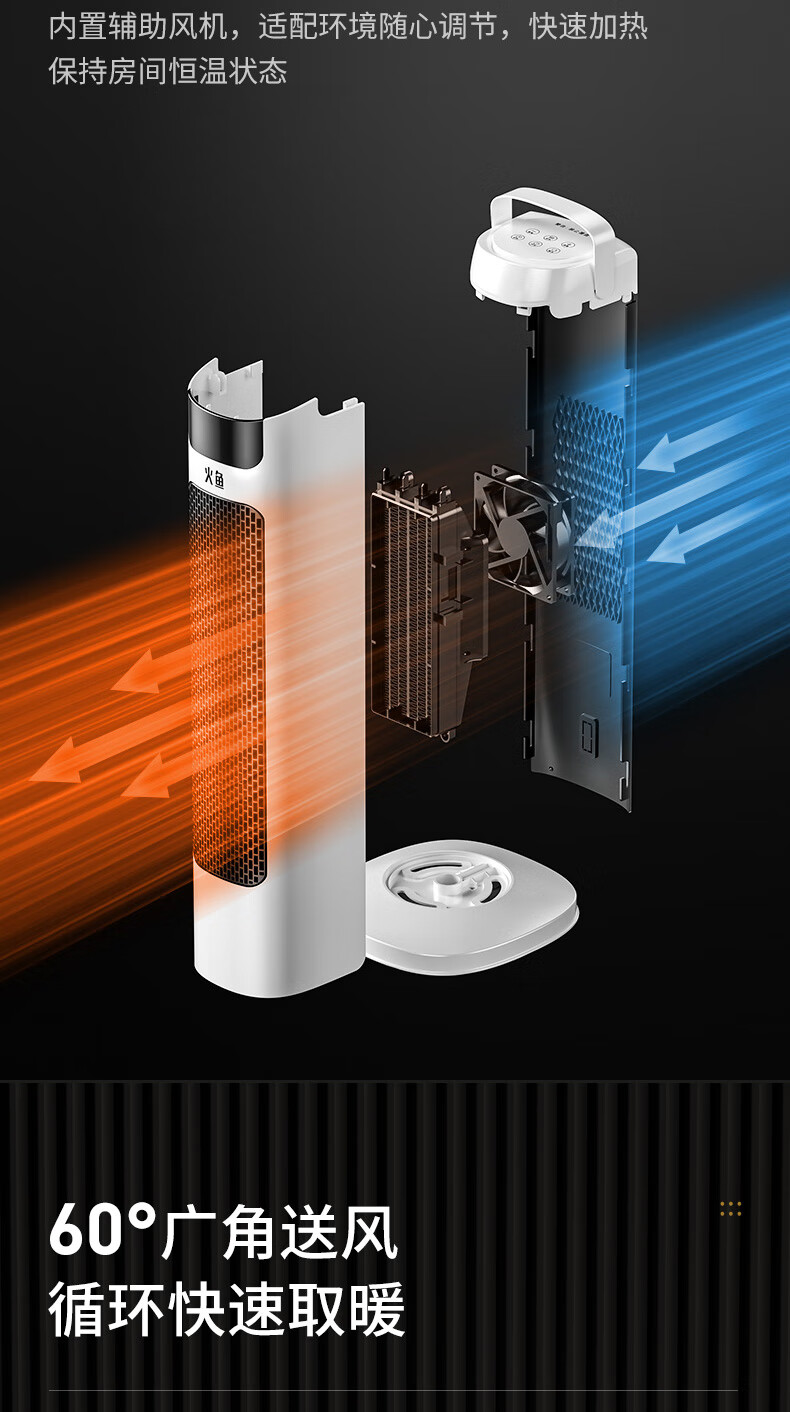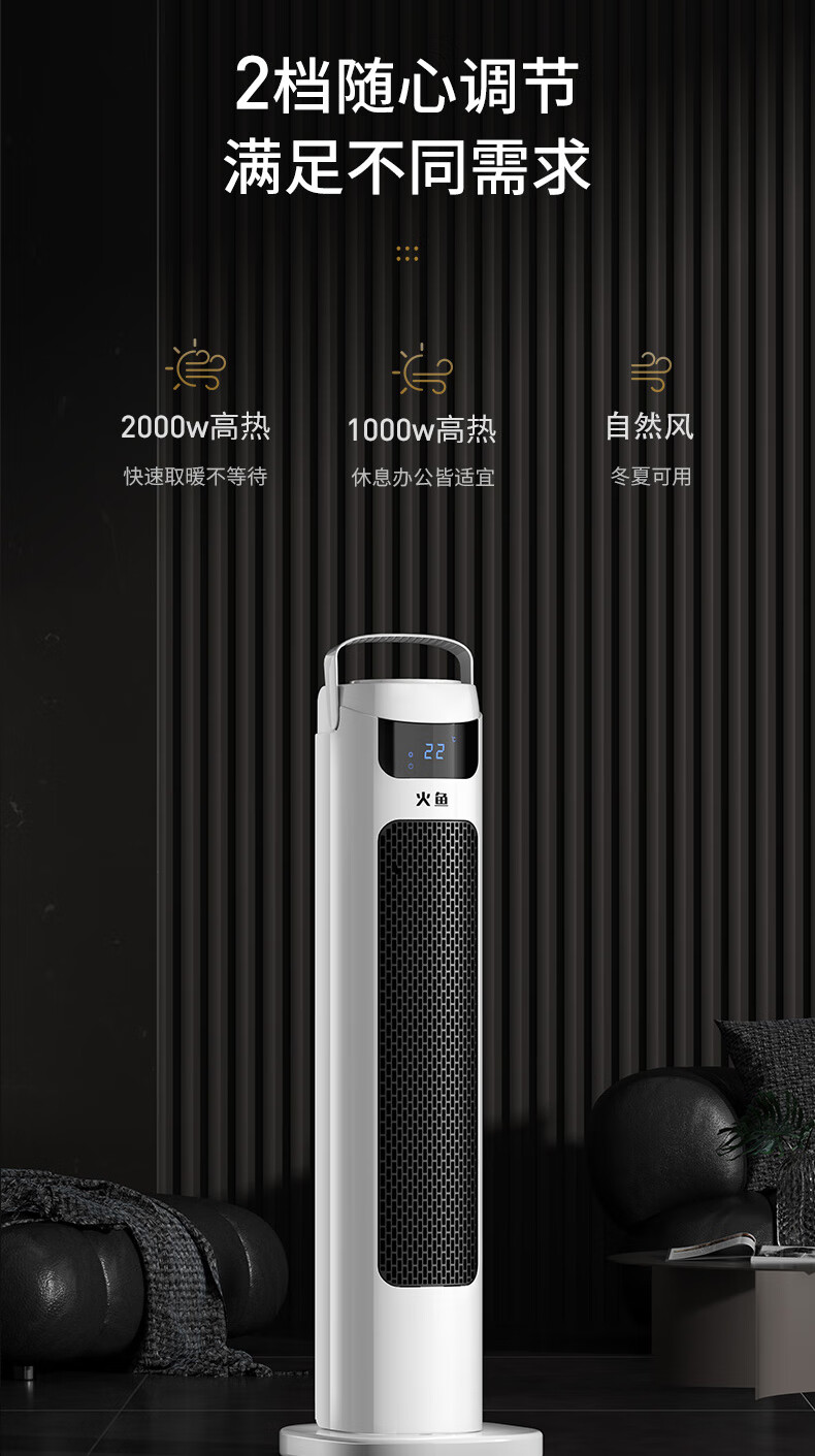 火鱼 取暖器家用暖风机立式电暖风浴室热风机冷暖风扇电暖气节能速热省电暖器卧室办公室无光烤火炉 机械款NSB-20J
