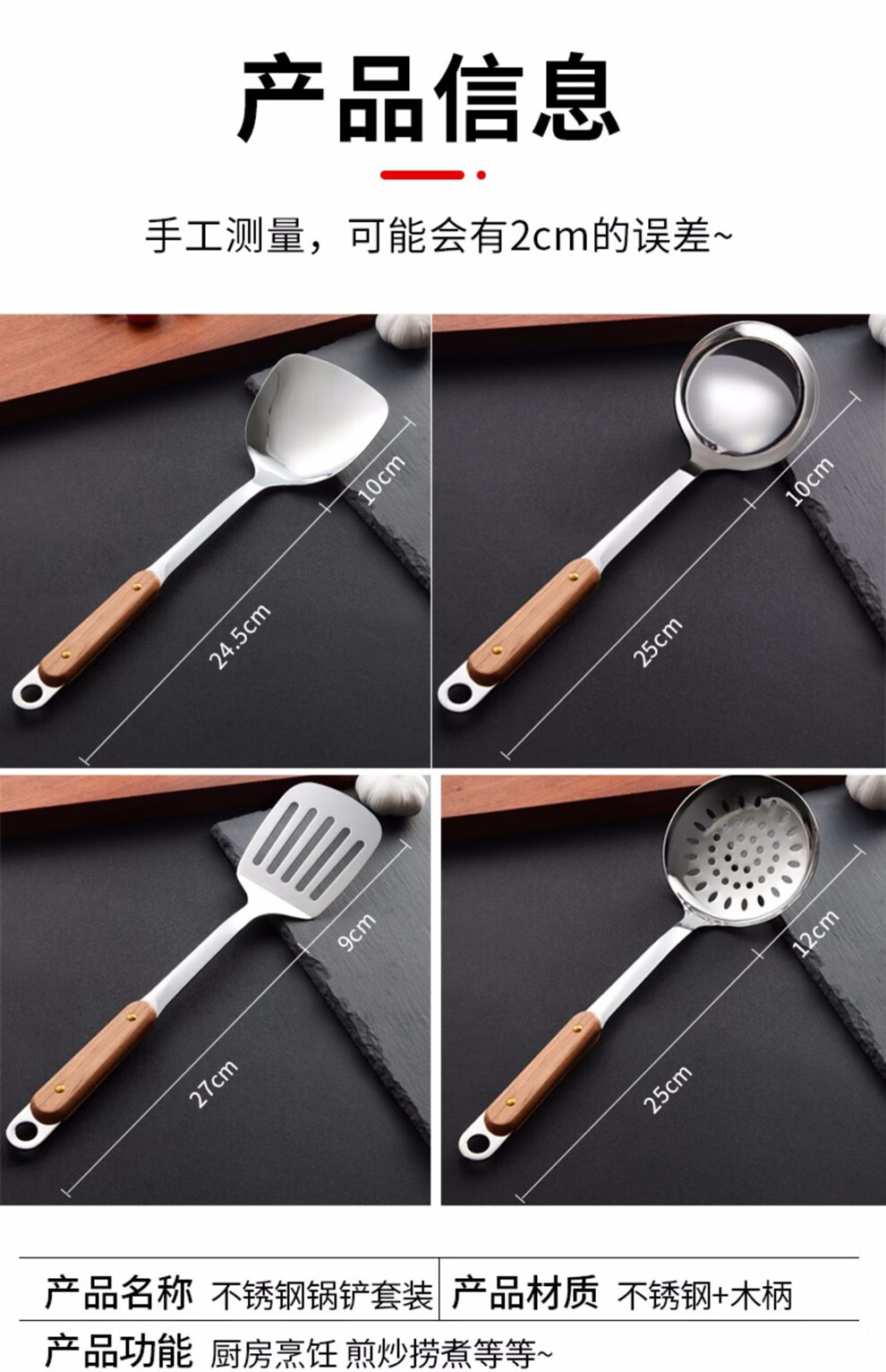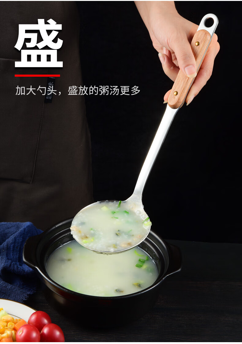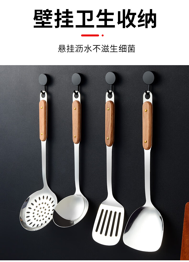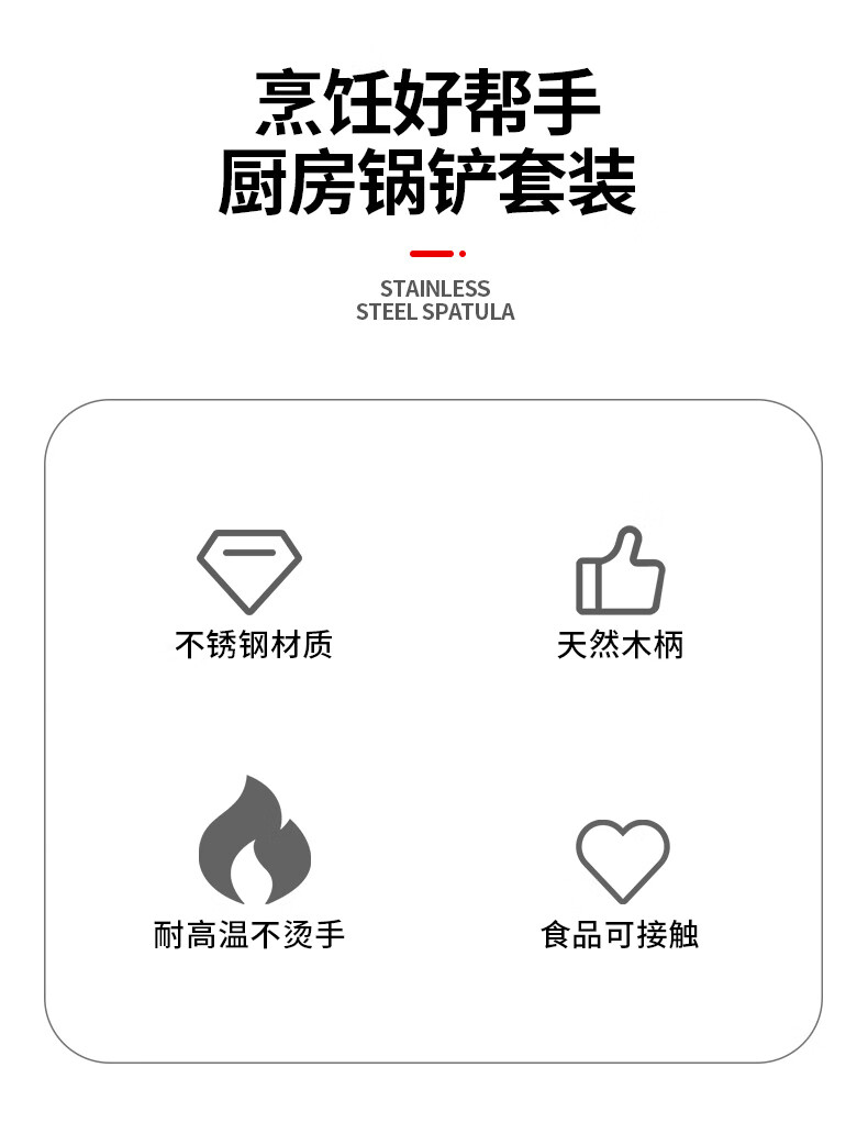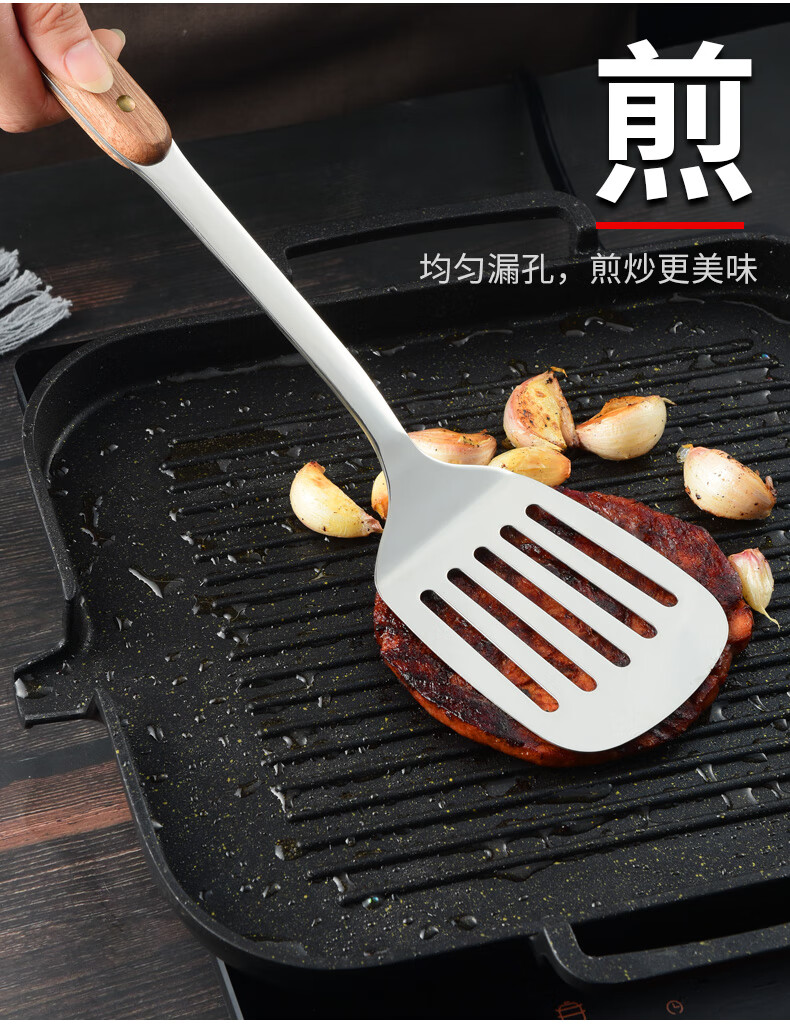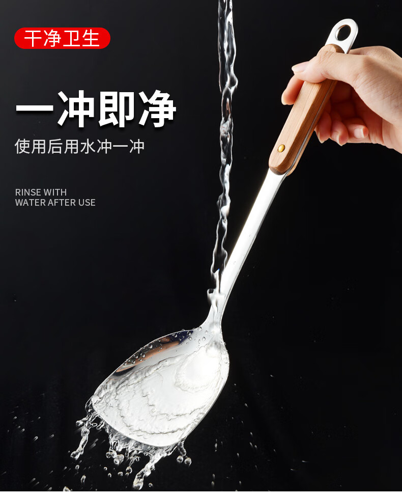 日禾盛唐锅铲炒菜铲子厨具不粘锅厨具汤勺子不锈钢铲炒勺铲勺厨房家用锅铲 木柄铲子