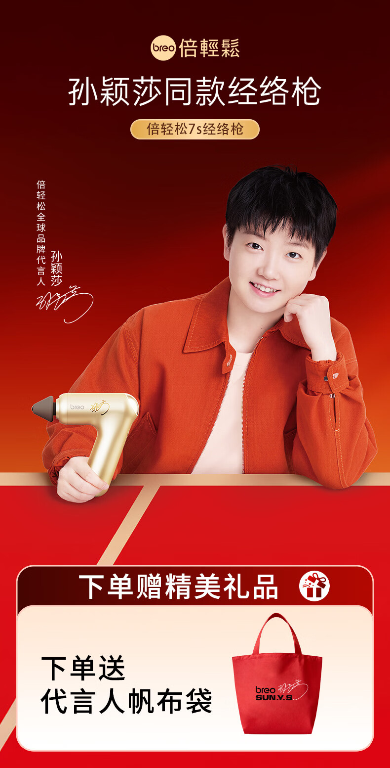 倍轻松(breo)【官方店】【孙颖莎签名款】筋膜枪7s官宣款多功能按摩器神器家用健身理疗仪 娃娃生日新年礼物 筋膜枪7s官宣款