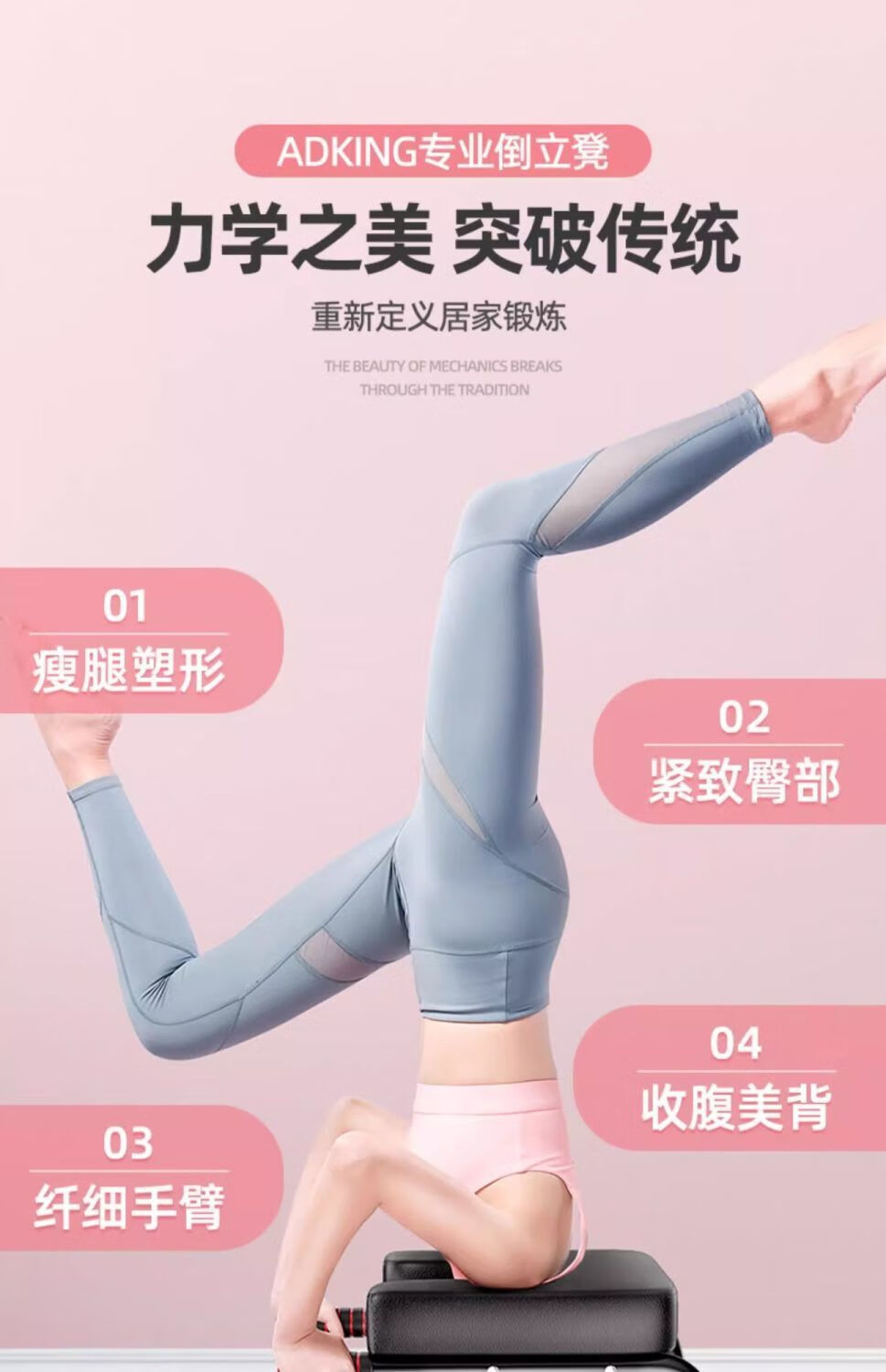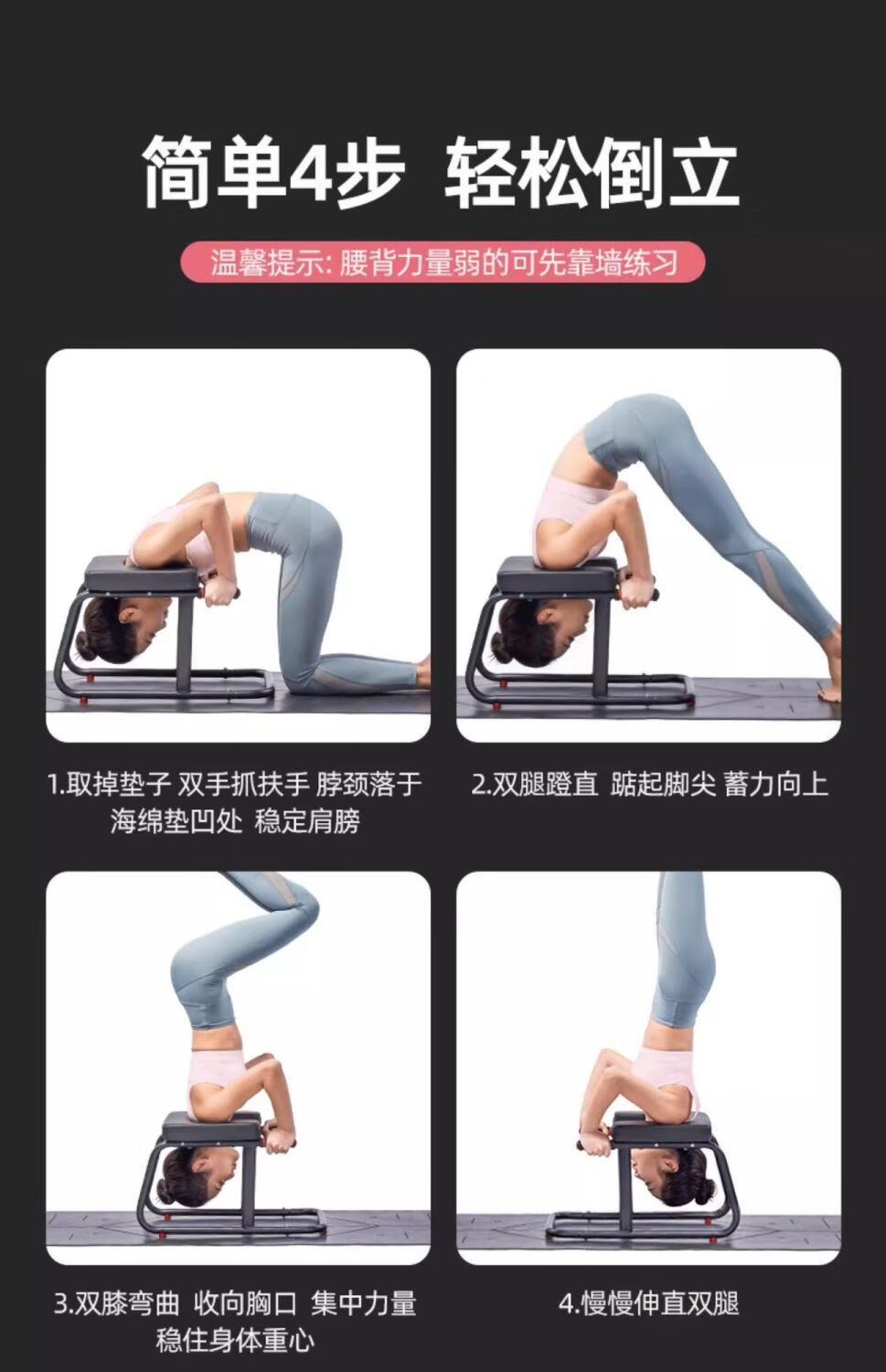 瑜伽倒立椅 倒立神器家用倒立凳同款倒立凳可折叠新手健身瑜伽 (标准黑)加厚脚管+精选钢架