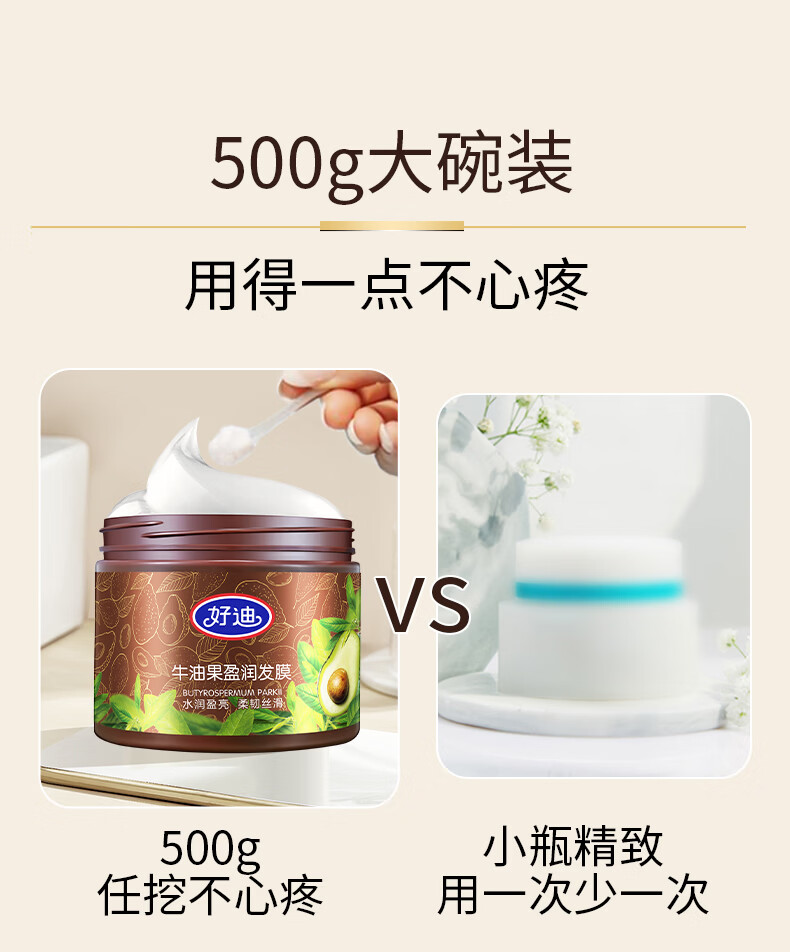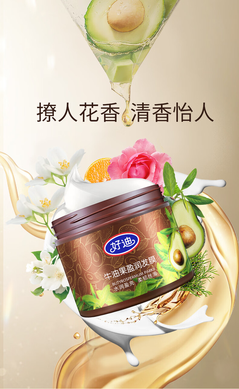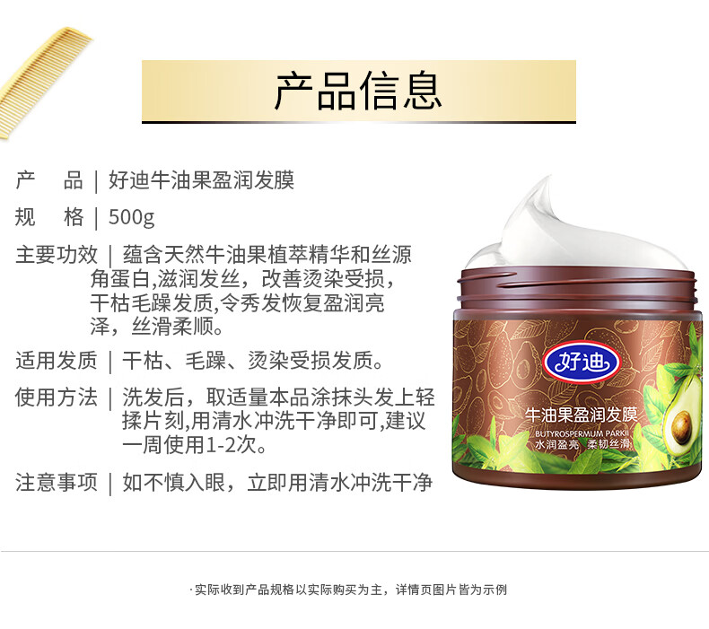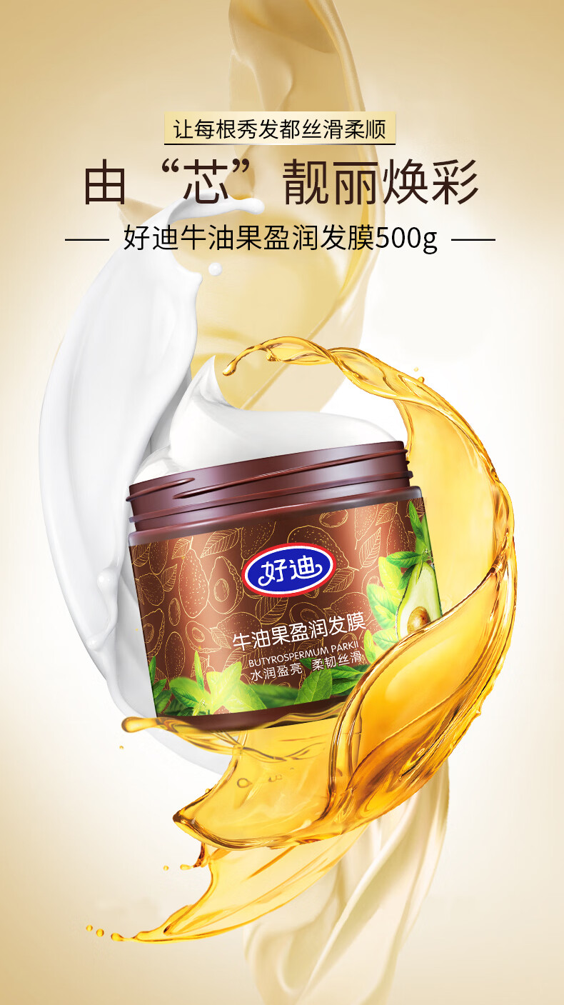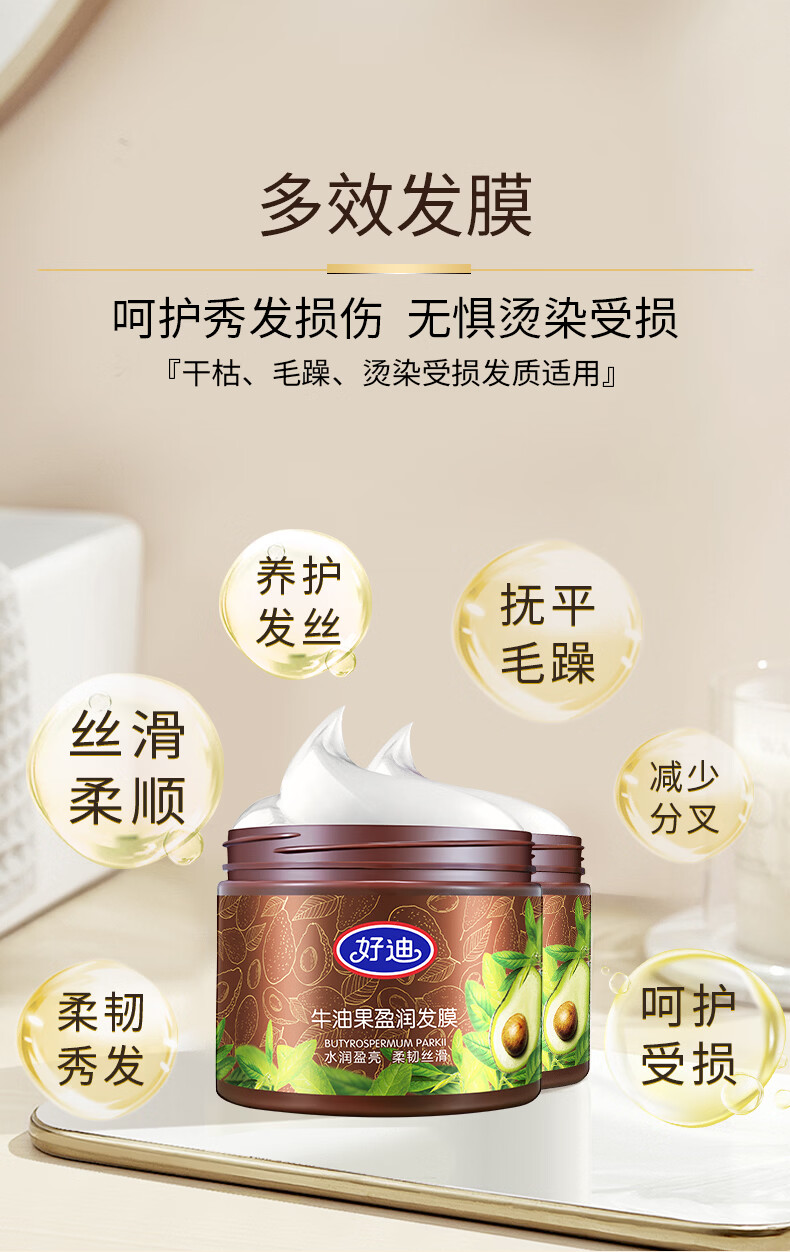 好迪牛油果发膜500g*2瓶免蒸滋润护发素好迪发膜柔顺丝滑正品国货 牛油果发膜500g2瓶