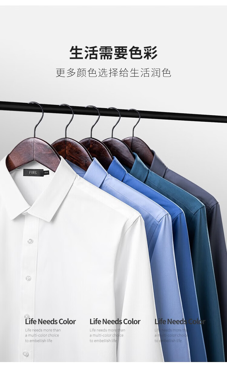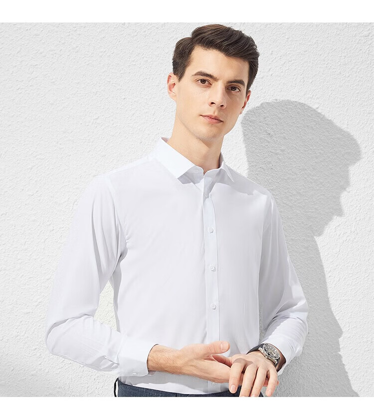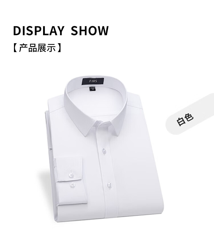 杉杉(FIRS)衬衫男长袖四季款轻商务休闲上衣抗皱易打理通勤白色衬衣男士 白色 S 165/84A(38)