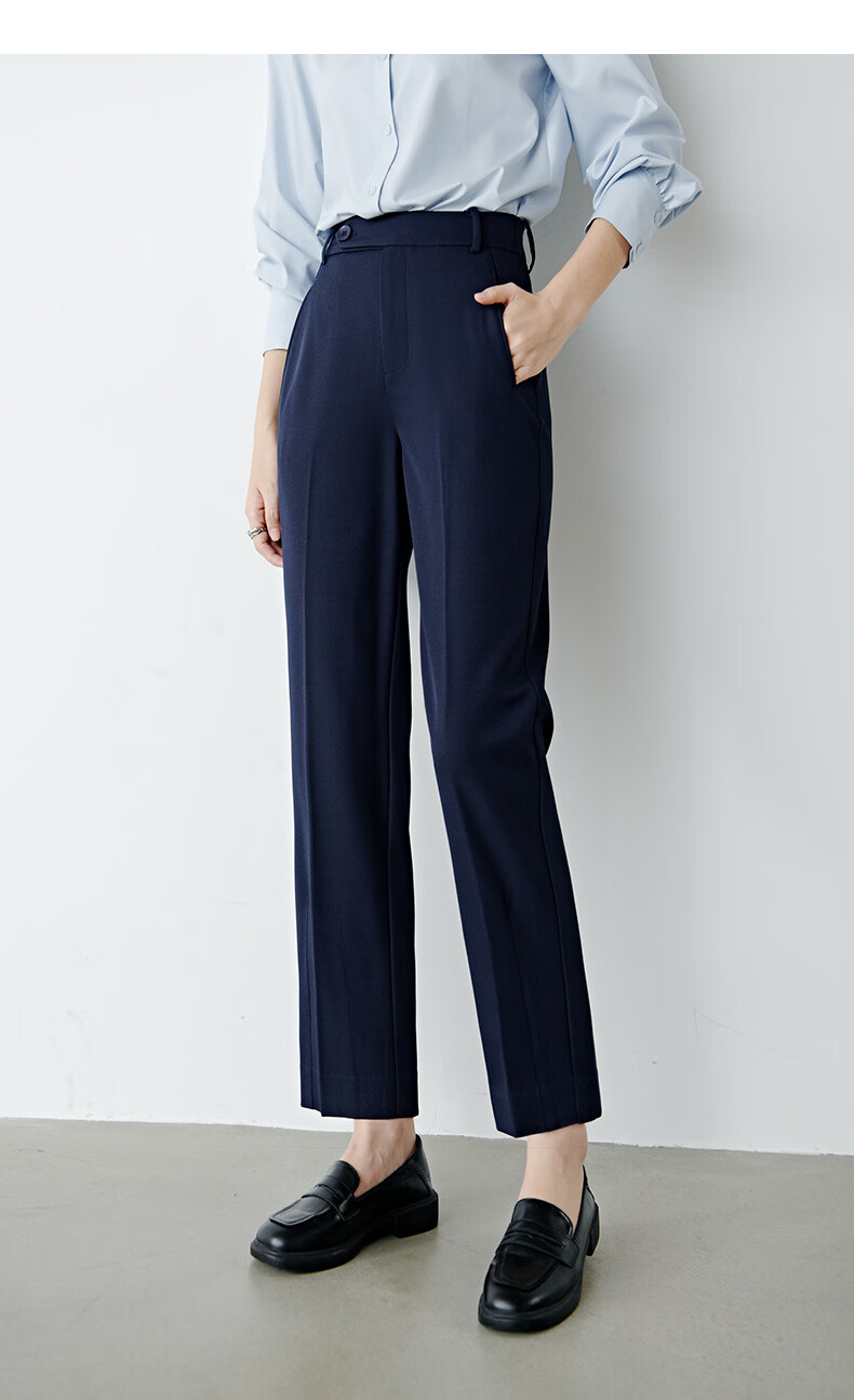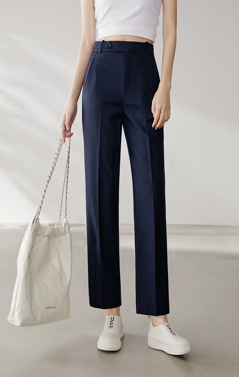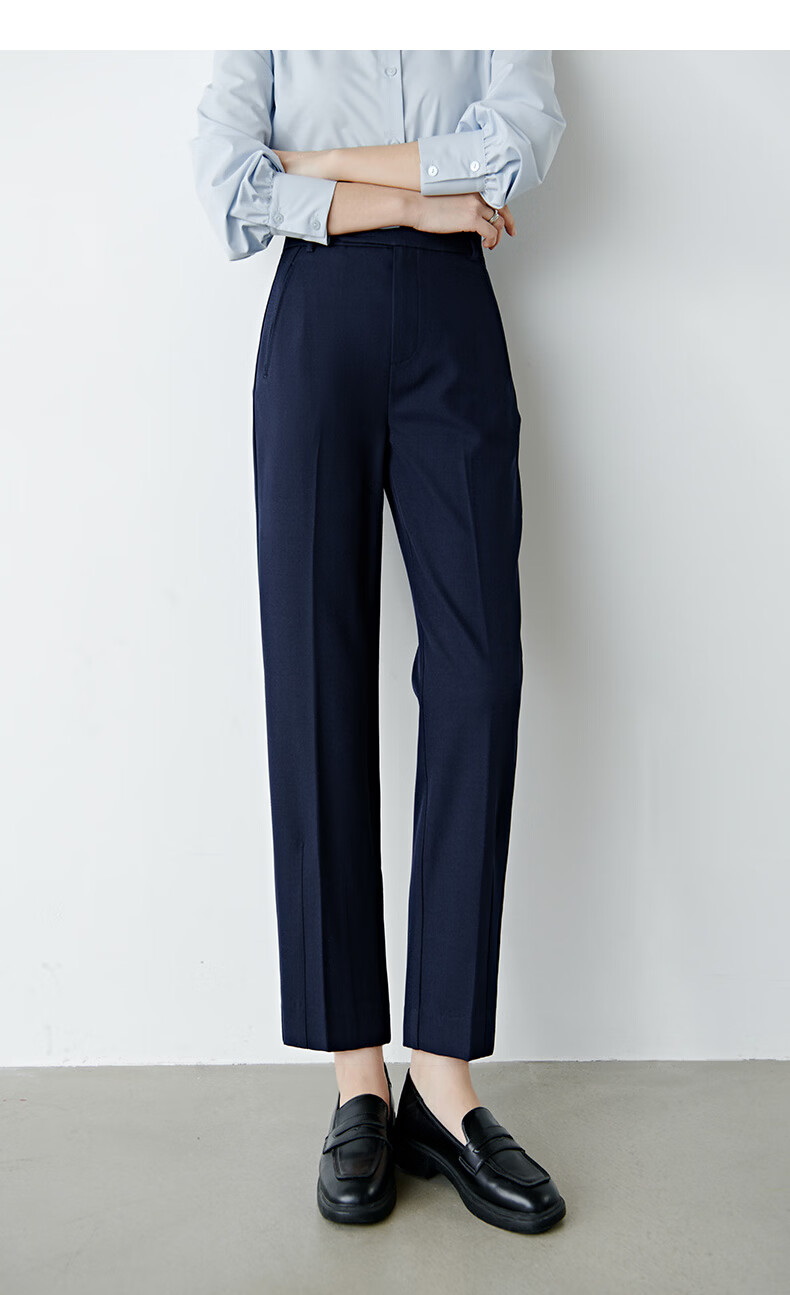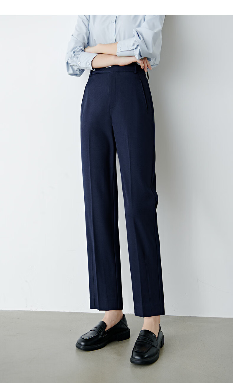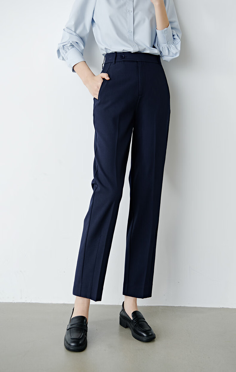 晚白【新品】2026春款经典高腰裤子挺括利落气质通勤窄版直筒裤女 深蓝色 28
