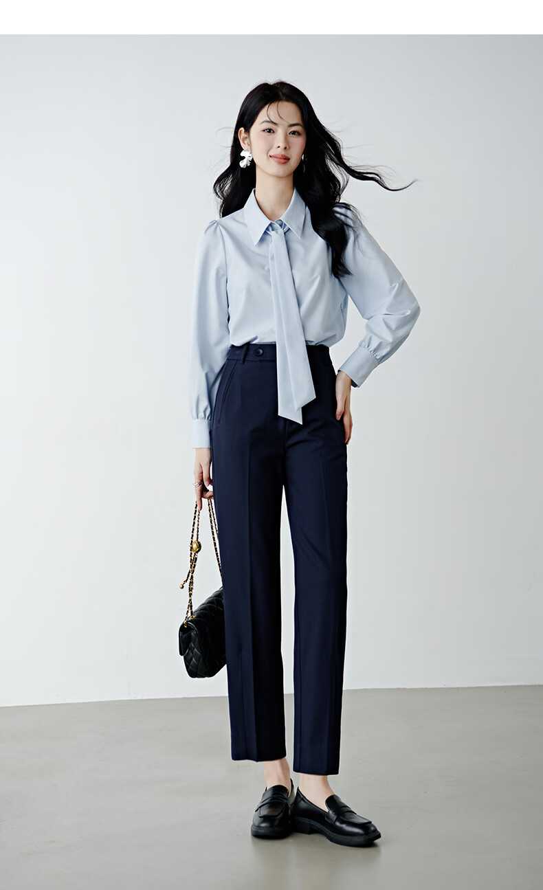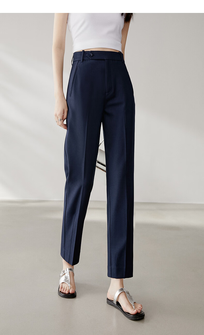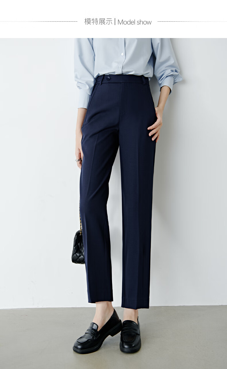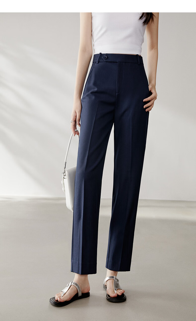 晚白【新品】2026春款经典高腰裤子挺括利落气质通勤窄版直筒裤女 深蓝色 28