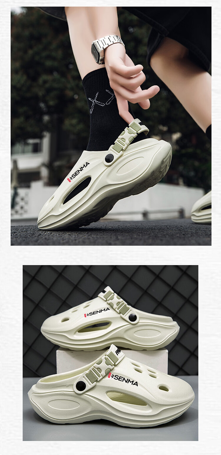 森馬凉鞋男2026夏季外穿厚底篮球运动包头洞洞鞋男款防滑大码沙滩凉拖 柠檬绿【基础款】 38-39 现货秒发