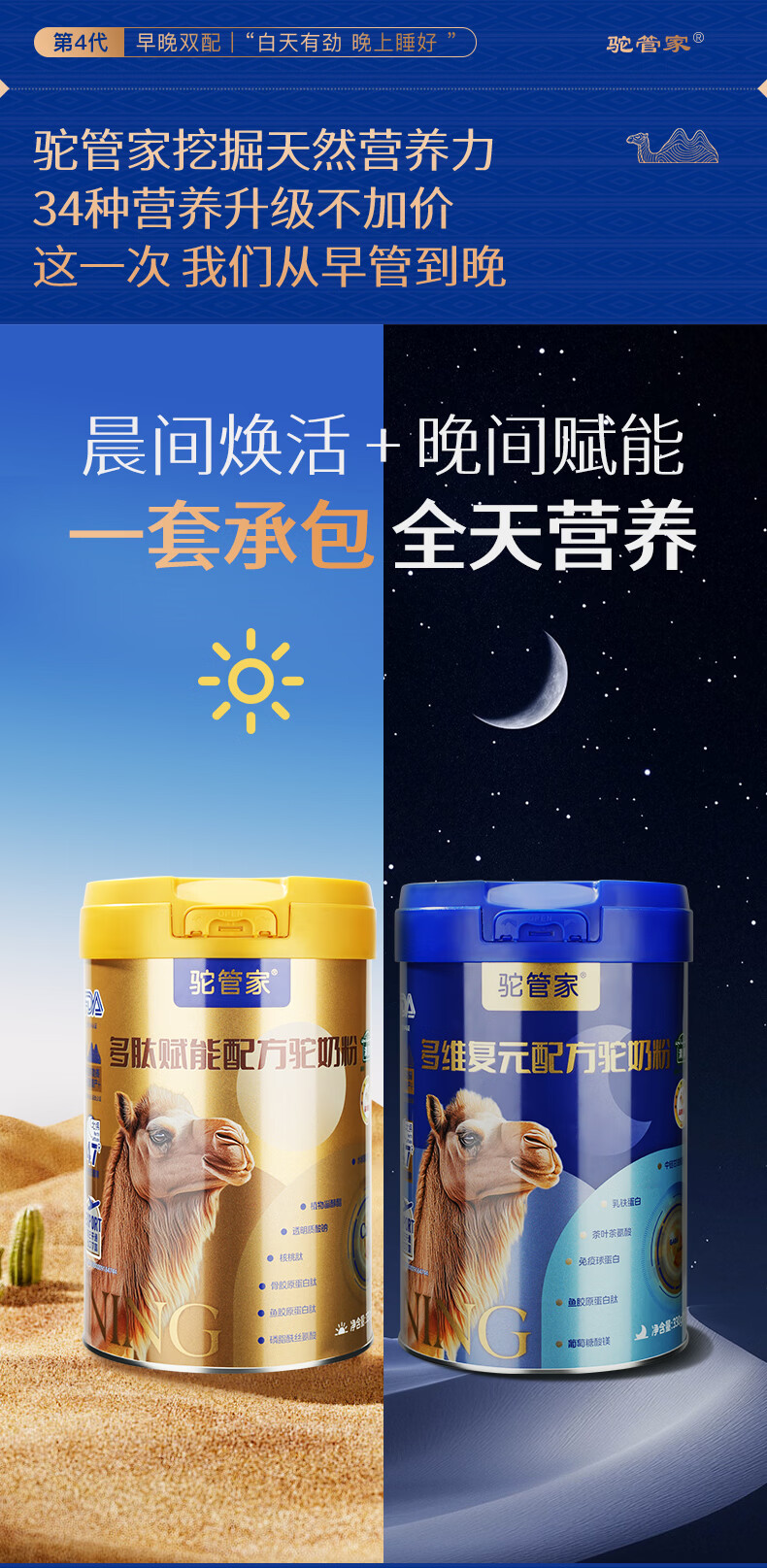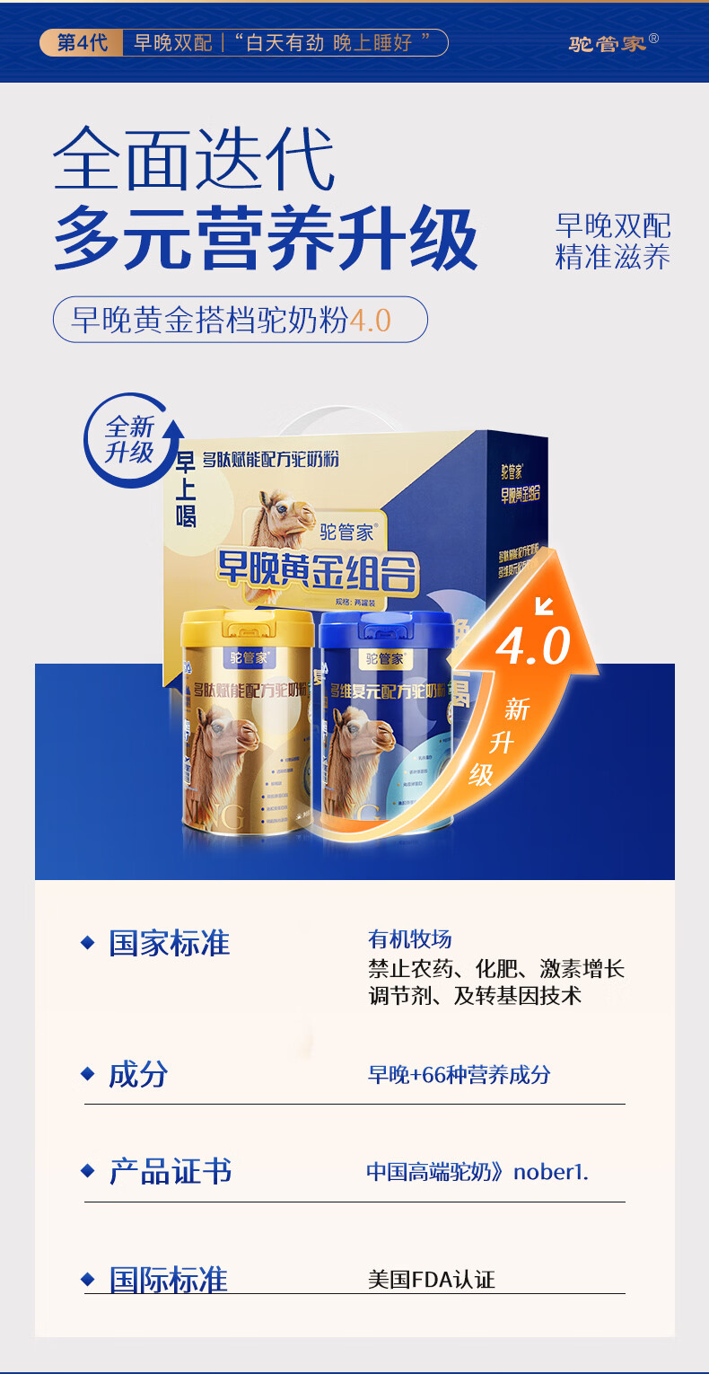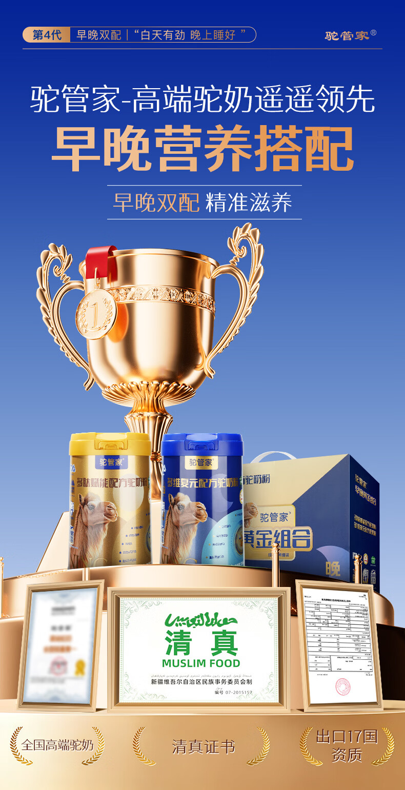 驼管家新疆正宗驼奶粉早晚中老年骆驼奶乳粉无蔗糖高钙奶粉营养品驼奶粉 【2罐*330g礼盒装】限时试喝4条+饼干【90天不满意退】