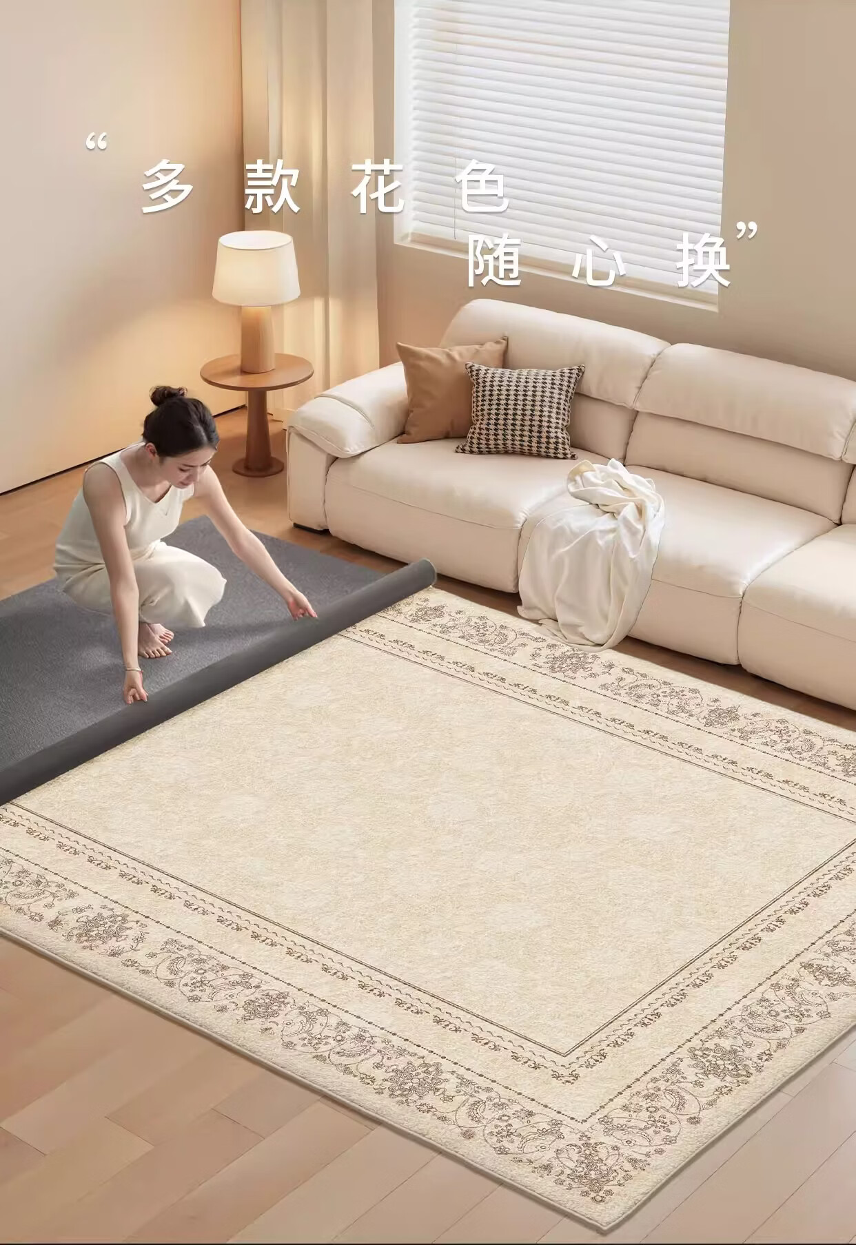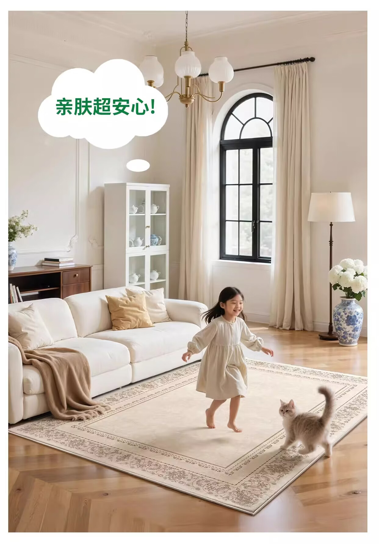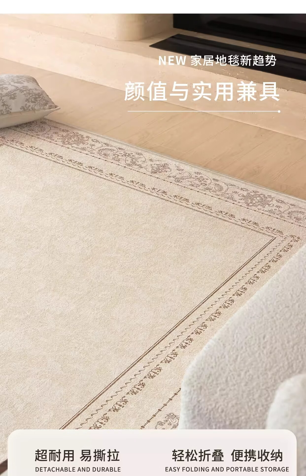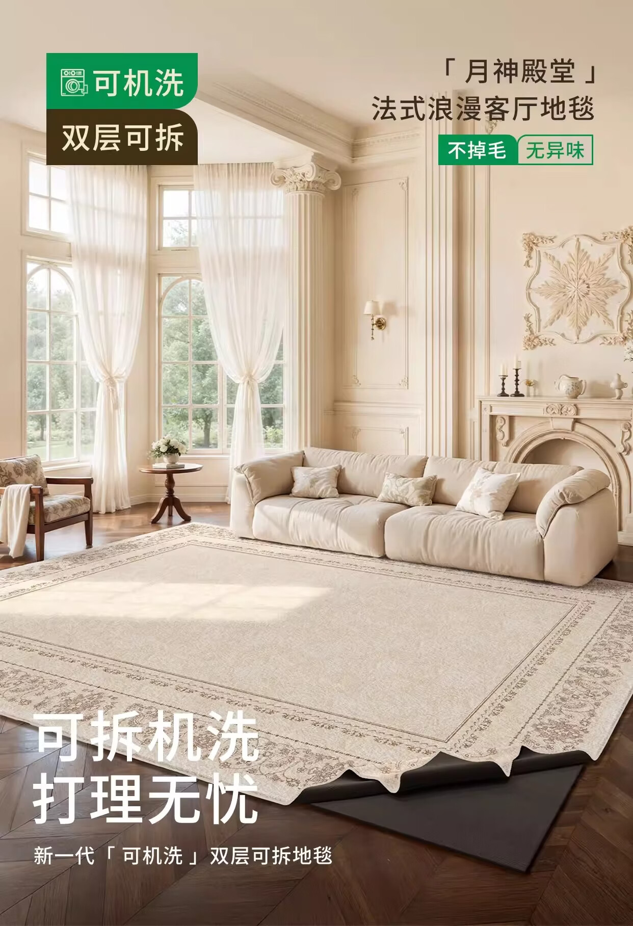 著忆可拆洗地毯客厅2026新款卧室床边沙发可机洗地垫轻奢高级法式奶油 可拆洗仿羊绒-月神殿堂 定制请联系客服,不退不换