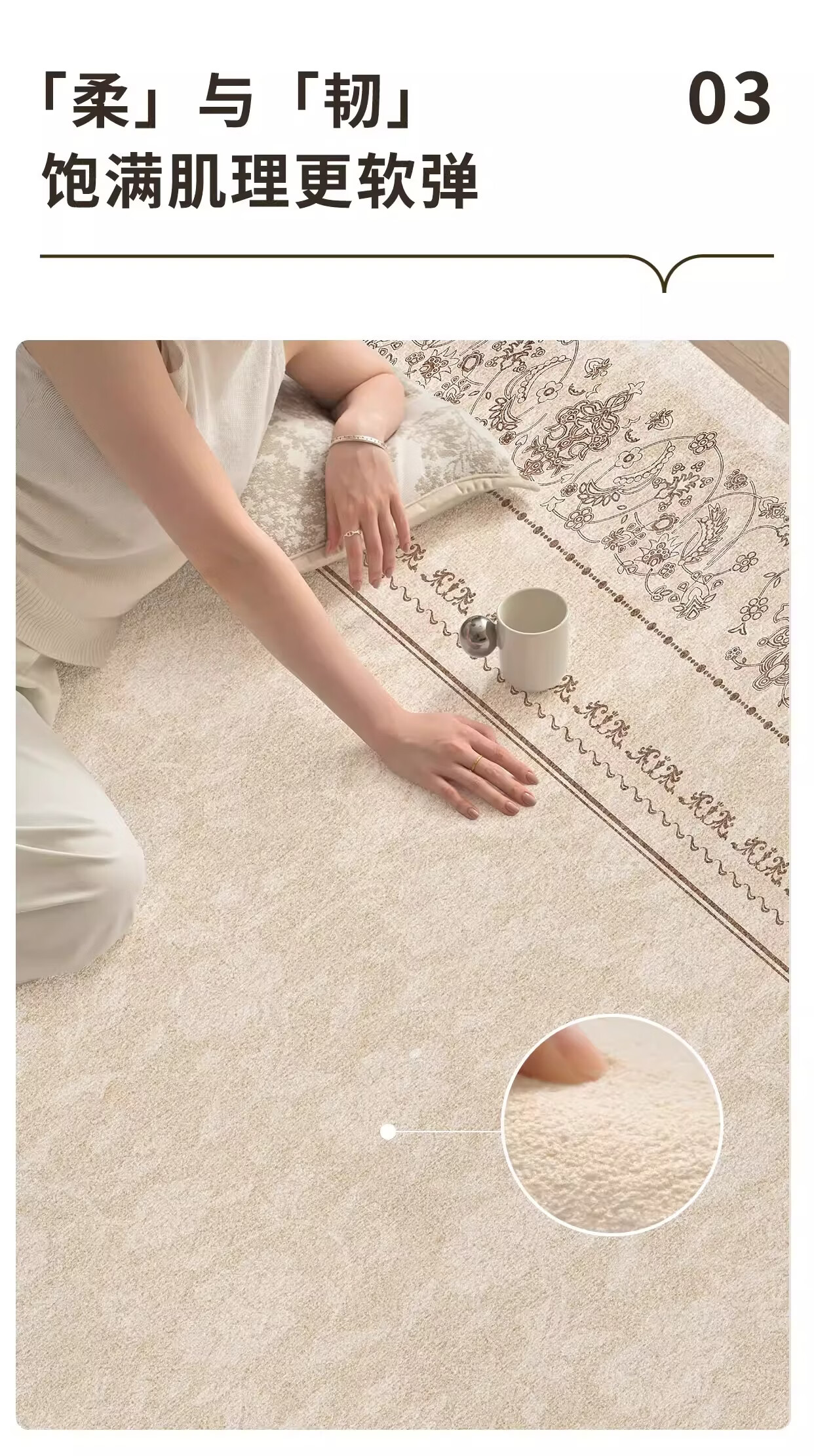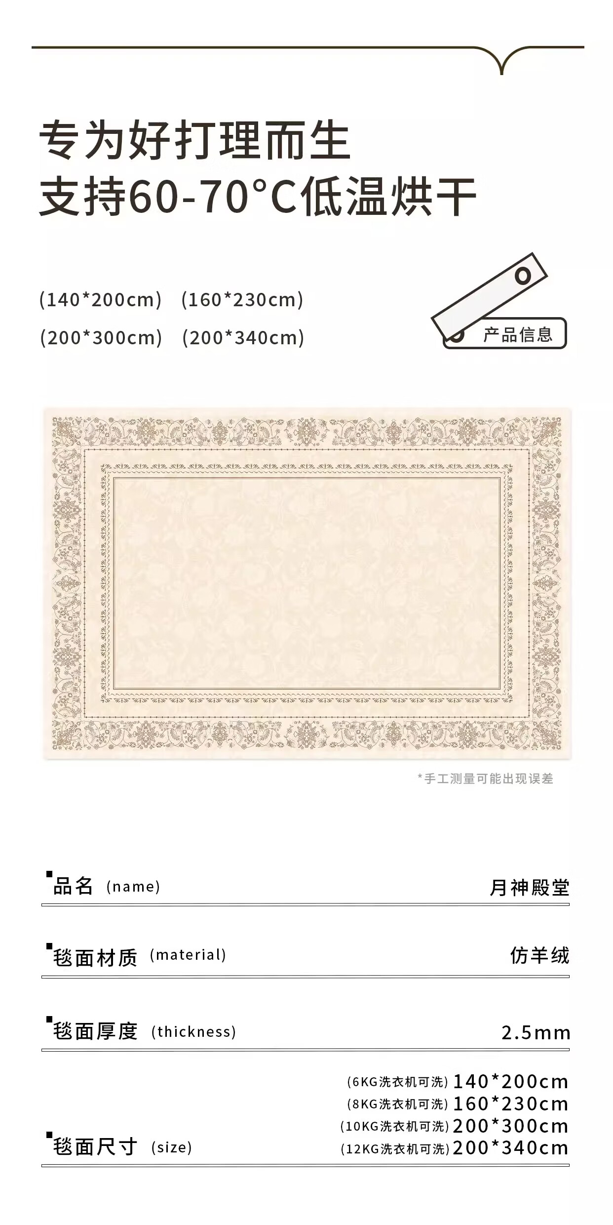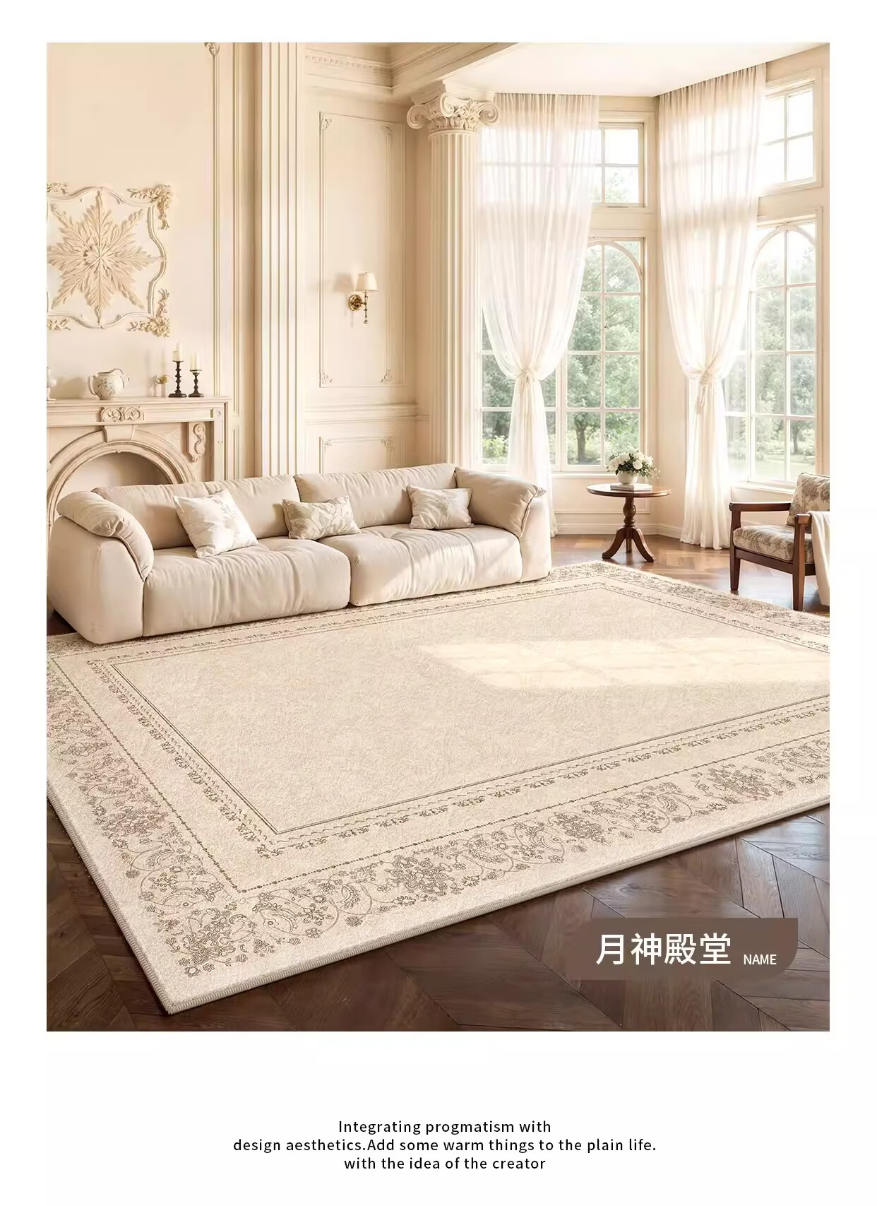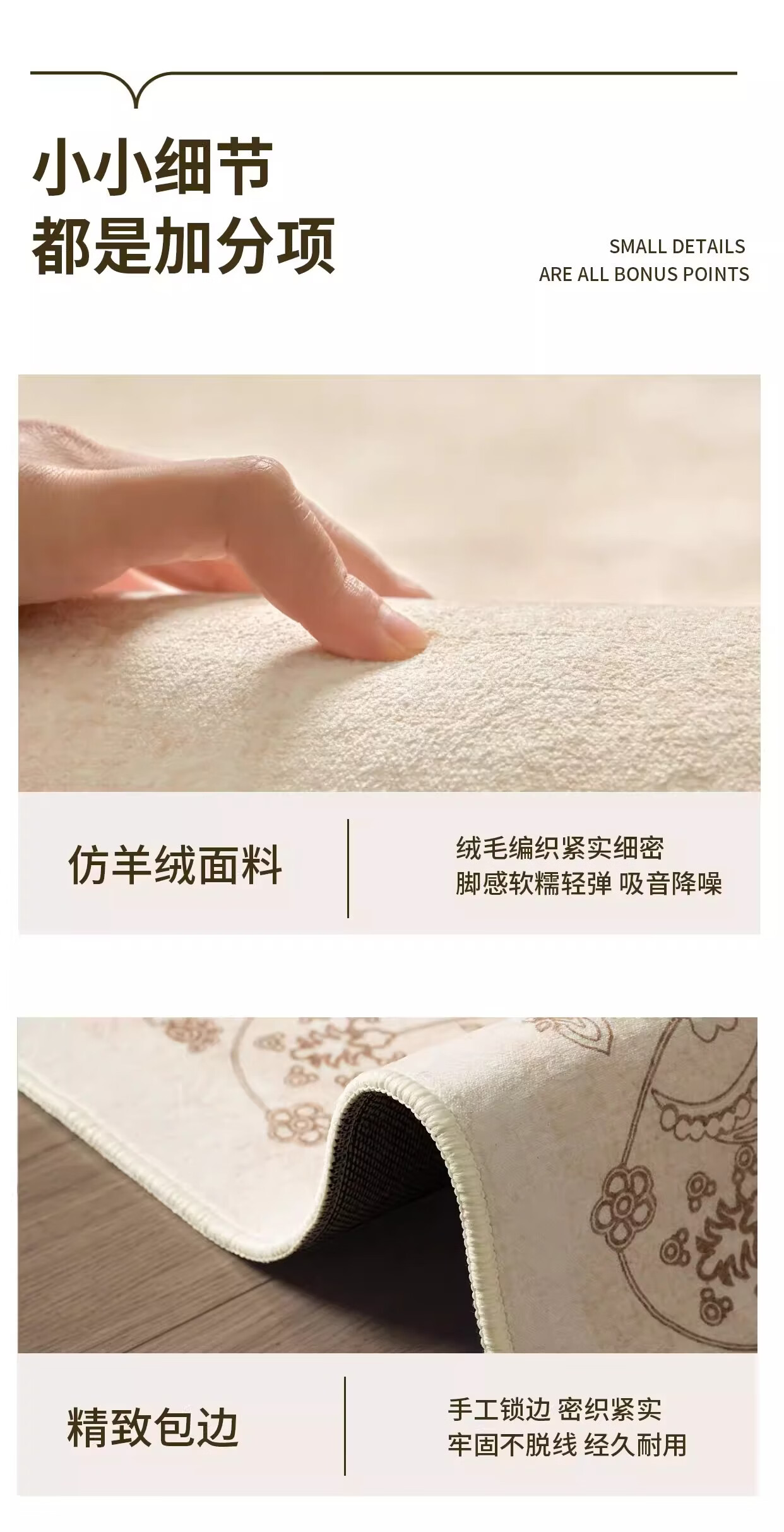 著忆可拆洗地毯客厅2026新款卧室床边沙发可机洗地垫轻奢高级法式奶油 可拆洗仿羊绒-月神殿堂 定制请联系客服,不退不换