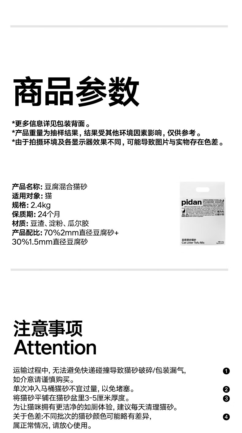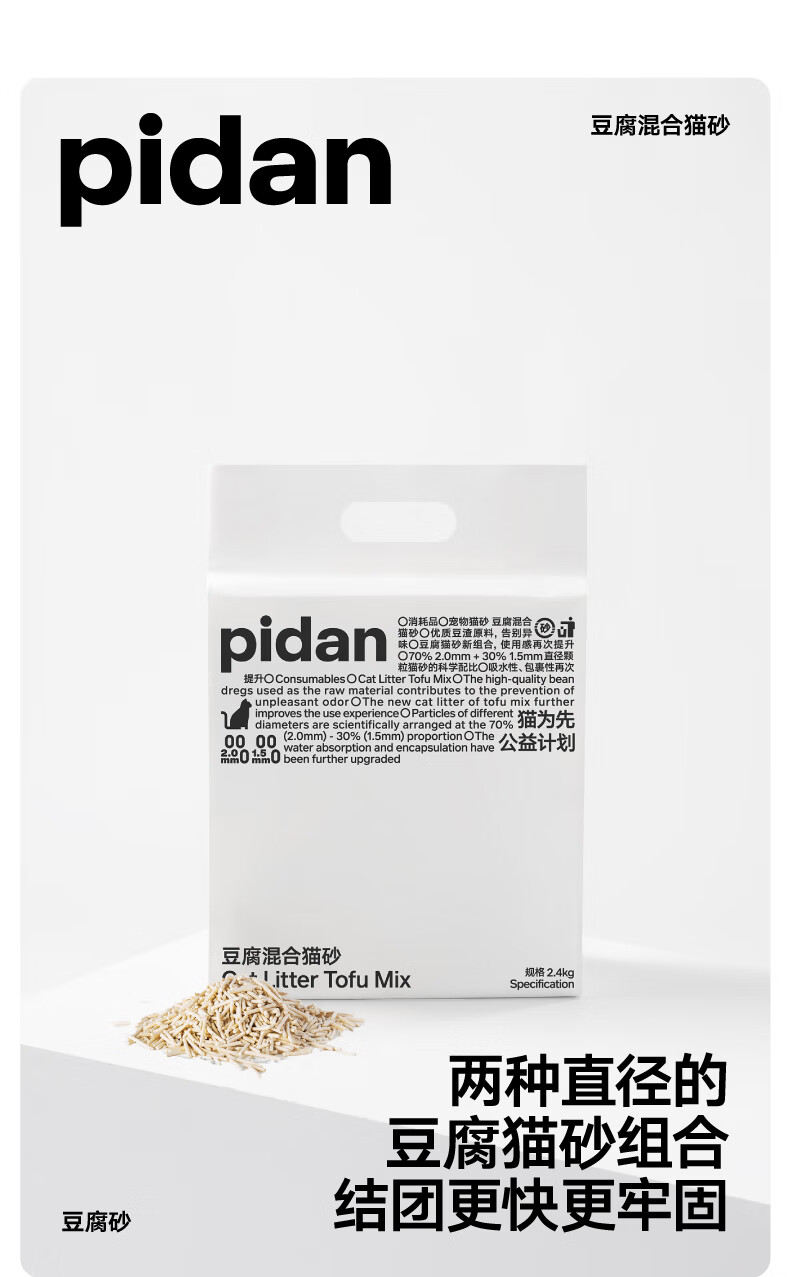 pidan猫砂 豆腐猫砂2.4kg 可冲厕所自营猫砂