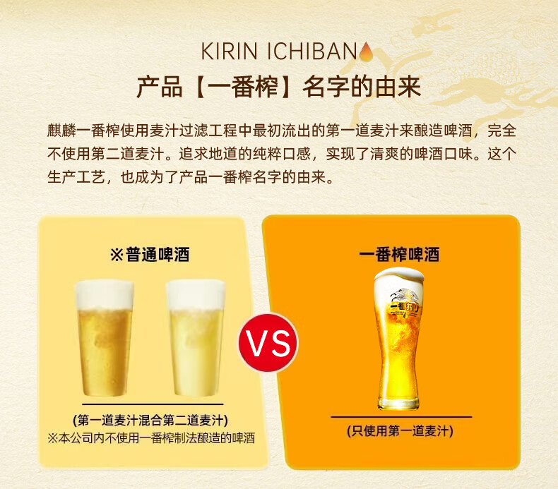 麒麟(Kirin)一番榨黄啤酒330ml*24听 清爽口感京东自营送礼