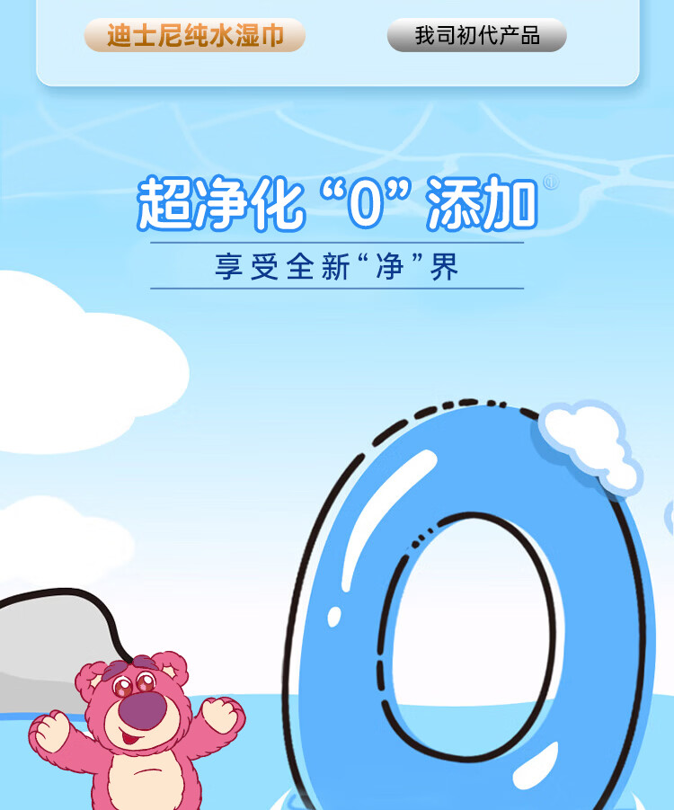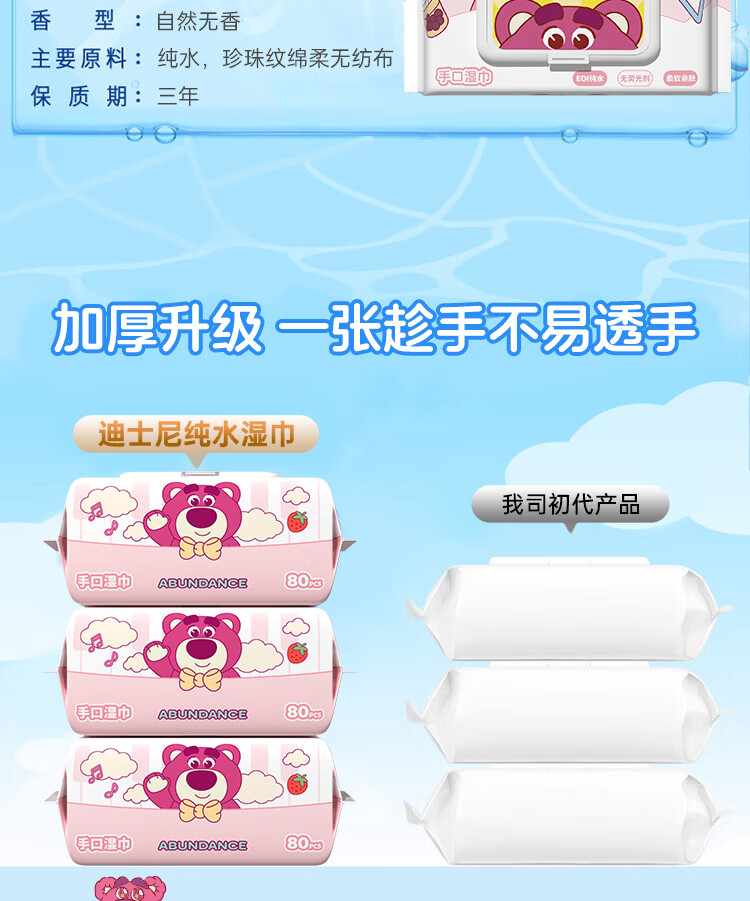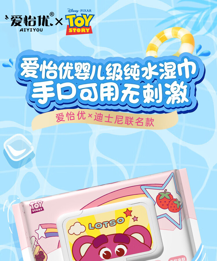 爱怡优×迪士尼联名 湿巾 80抽*5包 EDI纯水 手口湿纸巾婴幼儿童湿巾纸