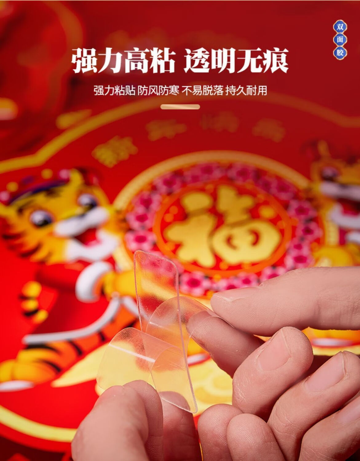 【不留胶】透明无痕胶粘春联对联专用无痕无残留透明双面胶年画婚车婚房胶带照片奖状 1盒装60片