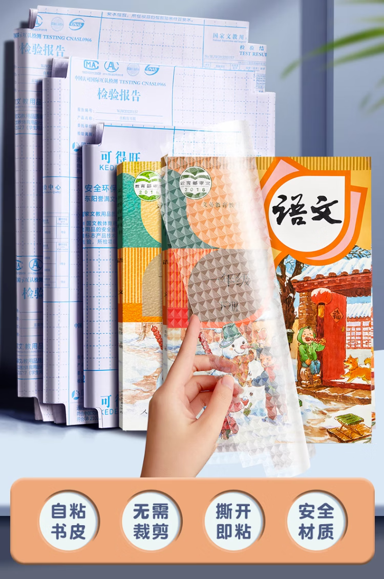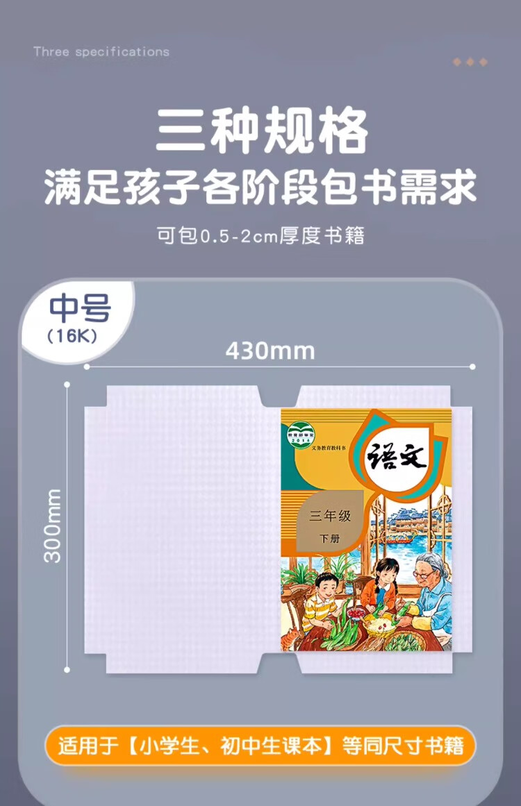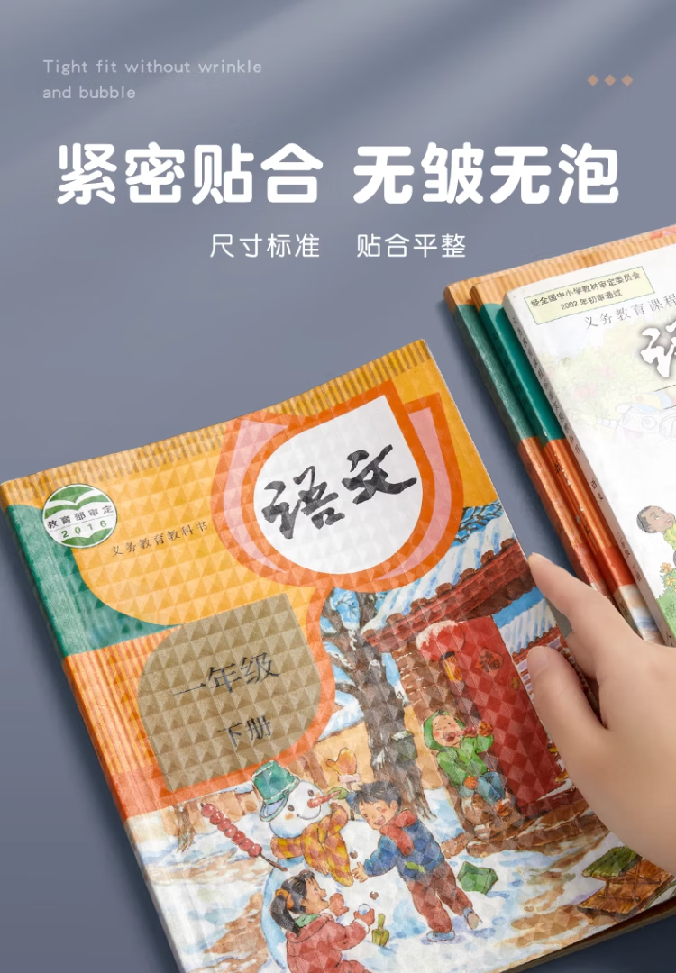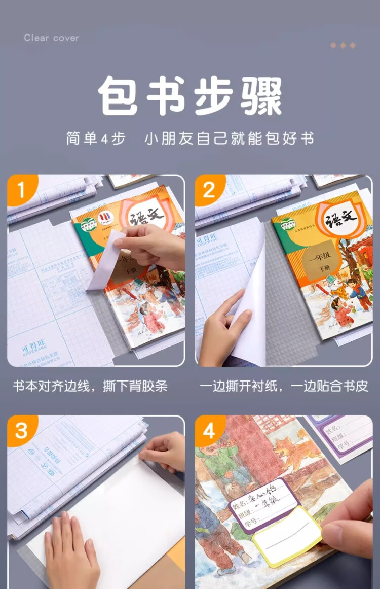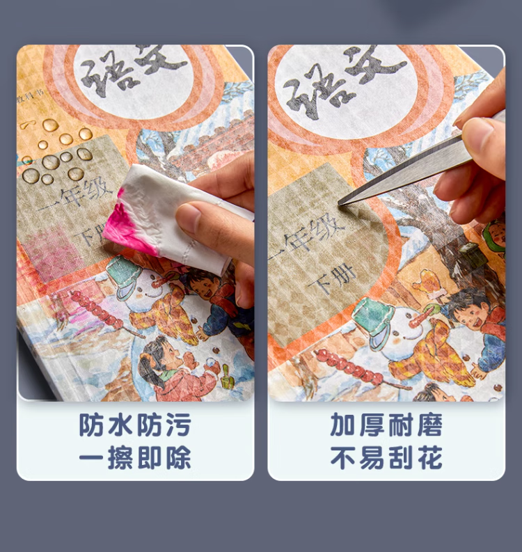 六品堂 自粘包书皮透明磨砂包书膜中小学生一年级书皮书套下册全套16k包书纸书本防水保护套书壳 开学季推荐【大10中10小10】+姓名贴