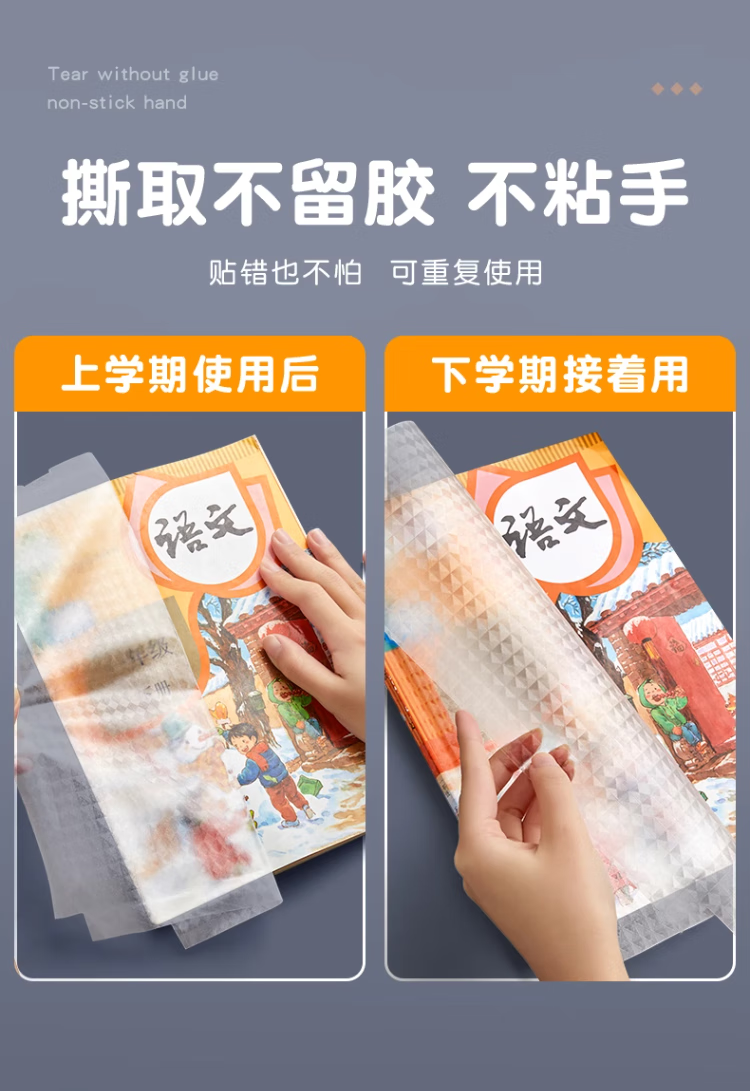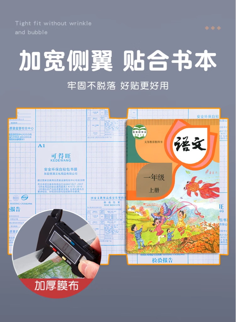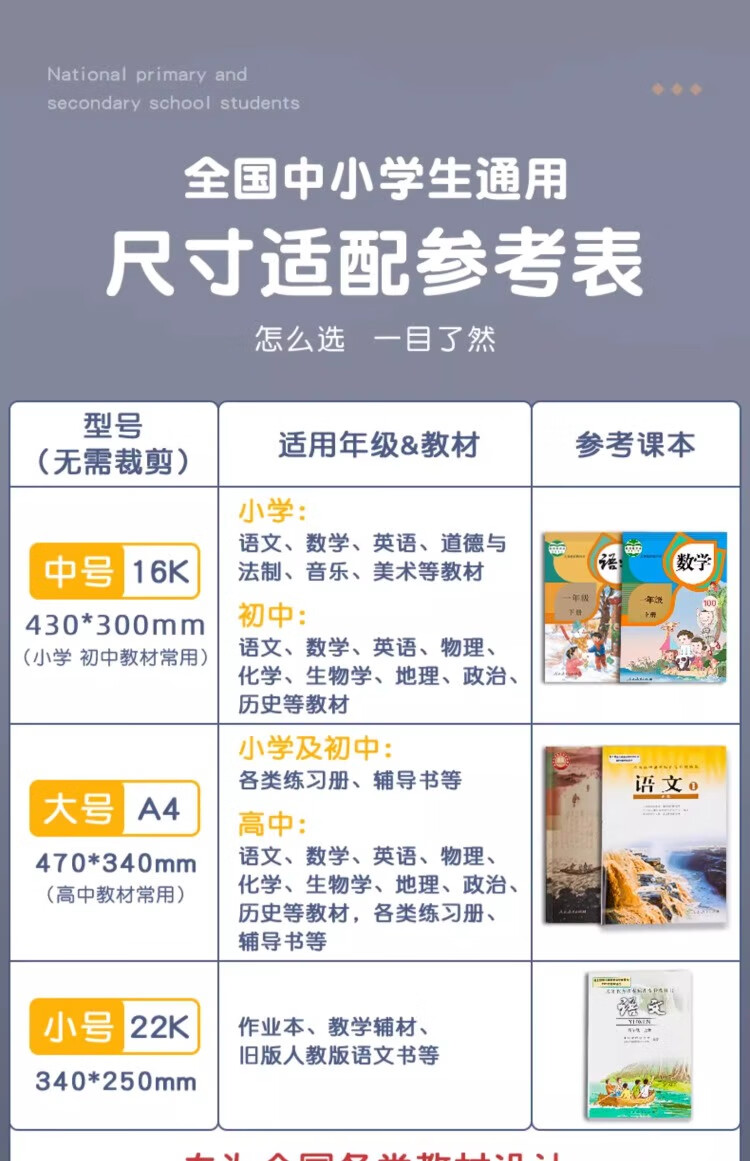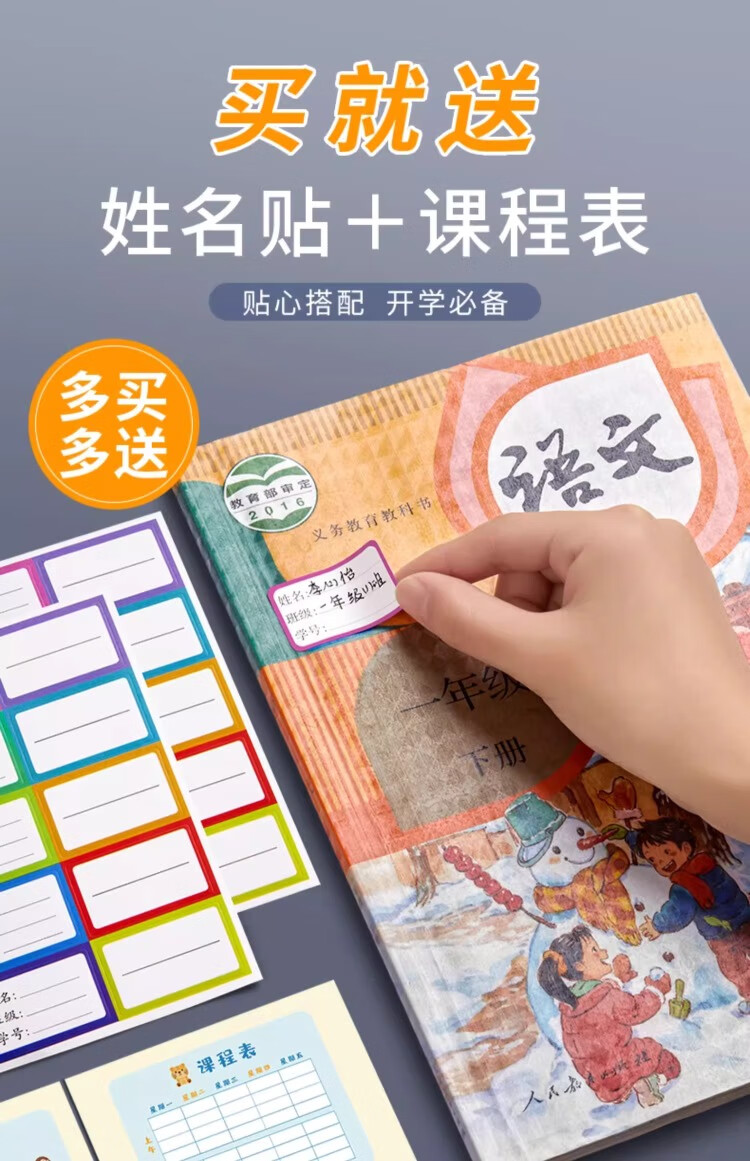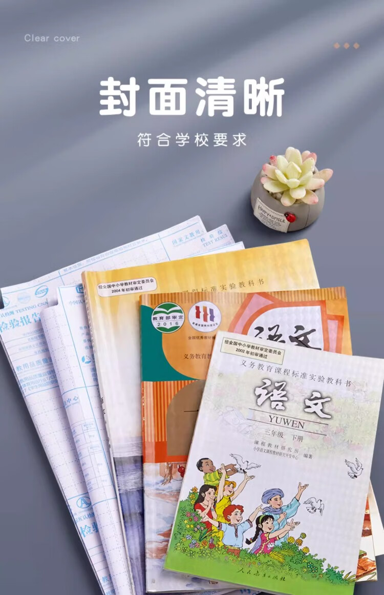 六品堂 自粘包书皮透明磨砂包书膜中小学生一年级书皮书套下册全套16k包书纸书本防水保护套书壳 开学季推荐【大10中10小10】+姓名贴