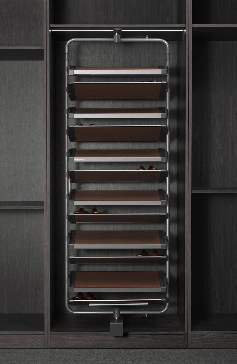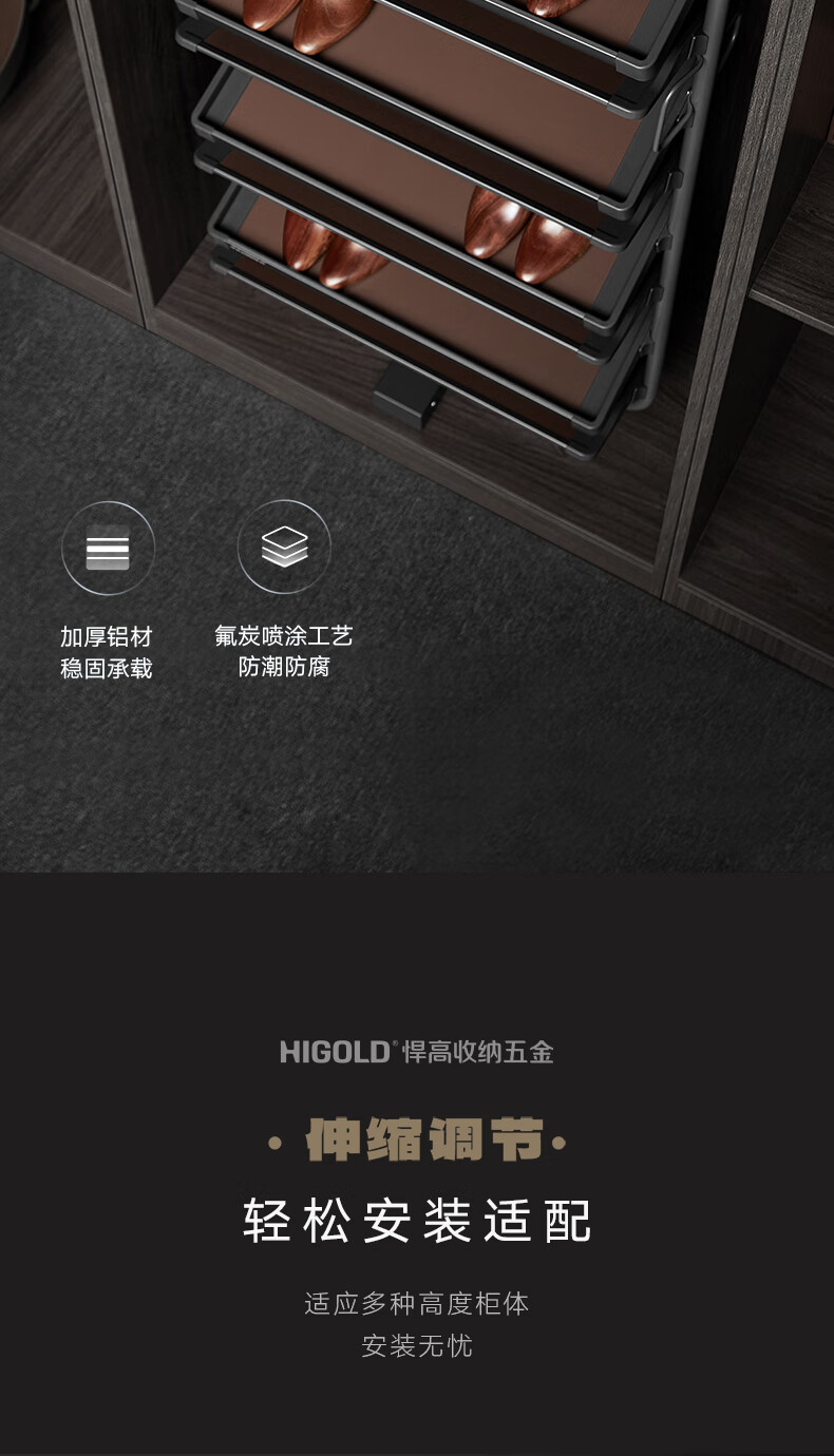 悍高(HIGOLD)家用旋转鞋架高度可调多功能多层鞋架子入户门旋转折叠鞋柜 【高级灰+深咖色】4层铝合金|阻尼导轨